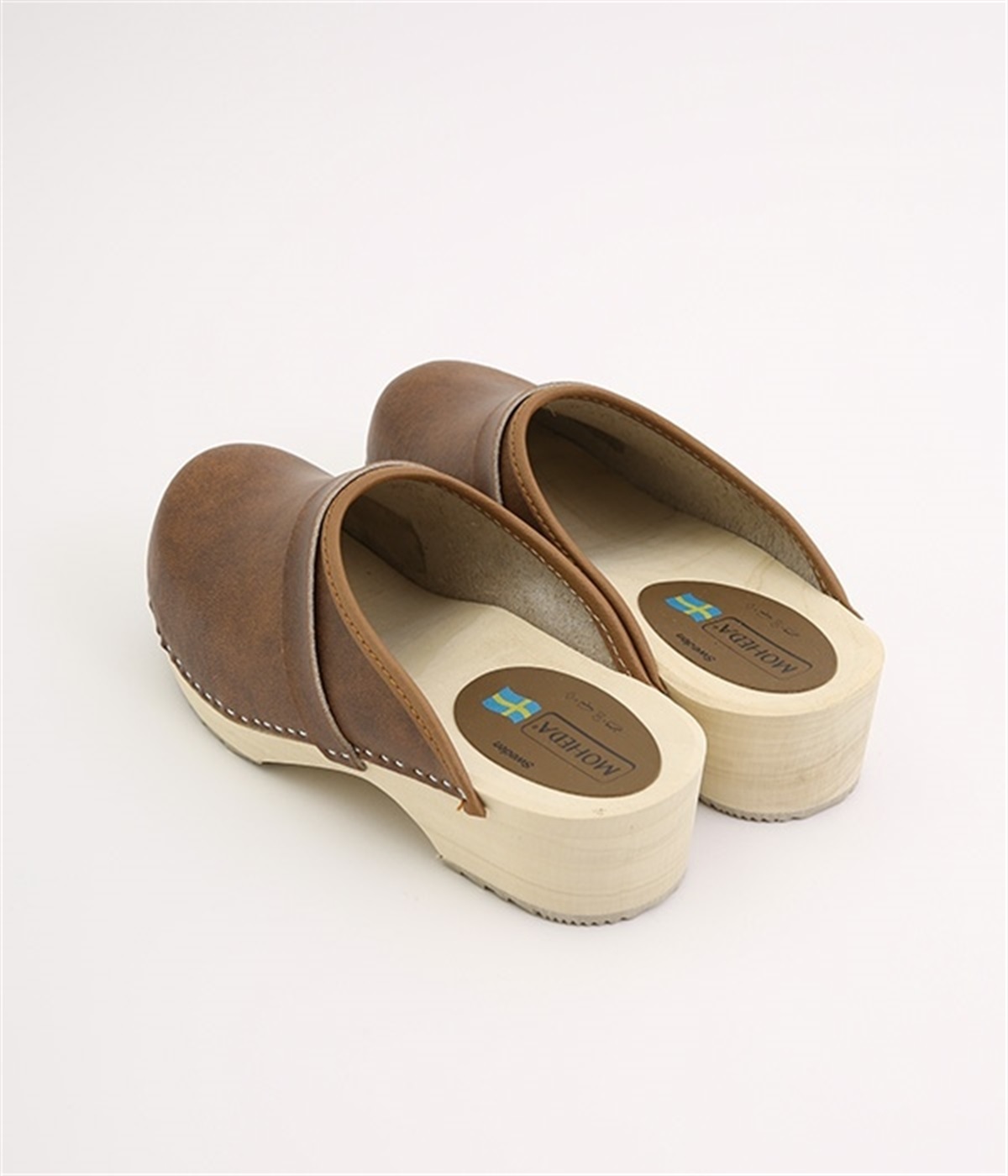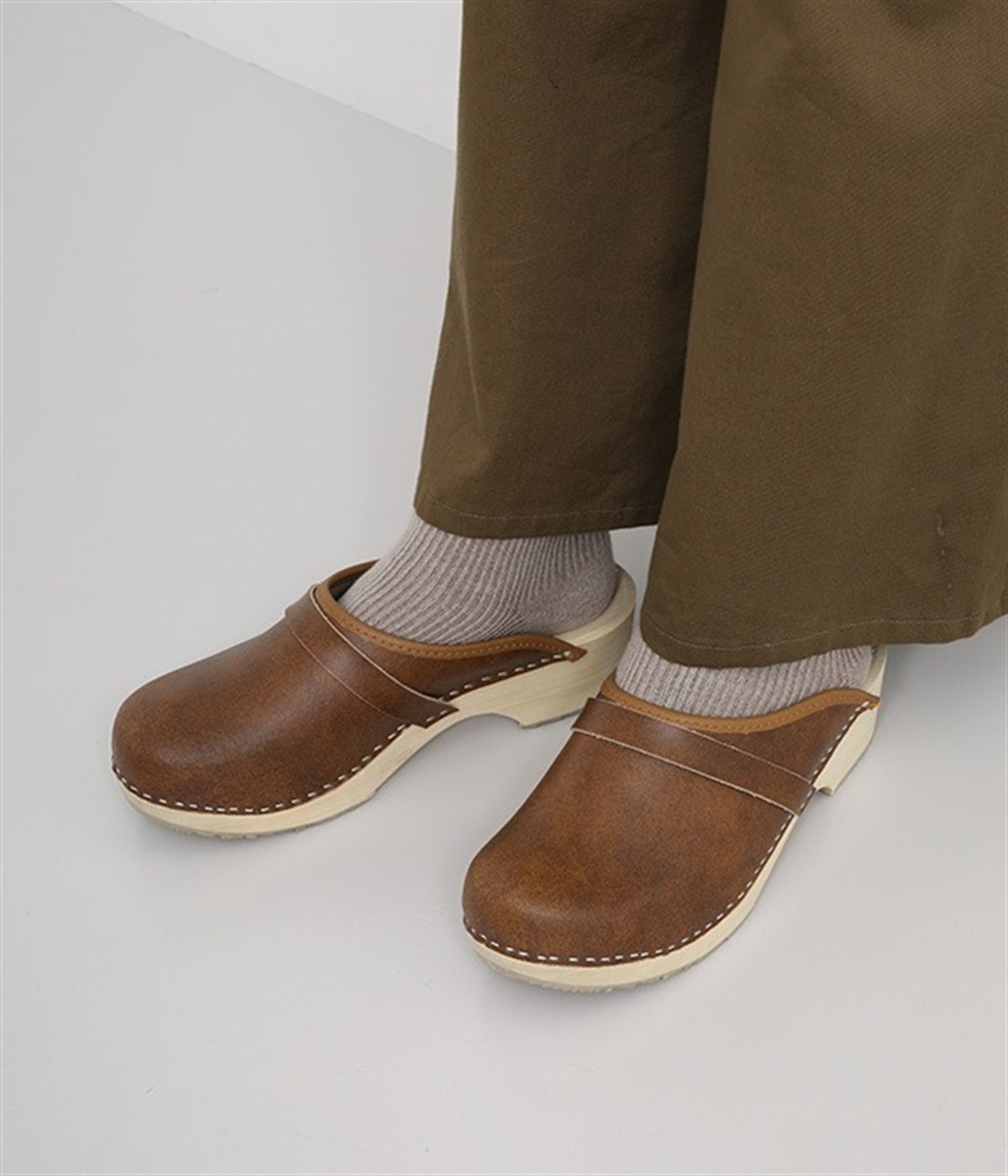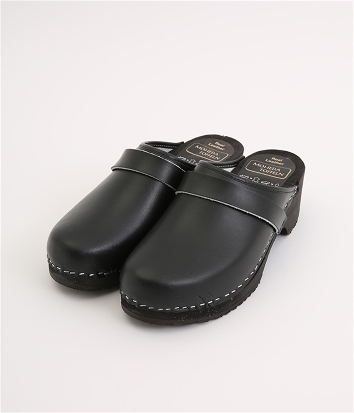 コロンと丸みのあるフォルムとアクセントに配されたストラップがカジュアルな可愛らしさをプラスしてくれるサボシューズです。ヒール部分はウッドを使用していて接地面積も広いので安定感のある履き心地です。素足や靴下と合わせたスタイリングやトレンドのガウチョパンツなどのコーディネートにも好相性です。