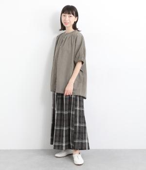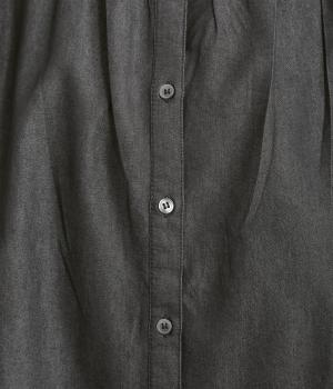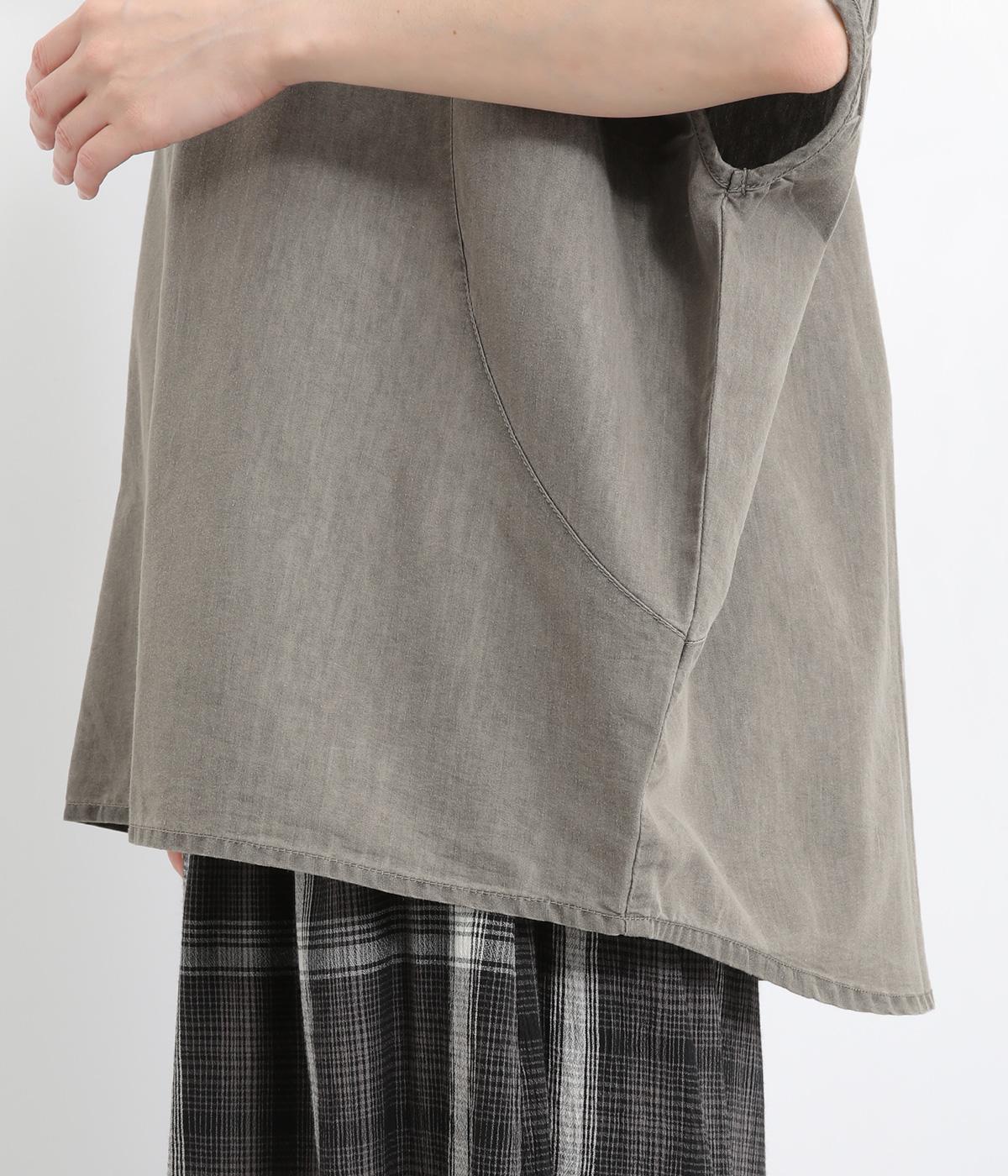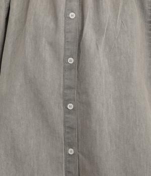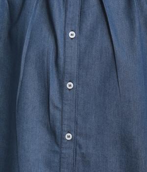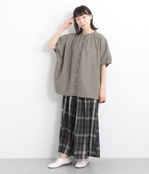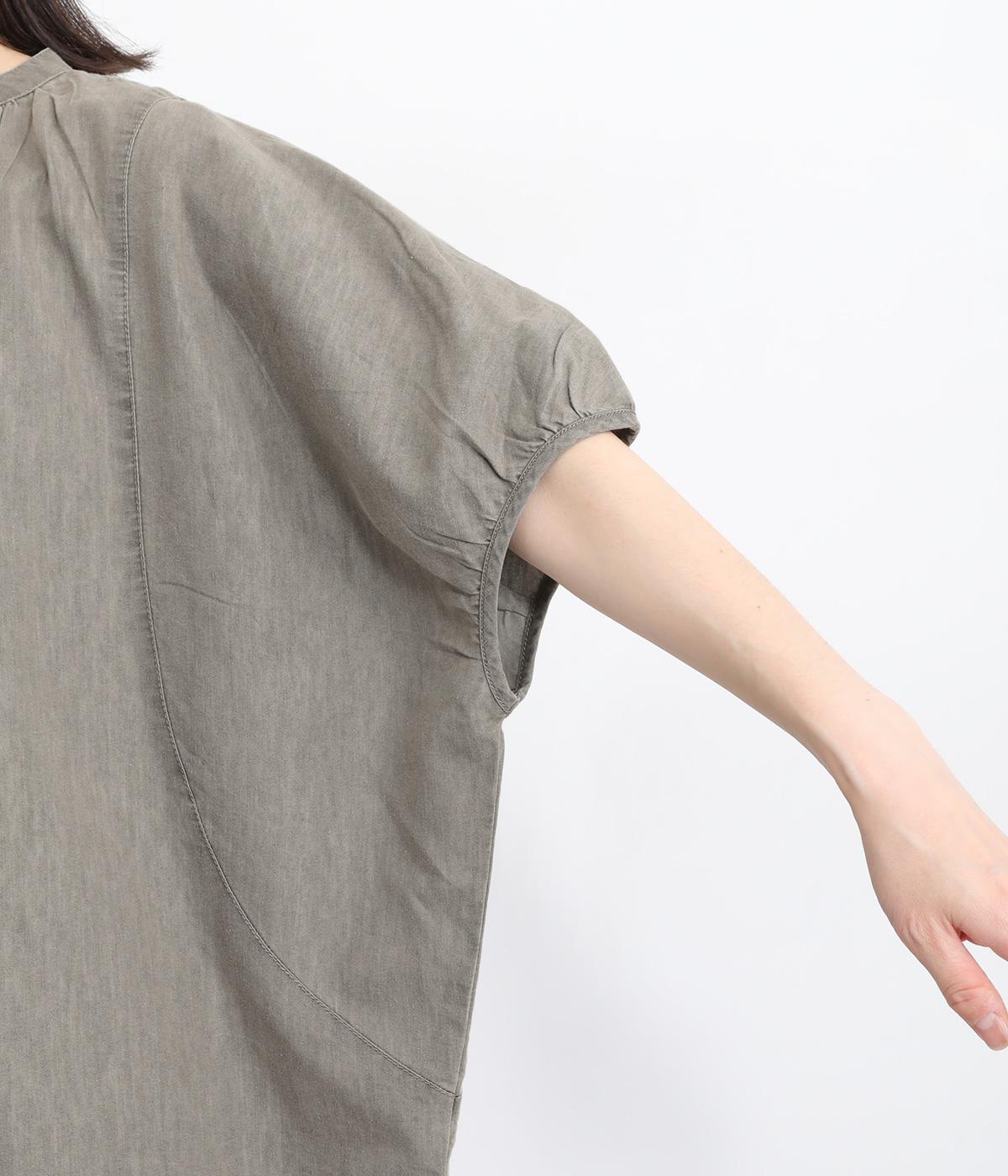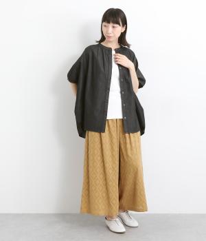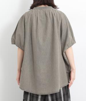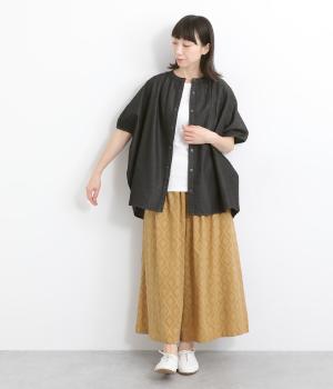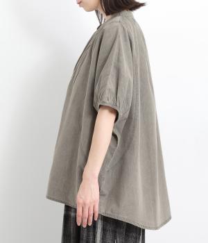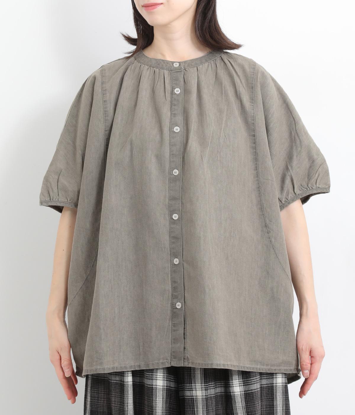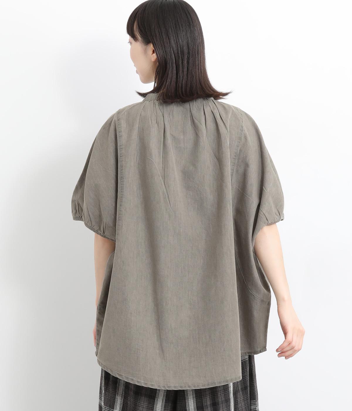 ポンチョのようにたっぷりとしたボックス型シルエットが新鮮なデニムシャツです。袖口はギャザーを寄せてポイントを持たせました。後ろ身頃はやや長めに設定してラフに羽織るだけでもさまになります。