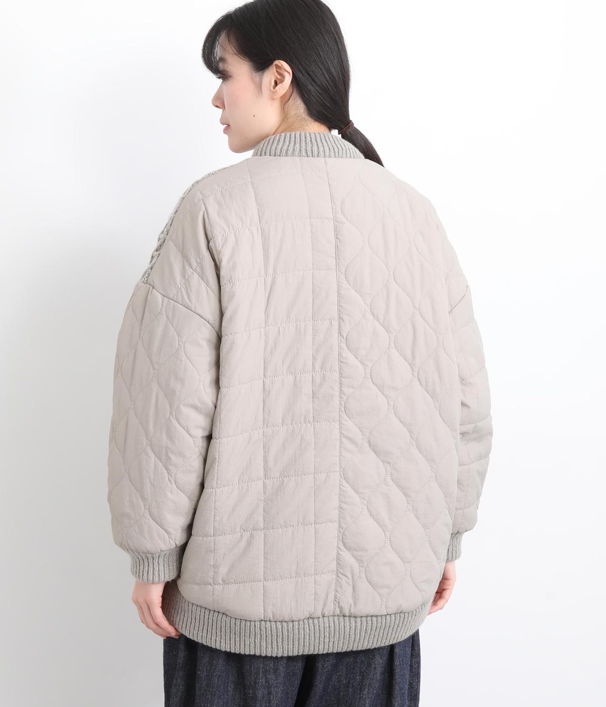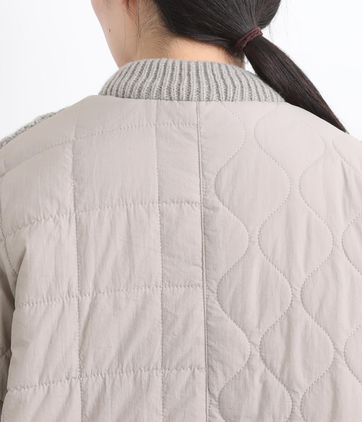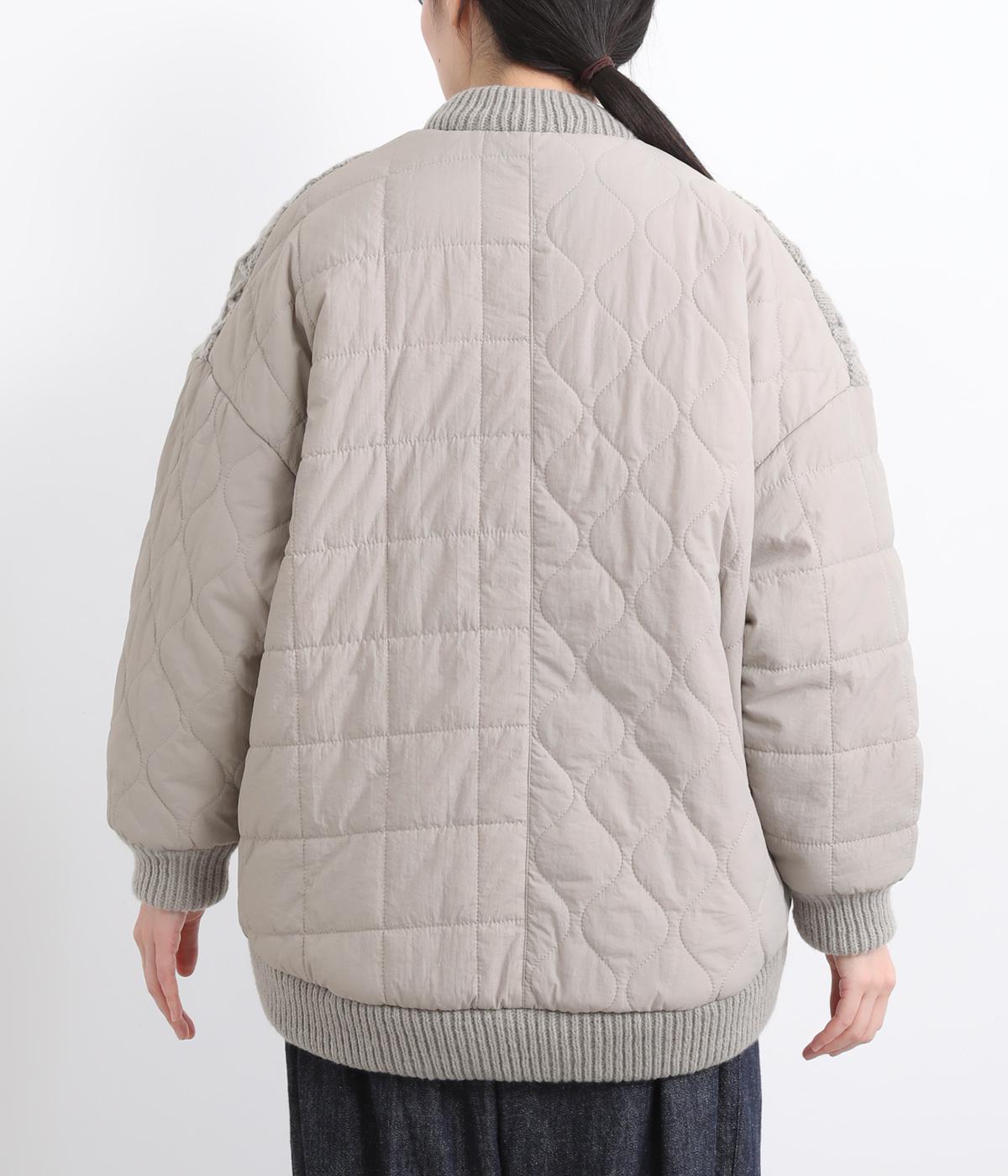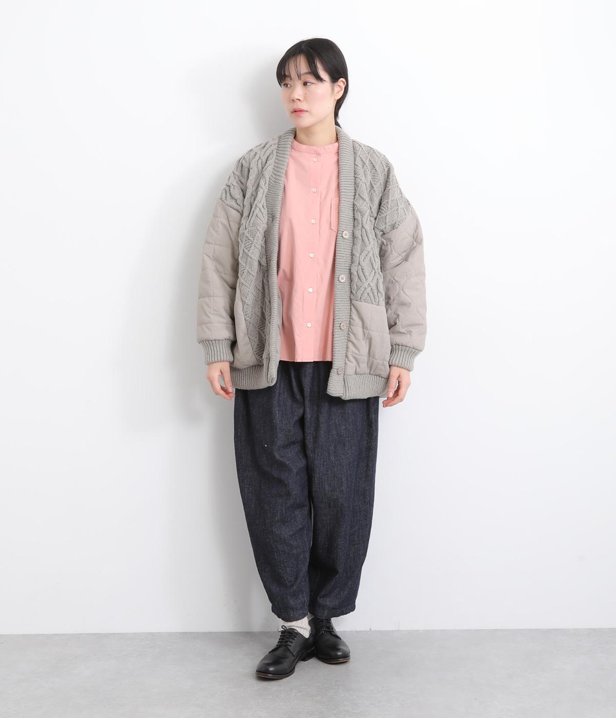 ステッチに変化をつけたキルティングとアラン模様のニットをドッキングしたカーディガン。さまざまな柄の組み合わせをシックな雰囲気でバランスよくまとめました。ライトアウターとしても活躍するアイテムです。