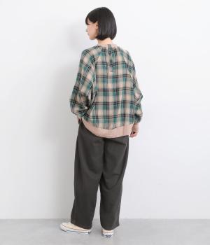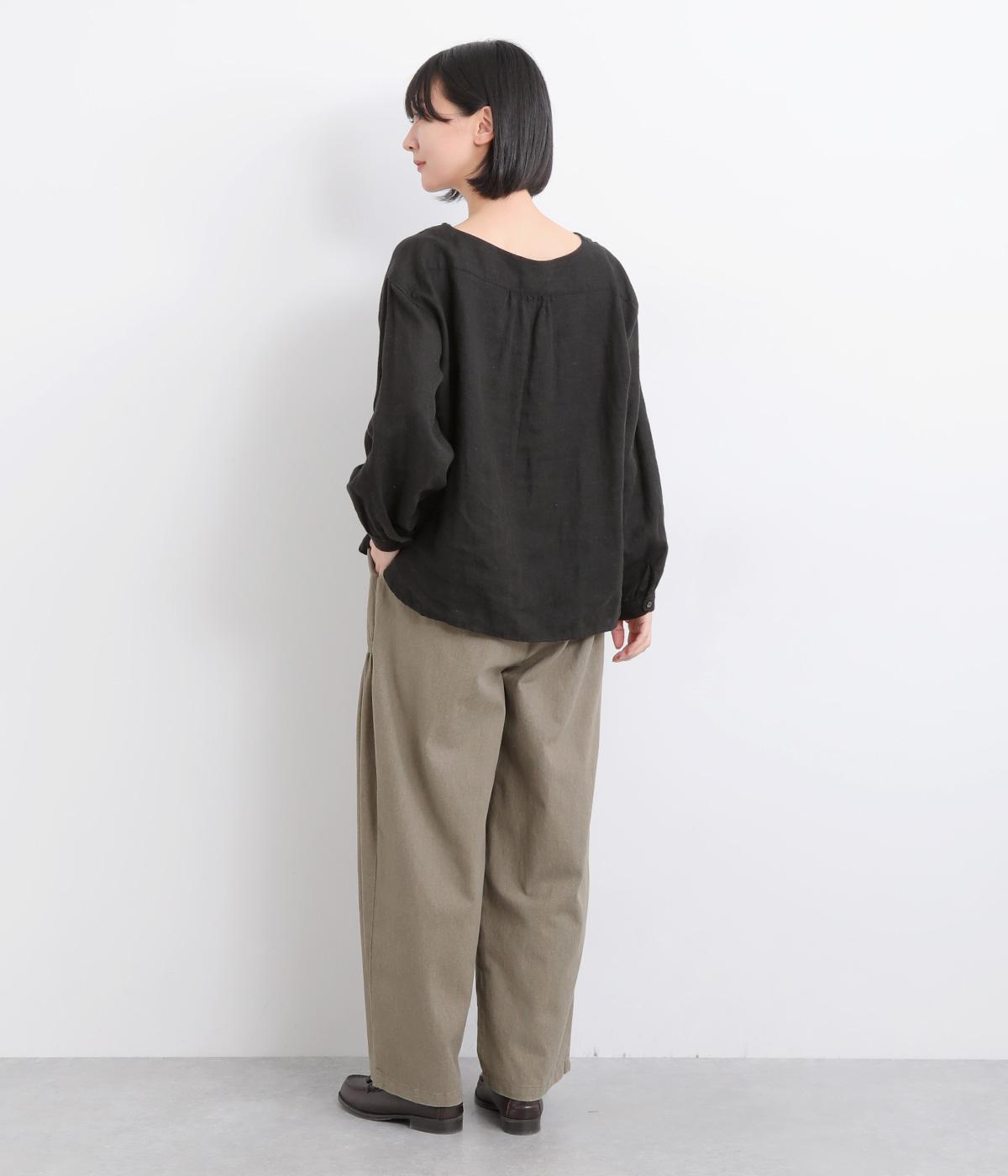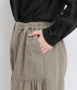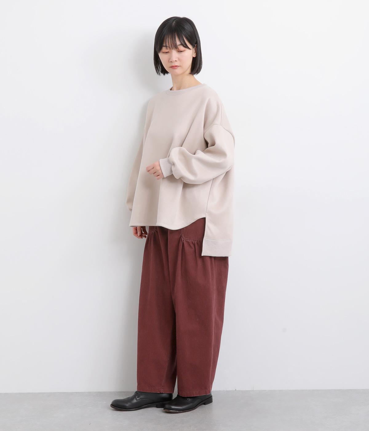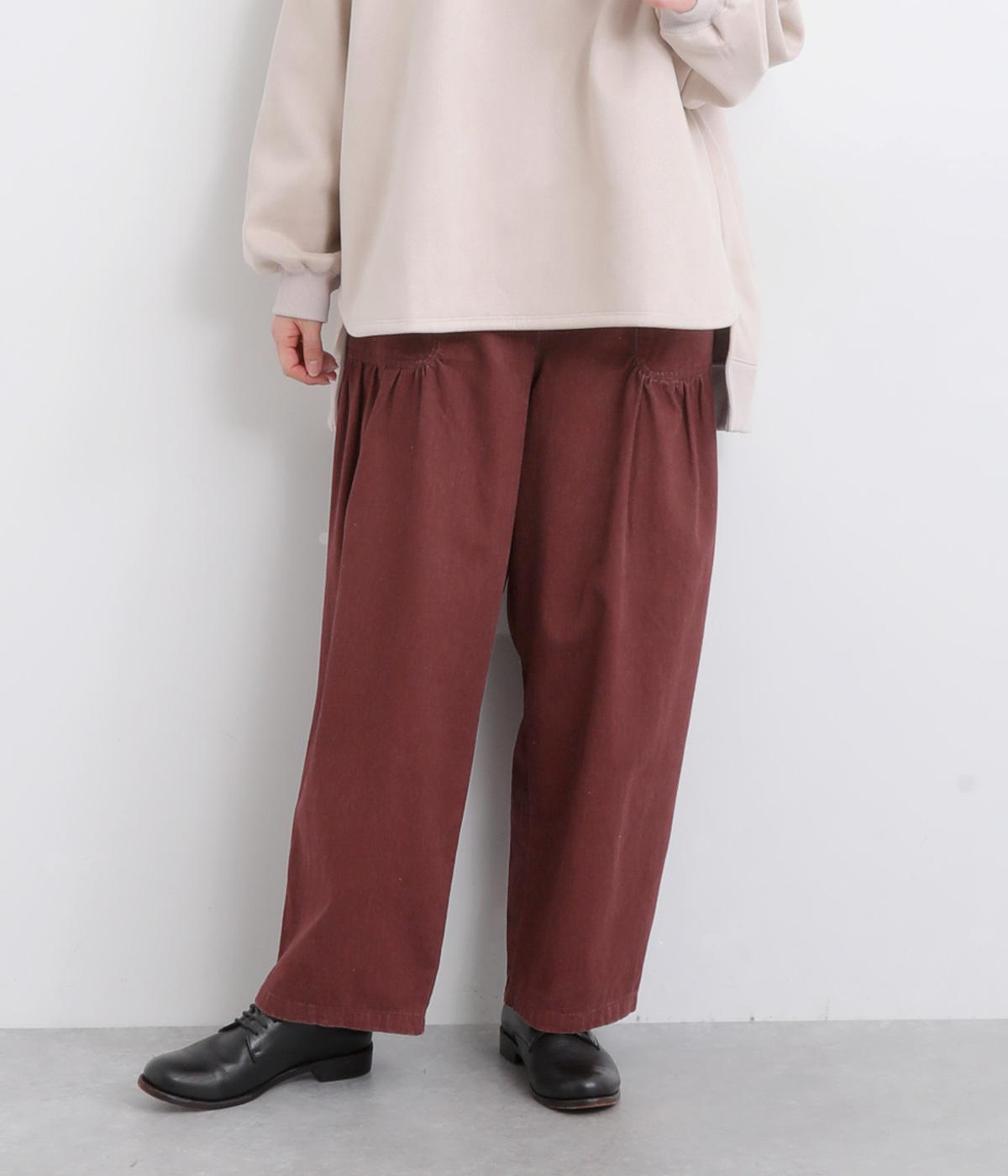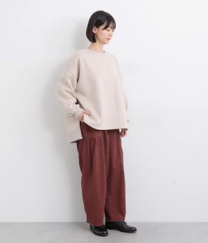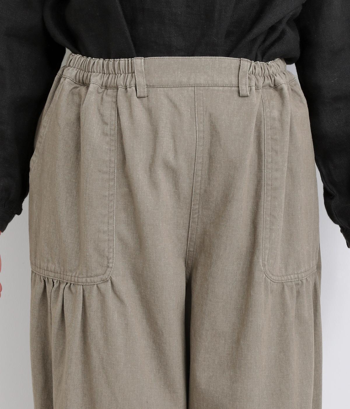 大胆に配置したベイカーポケットと、ウエストに寄せたギャザーが印象的なパンツ。ぽってりとした丸みを描くバルーンシルエットは、動くたびに表情が生まれ、抜け感のある着こなしを叶えます。裾へ向かってゆるやかにすぼまるラインが足元をすっきりと見せ、野暮ったくならないのも魅力です。