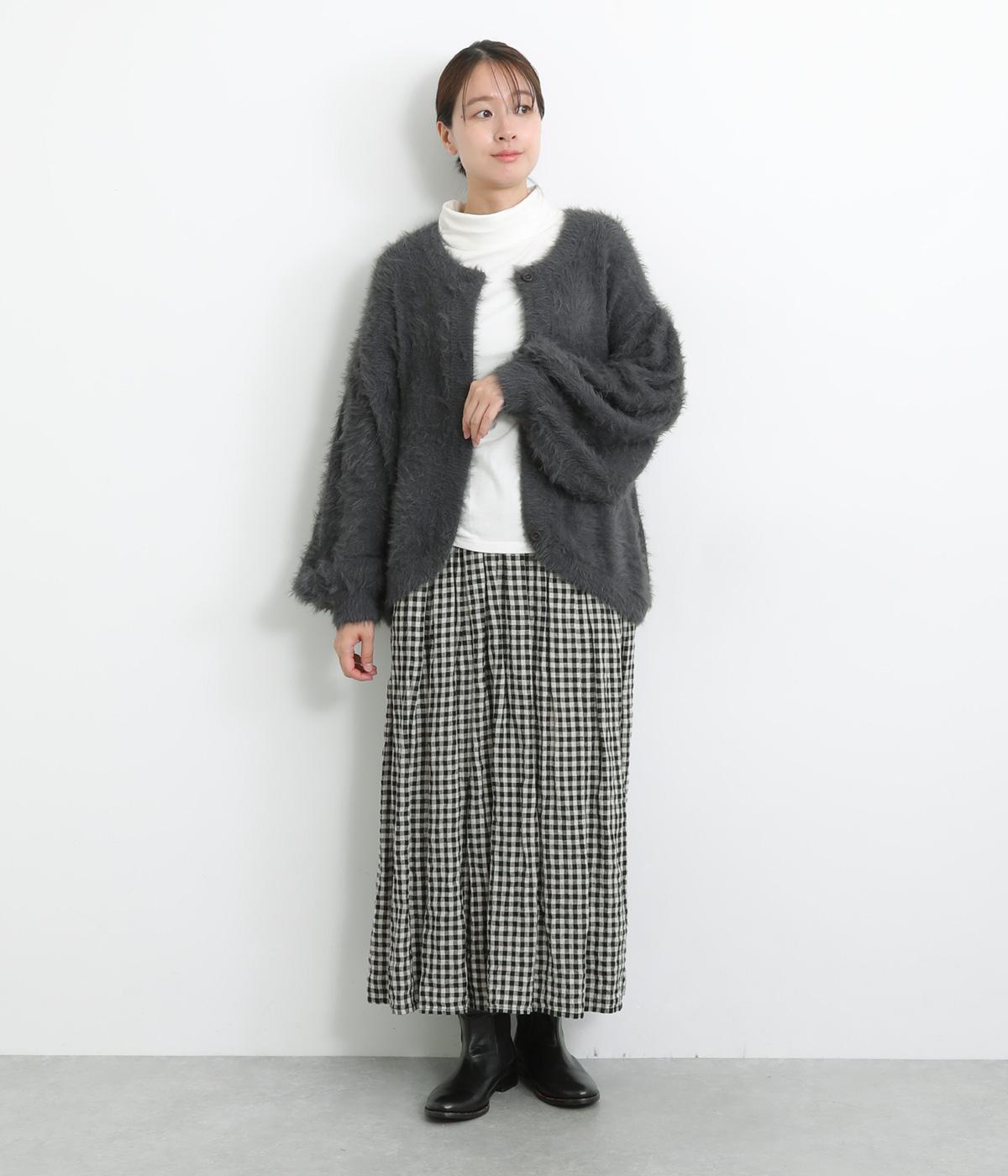 ふんわりとした長毛が特徴的なシャギーニットで仕立てました。やわらかくなめらかな肌あたりが着心地よく、寒さの厳しい季節もやさしく包み込んでくれます。