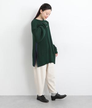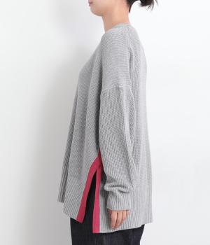 ゆったりとしたオーバーサイズのプルオーバーは、一見シンプルながらサイドの配色ロングスリットがアクセントになっています。リラックスムードな作りでボリュームボトムとも相性が良く、柄アイテム合わせもおすすめ。