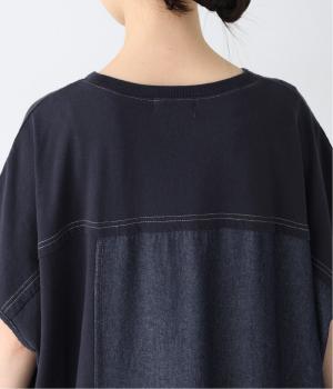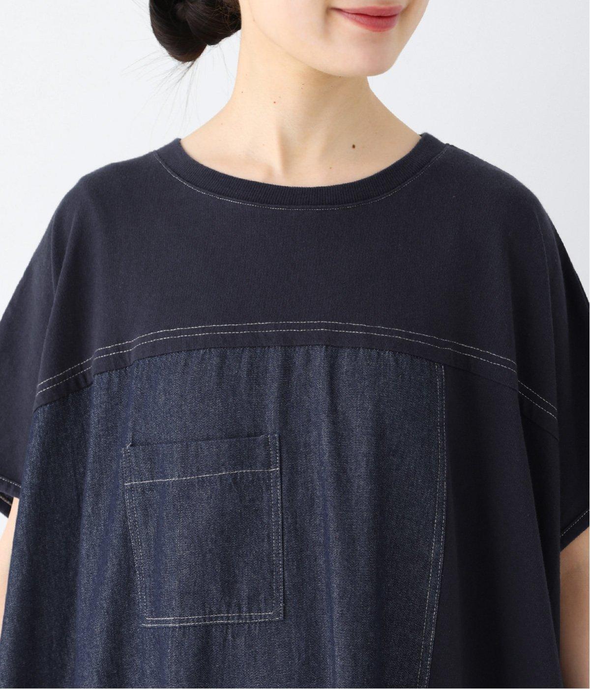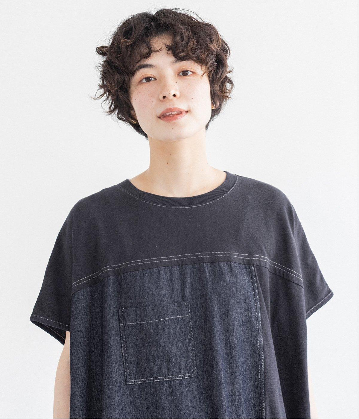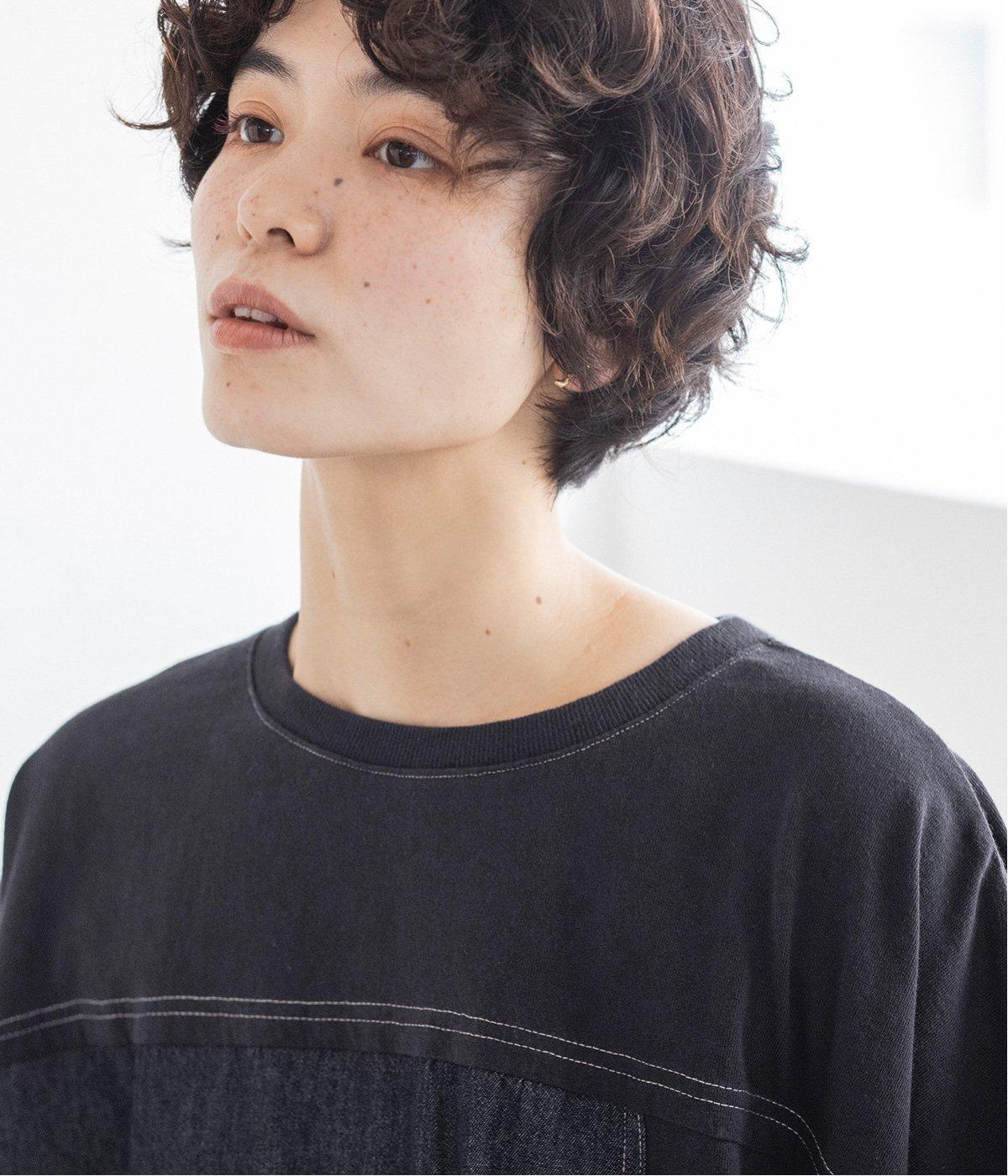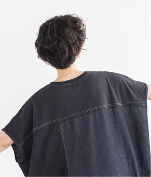 異素材の組み合わせが目を引く、デニム×布帛の切り替えデザイン。カットソーのラフさに、デニムの立体感が映える一枚です。