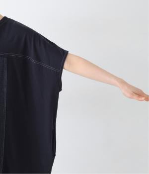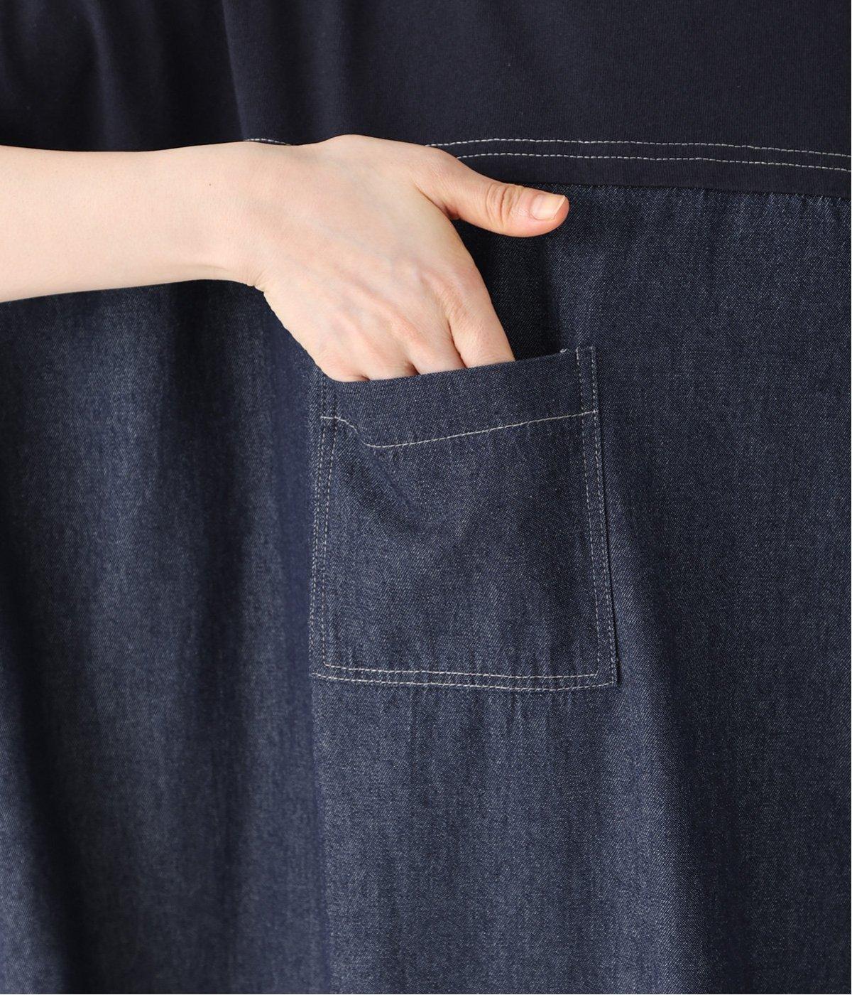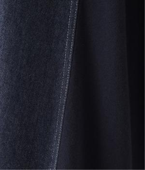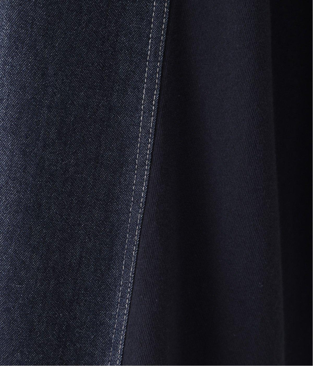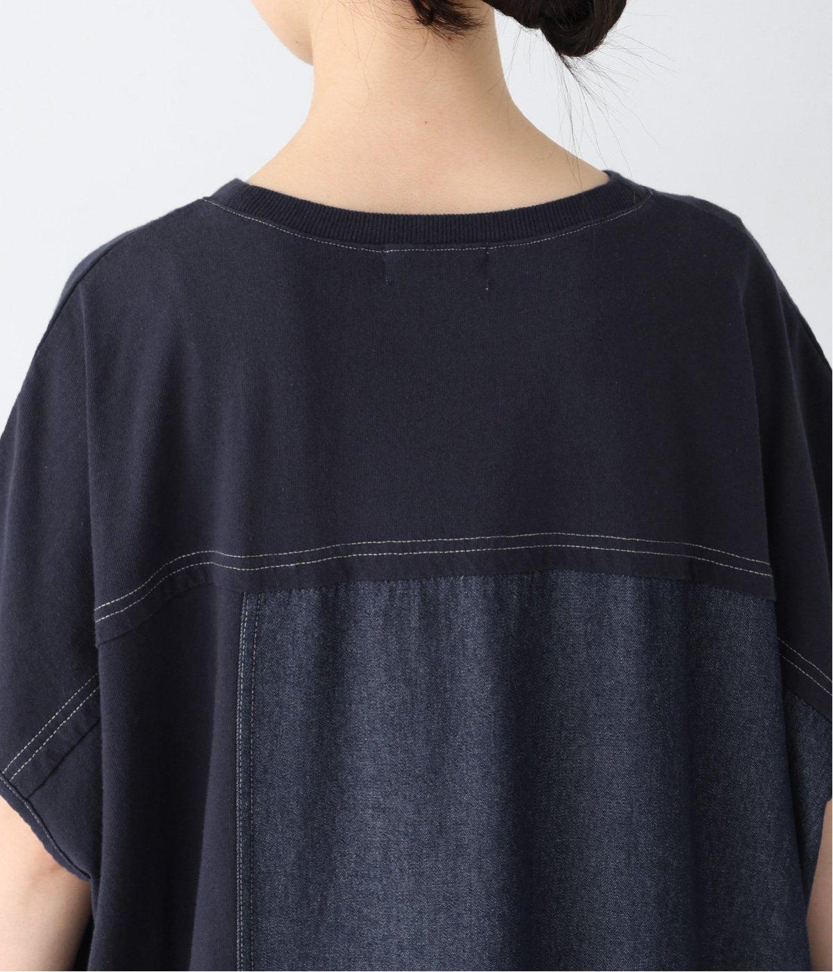 異素材の組み合わせが目を引く、デニム×布帛の切り替えデザイン。カットソーのラフさに、デニムの立体感が映える一枚です。