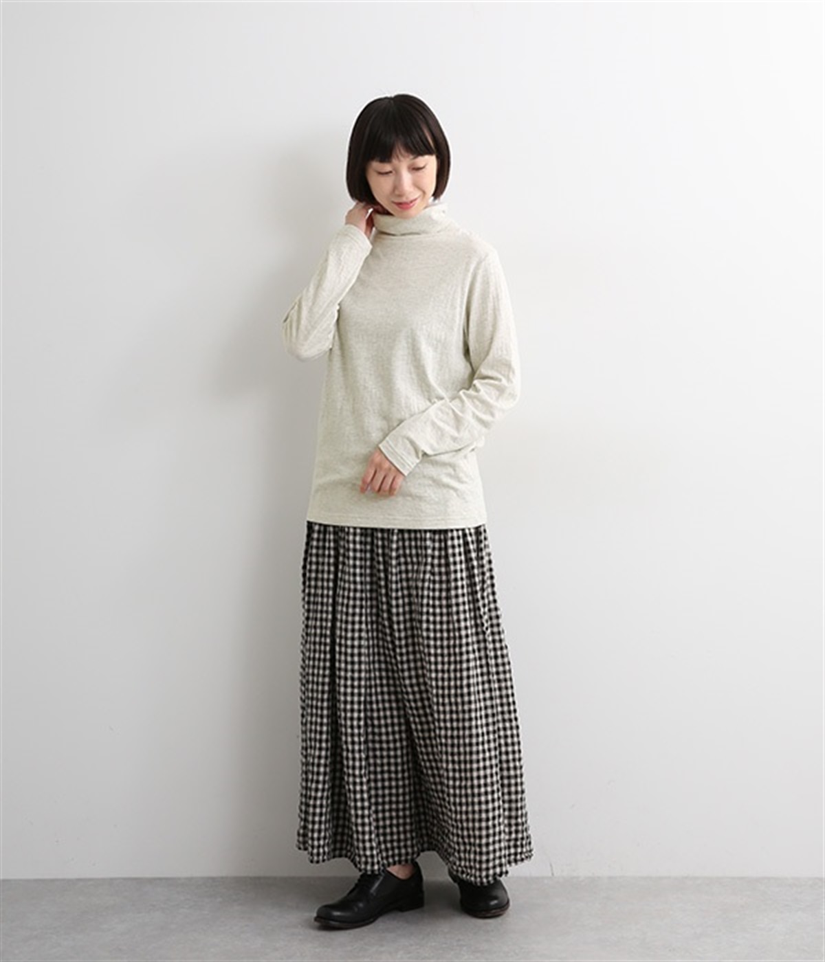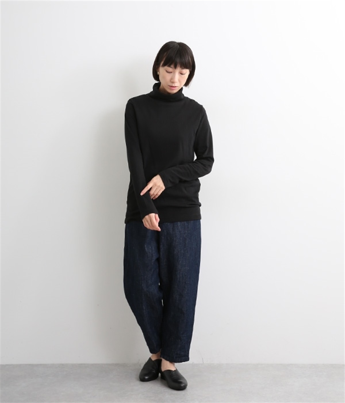 首元をあたため、冷気から守ってくれるタートルネックのプルオーバーです。大きすぎないシルエットなので、様々なアイテムとのレイヤードスタイルが楽しめます。長めのタートルネックは折り返しても、そのままでも◎。
