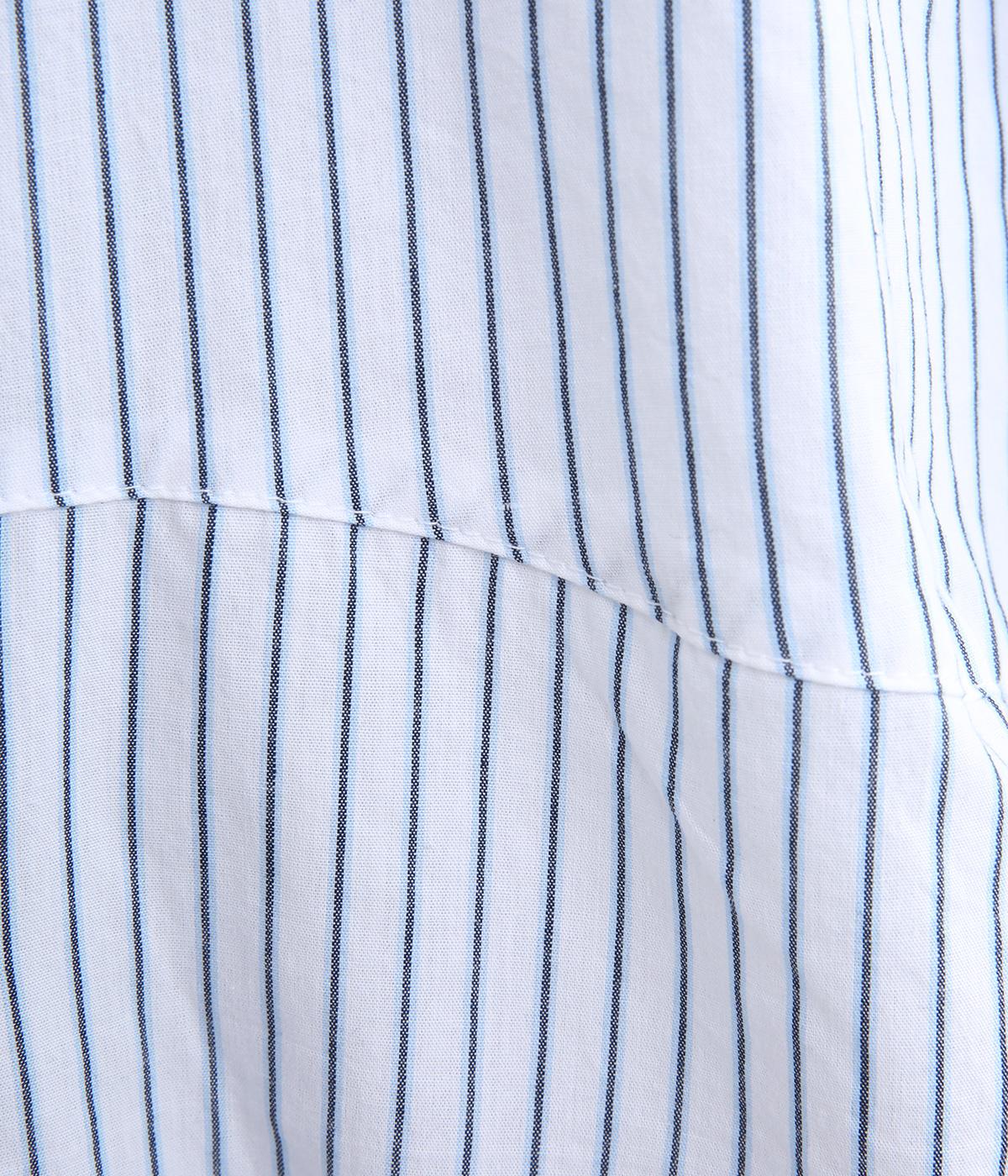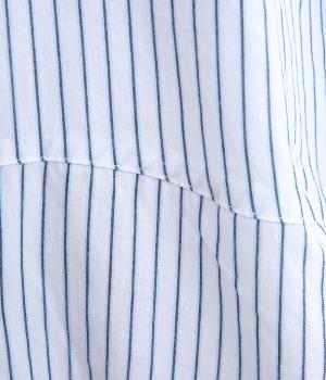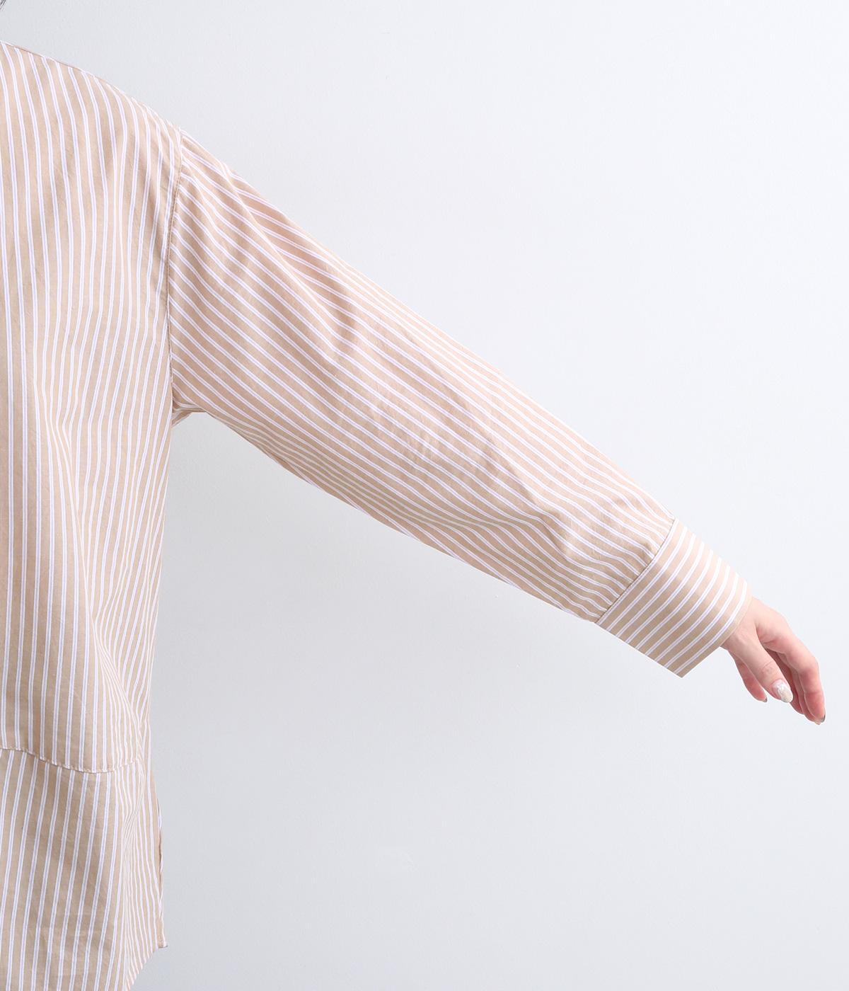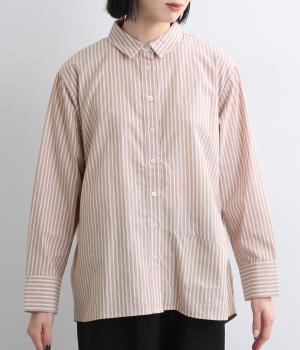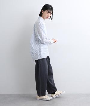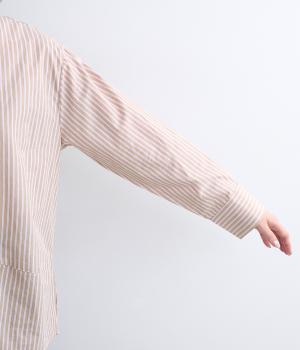 しなやかで肌ざわりのよい、ストライプ柄のコットン素材を使用しました。厚手すぎず、軽やかな着心地がロングシーズン着まわしできるポイントに。