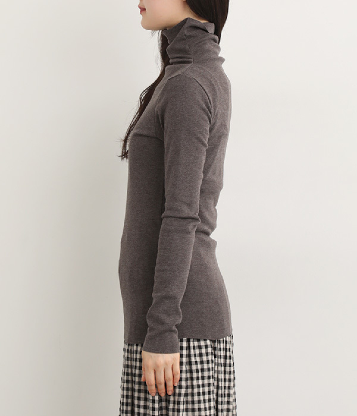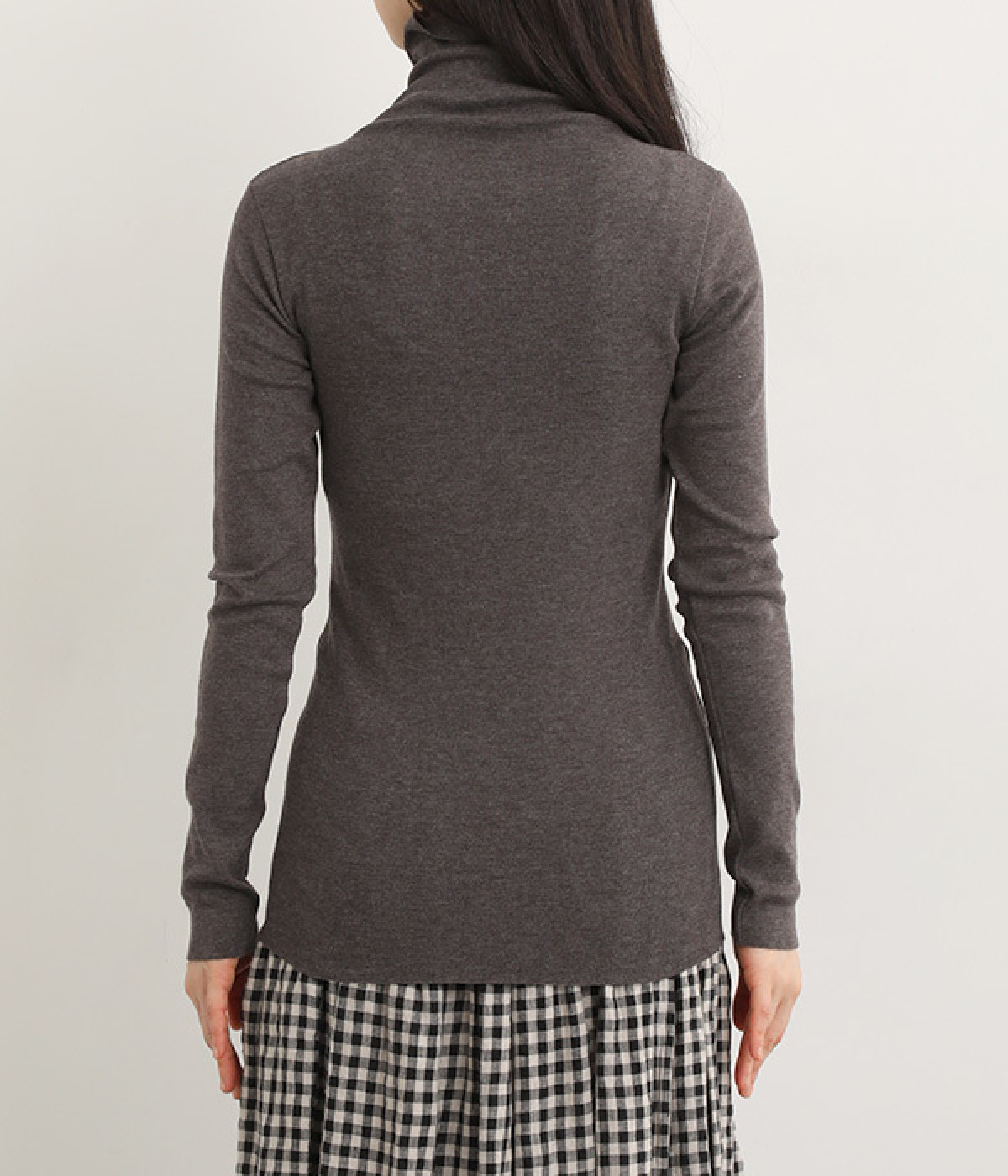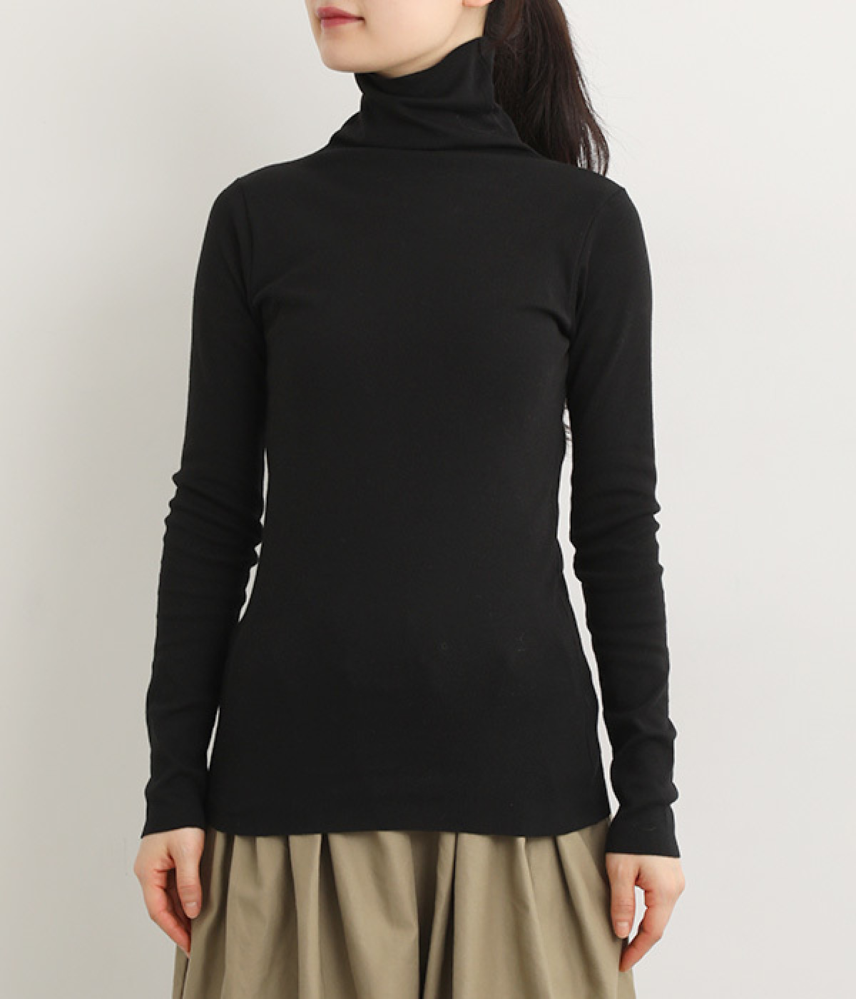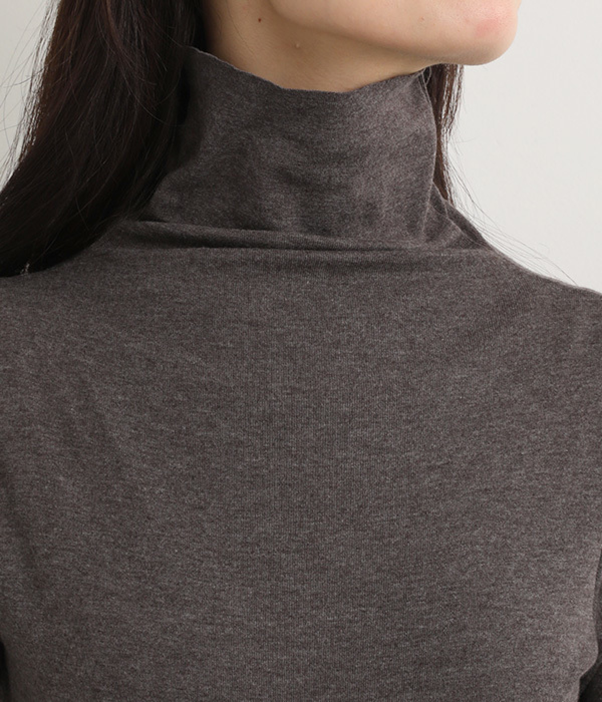 首元に切り替えのない、すっきりとした仕立てのボトルネック