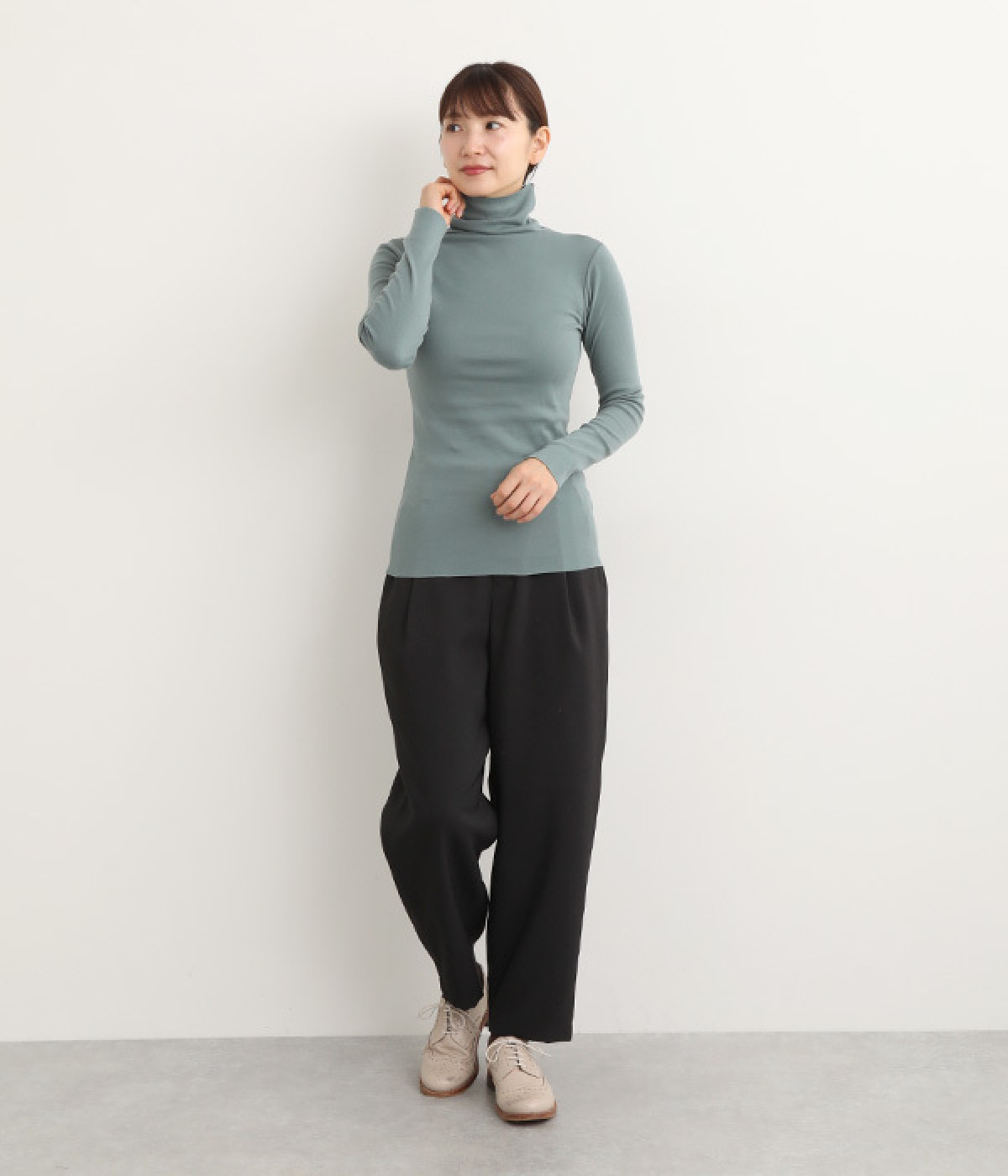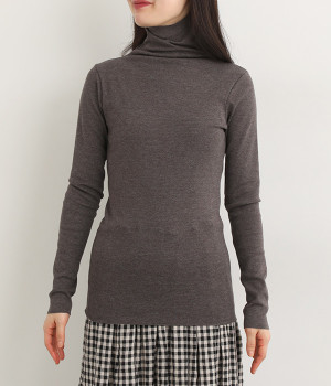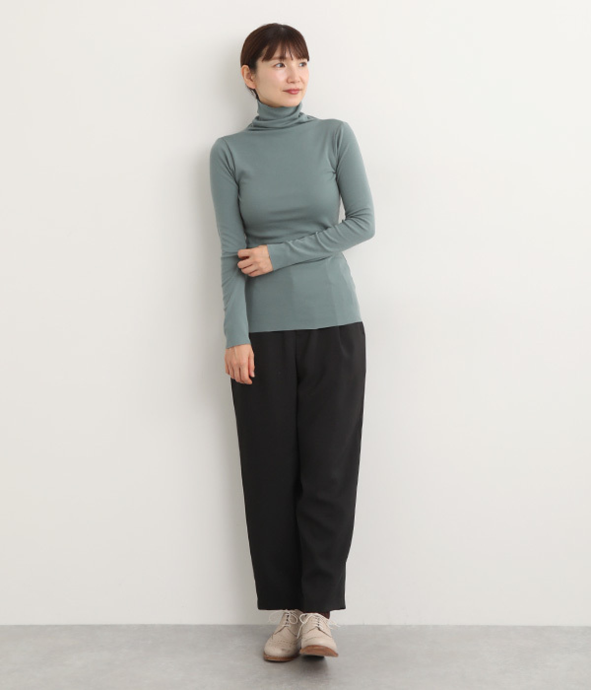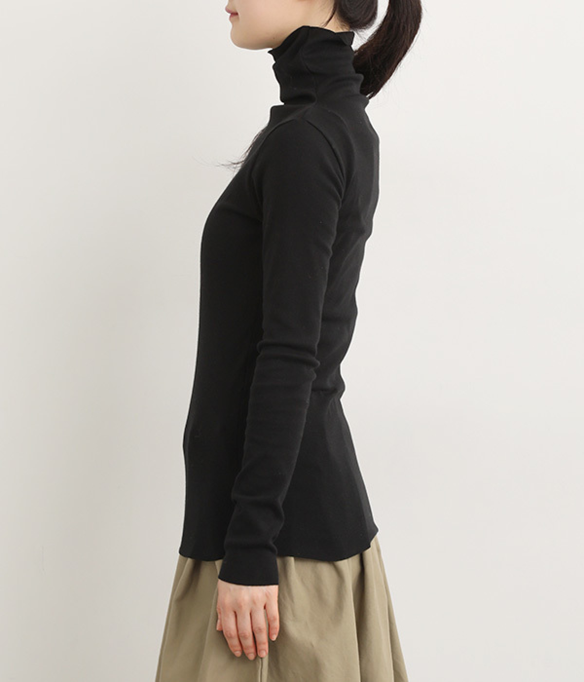 首元に切り替えのない、すっきりとした仕立てのボトルネック