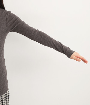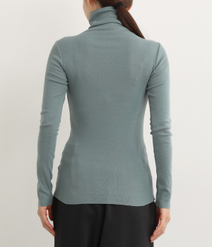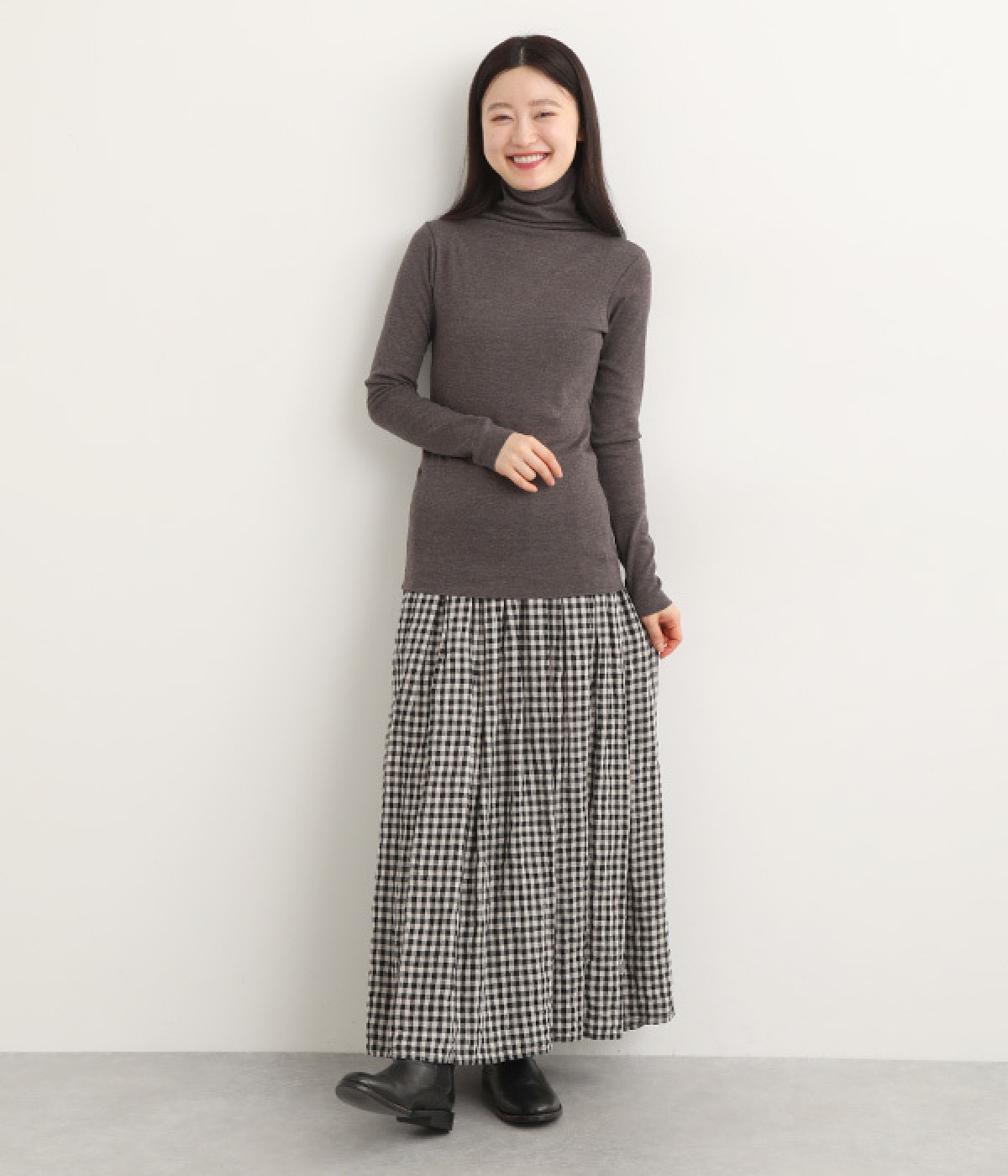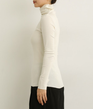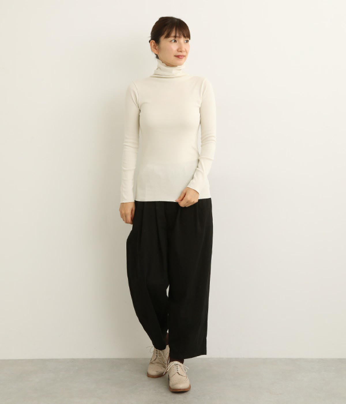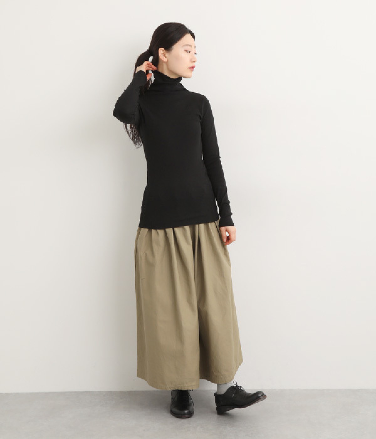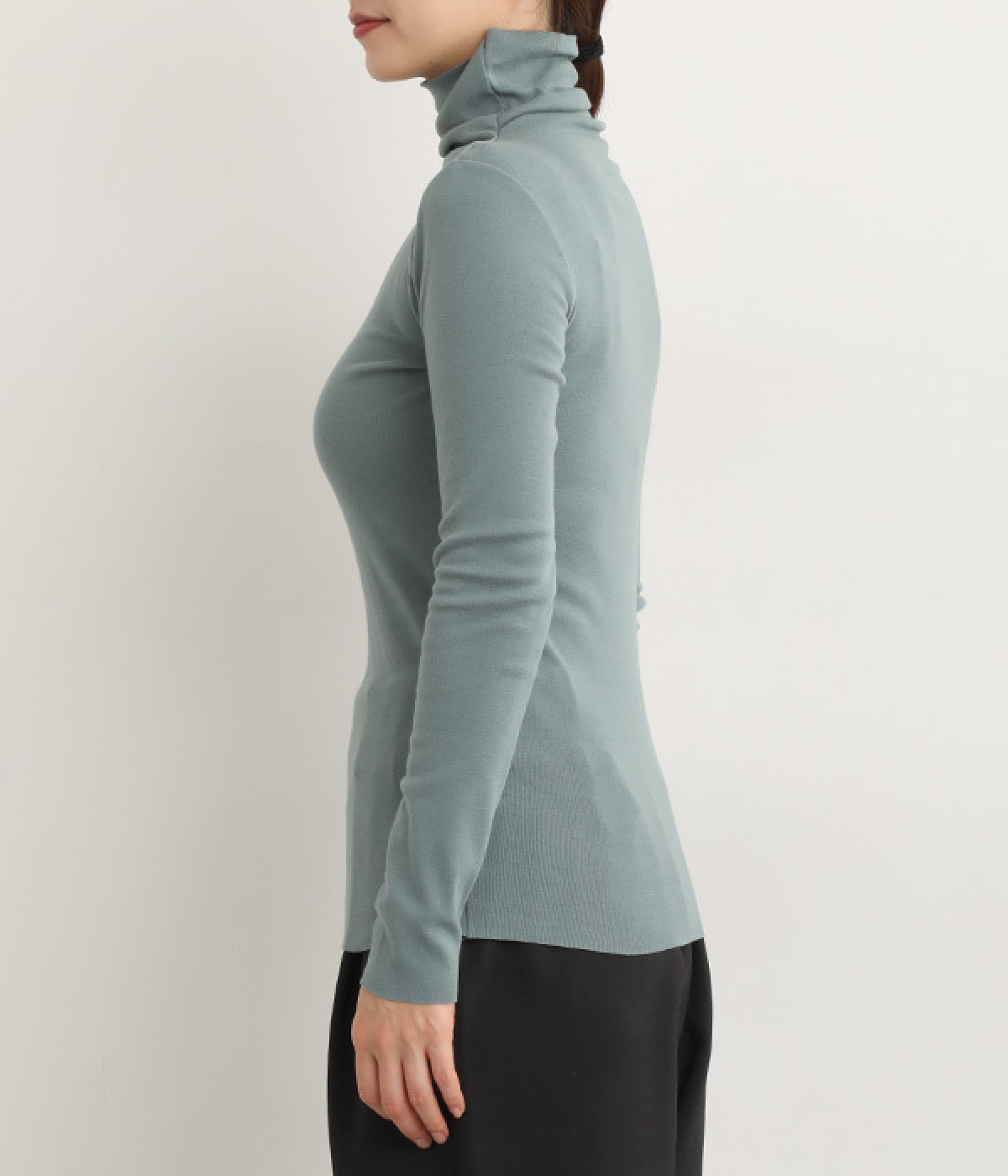 首元に切り替えのない、すっきりとした仕立てのボトルネック
