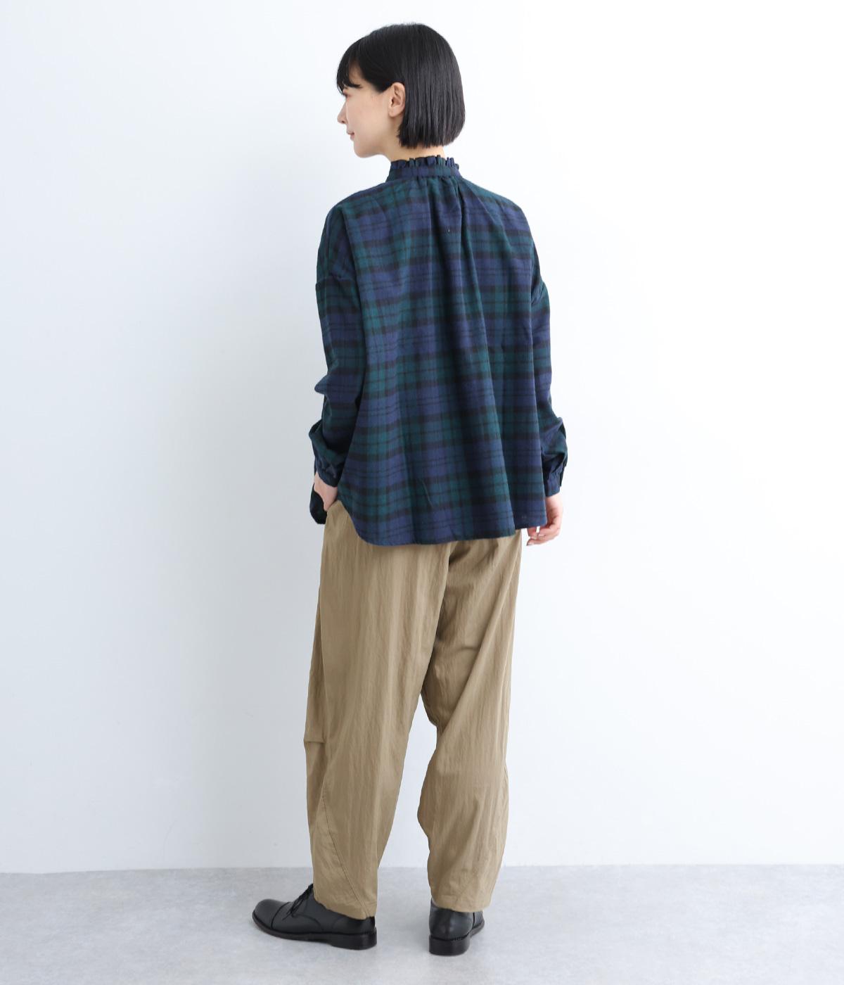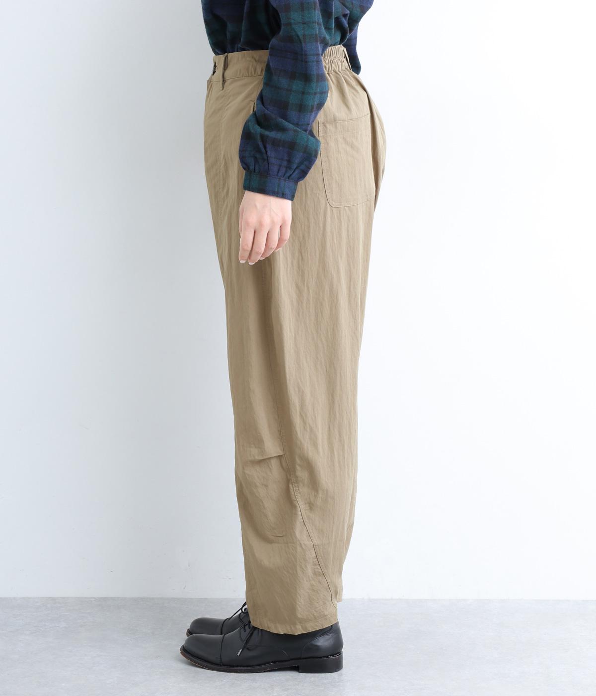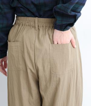 レーヨンのなめらかな落ち感とナイロンのタフさを兼ね備えた混紡素材を採用。シックで落ち着いた風合いながら、ほのかにシャリ感があり、はき心地は軽やか。