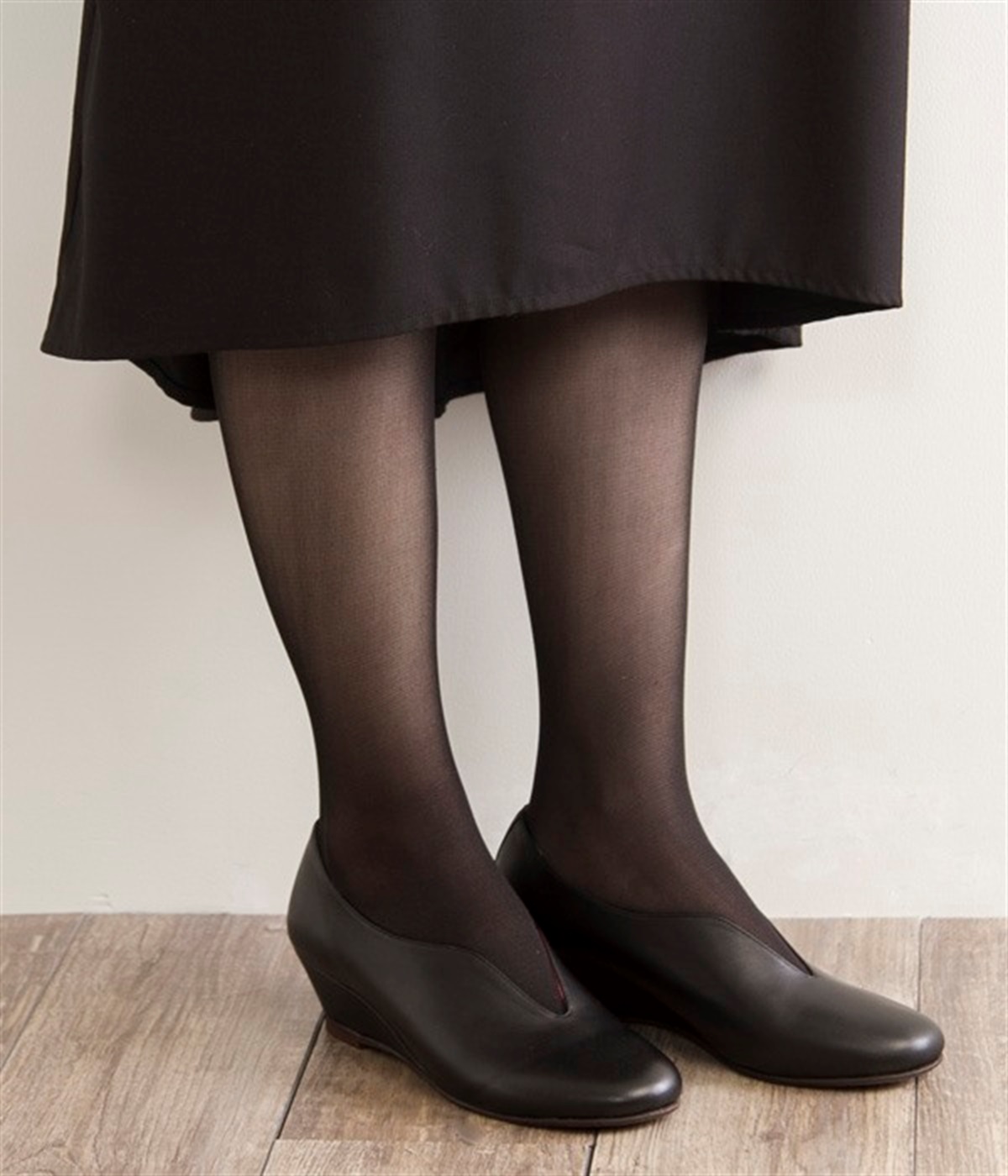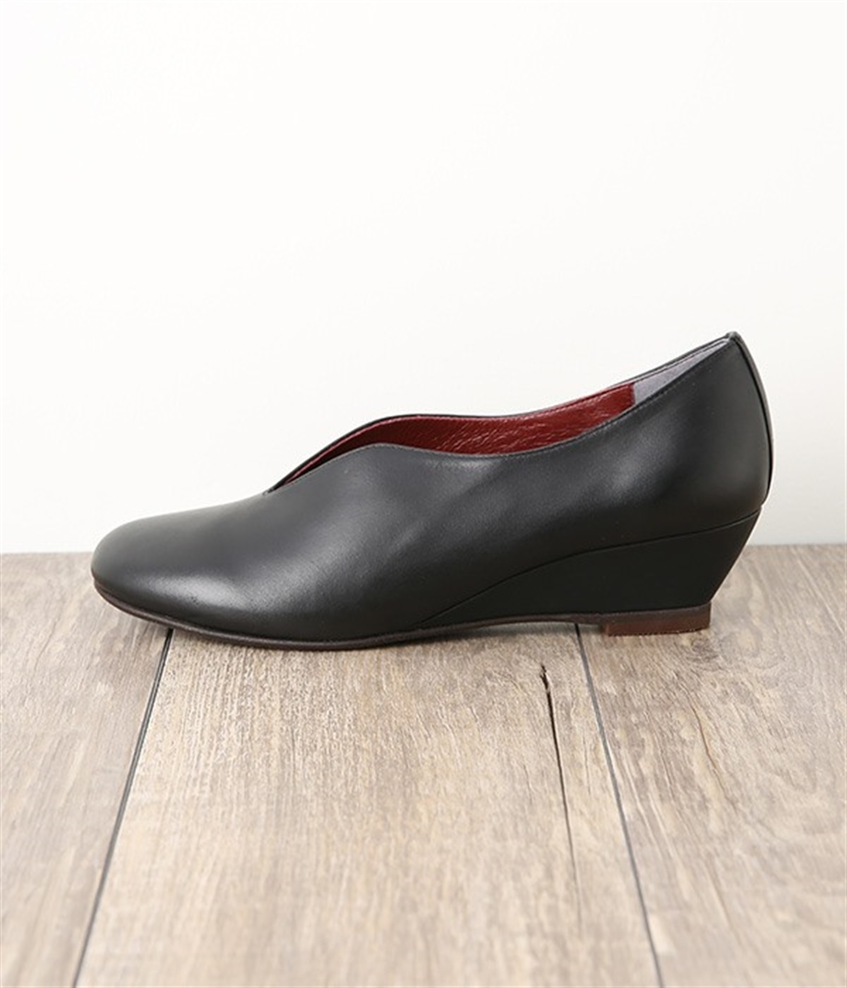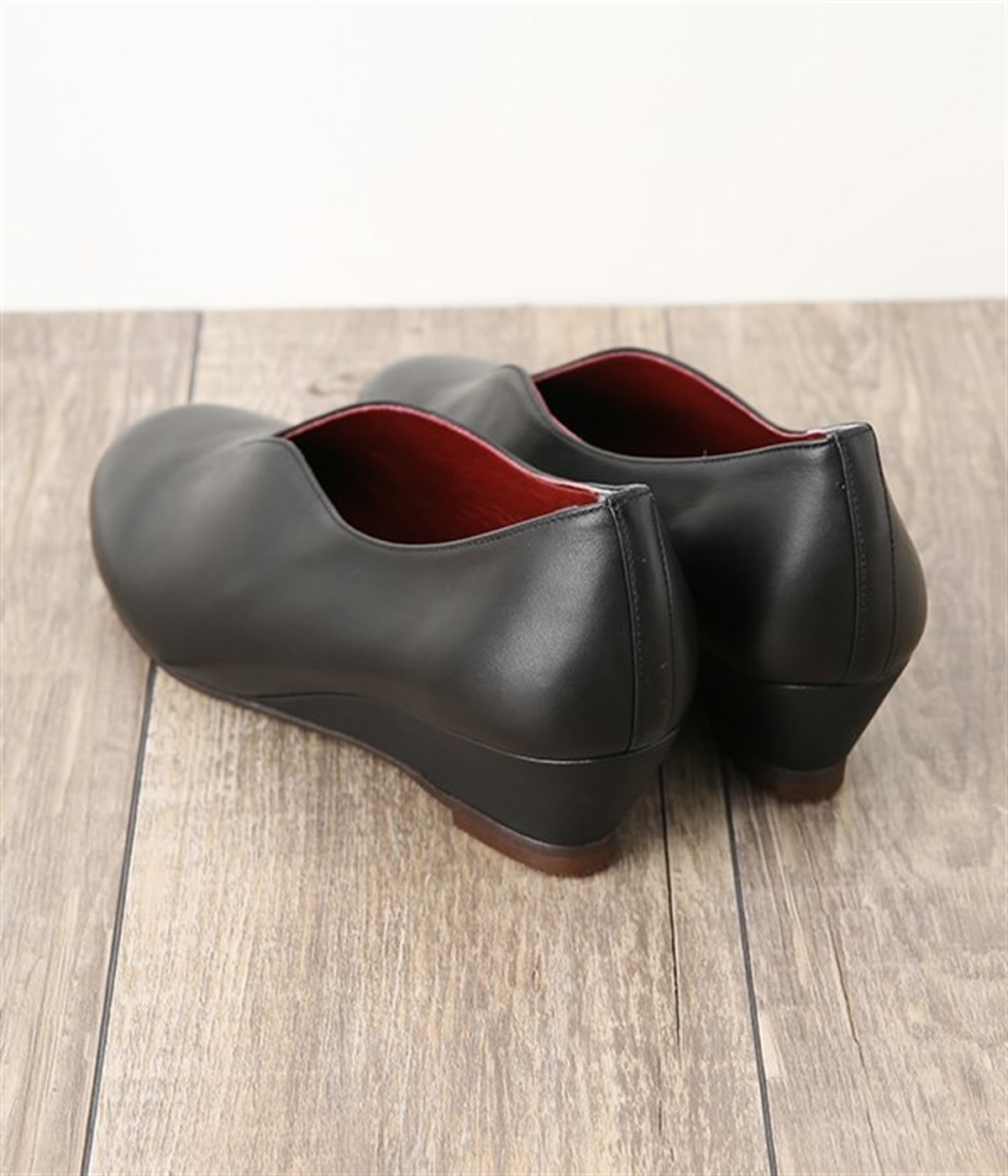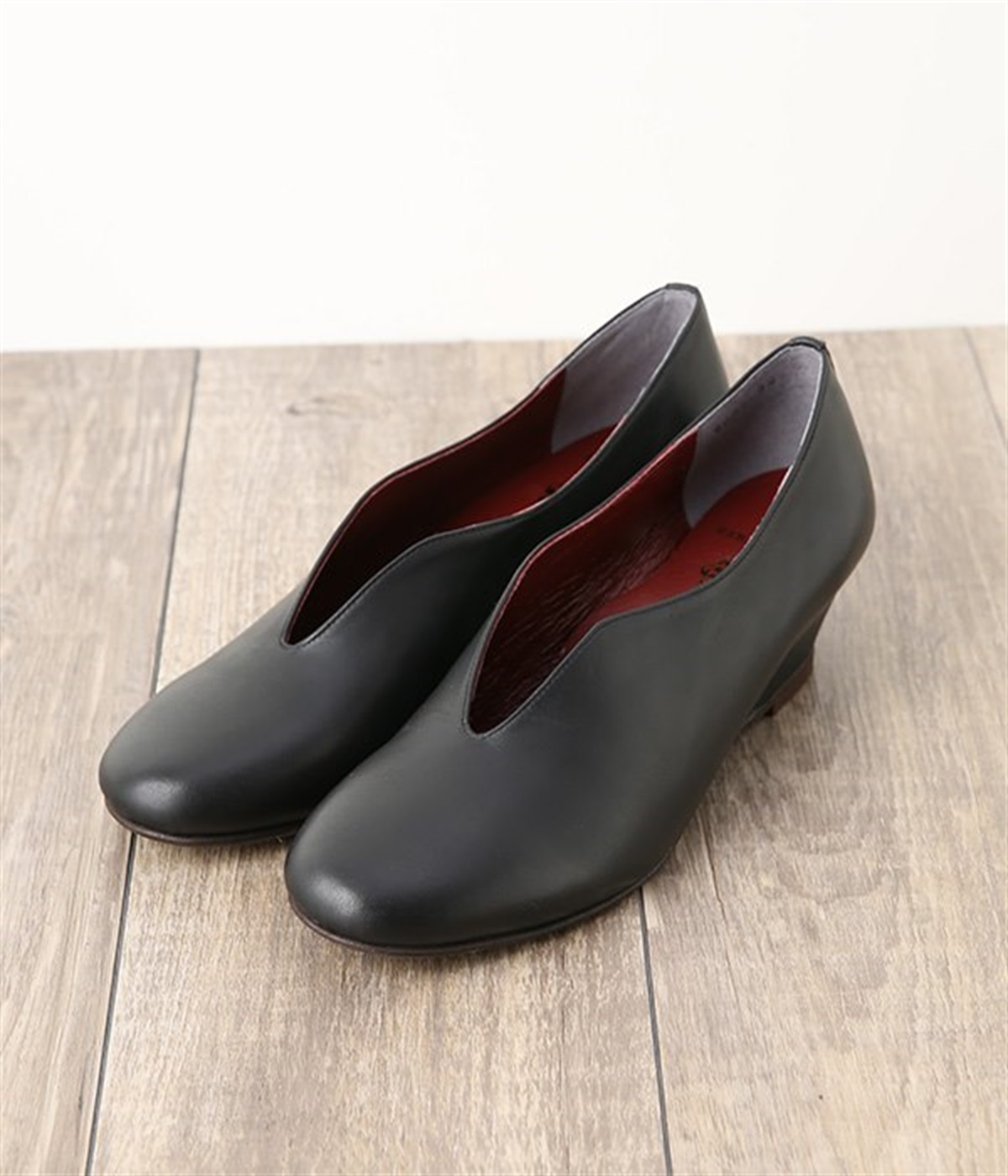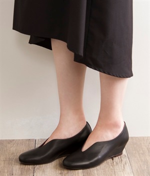 アンティーク加工を施した牛革を使用したウェッジソールパンプス。防水加工がされているためお手入れがしやすく、突然の雨も安心です。