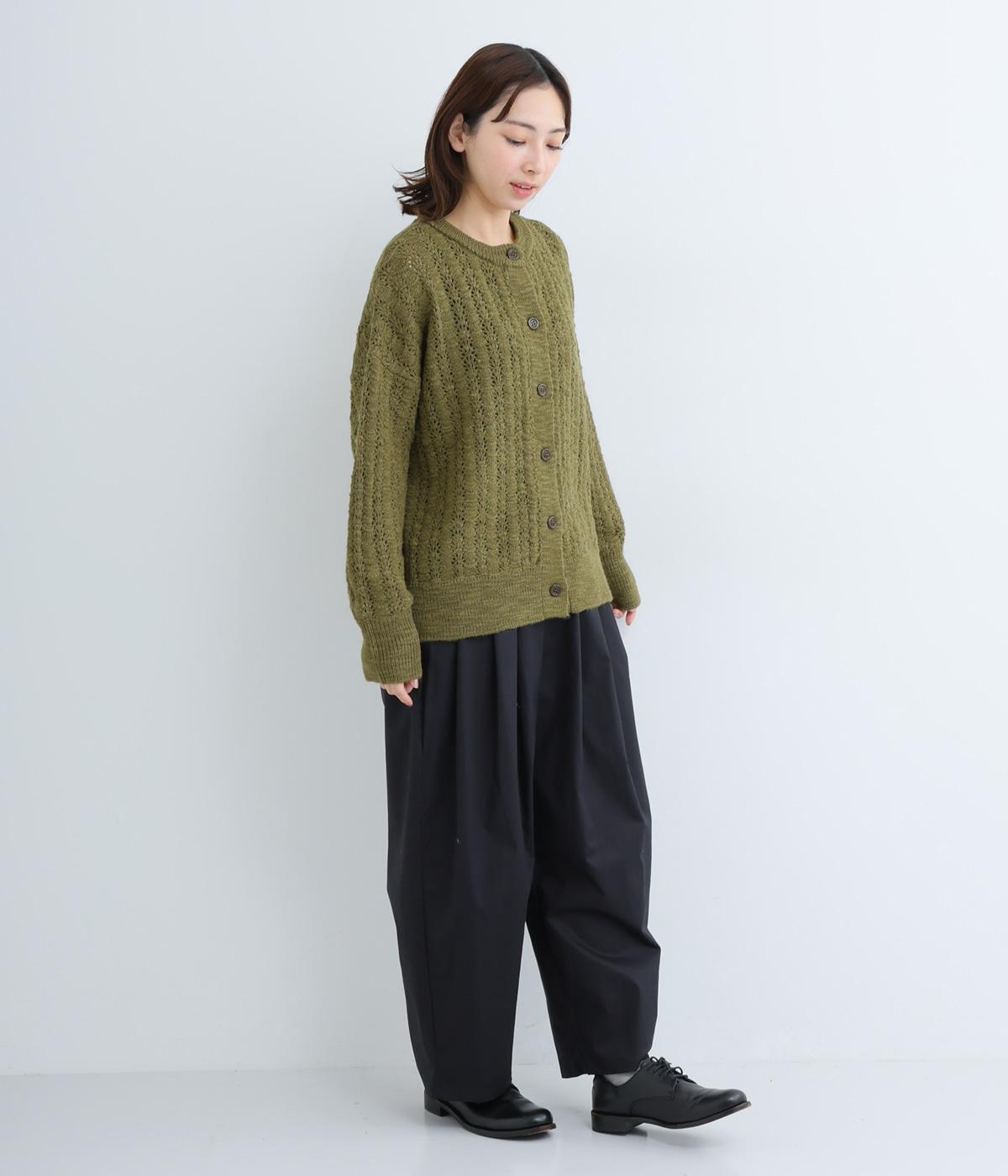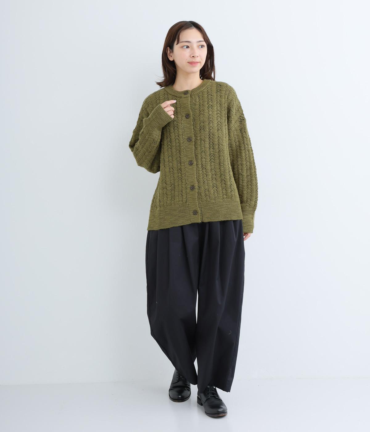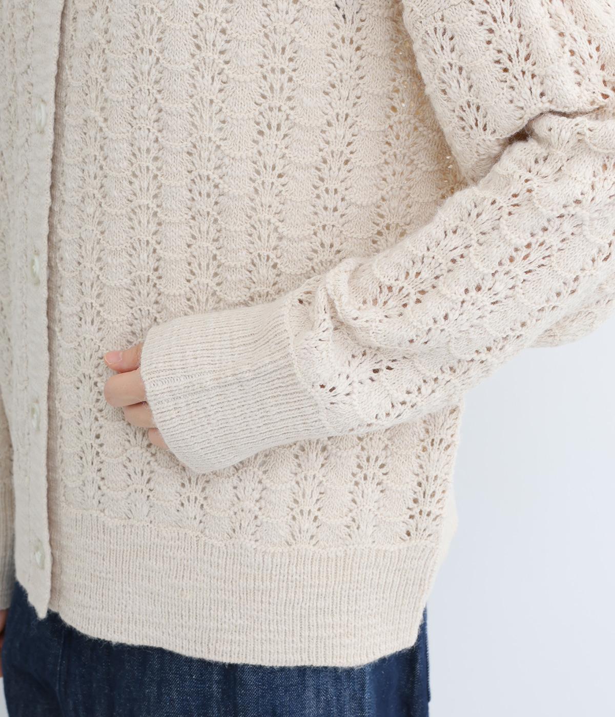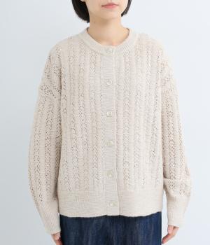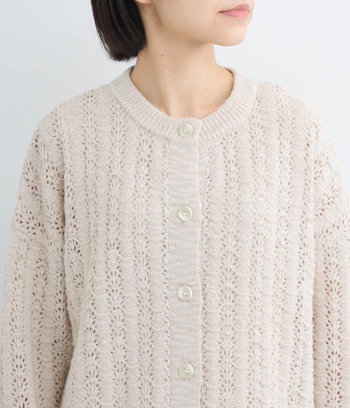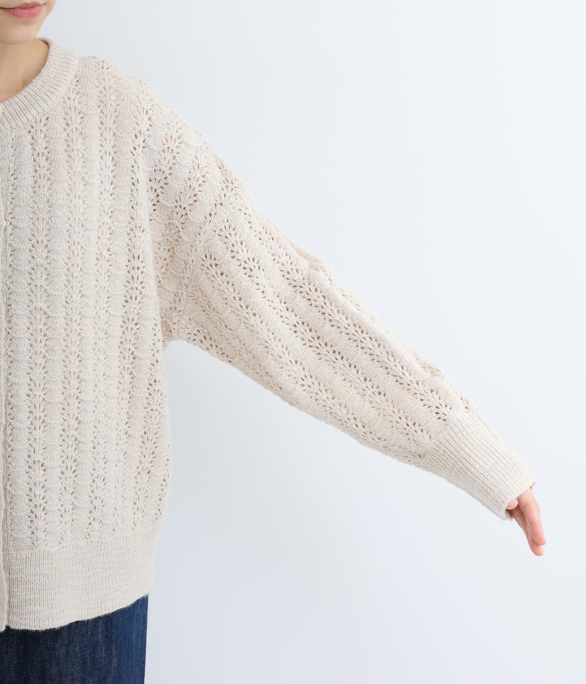 生地表面の凹凸感のある編み模様が、ハイセンスな印象のニットカーディガン。見た目にもあたたかみがあり、ナチュラルな着こなしにぴったりのアイテムです。パンツやスカートと合わせて幅広いコーディネートが叶うので、もっておきたい一枚。