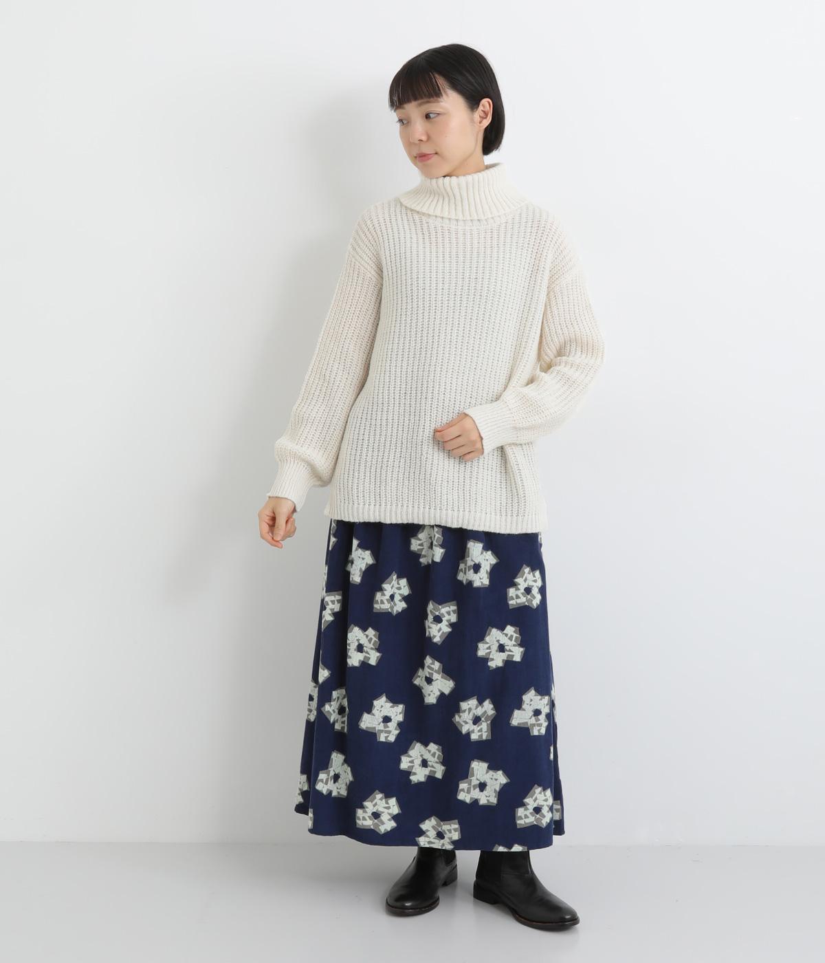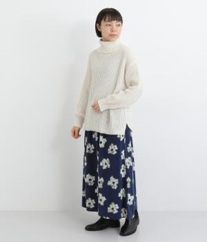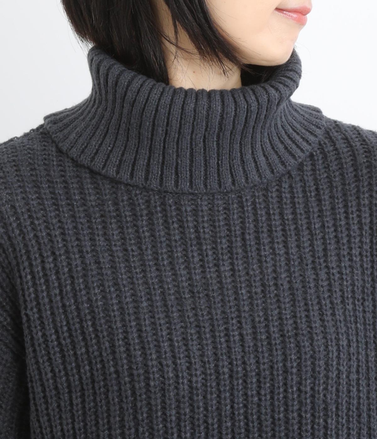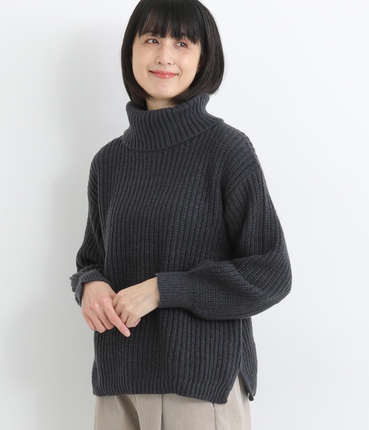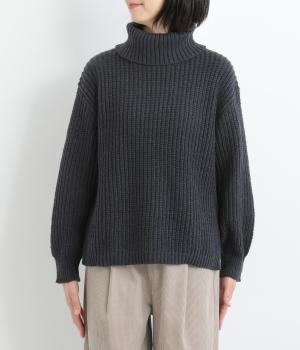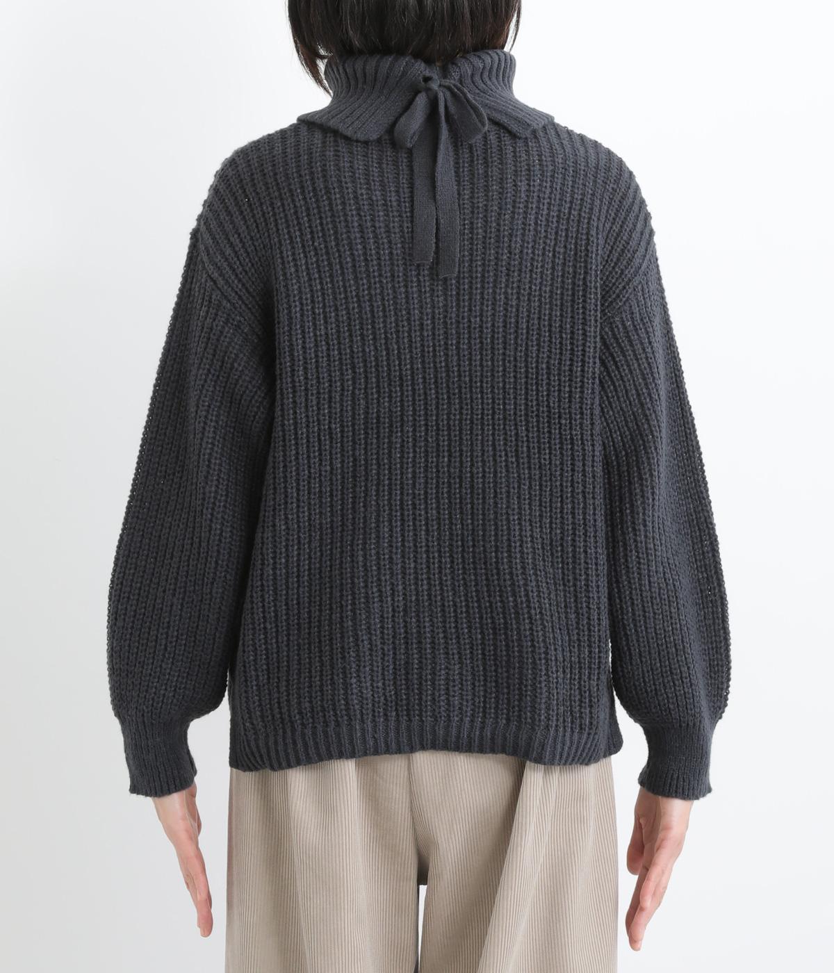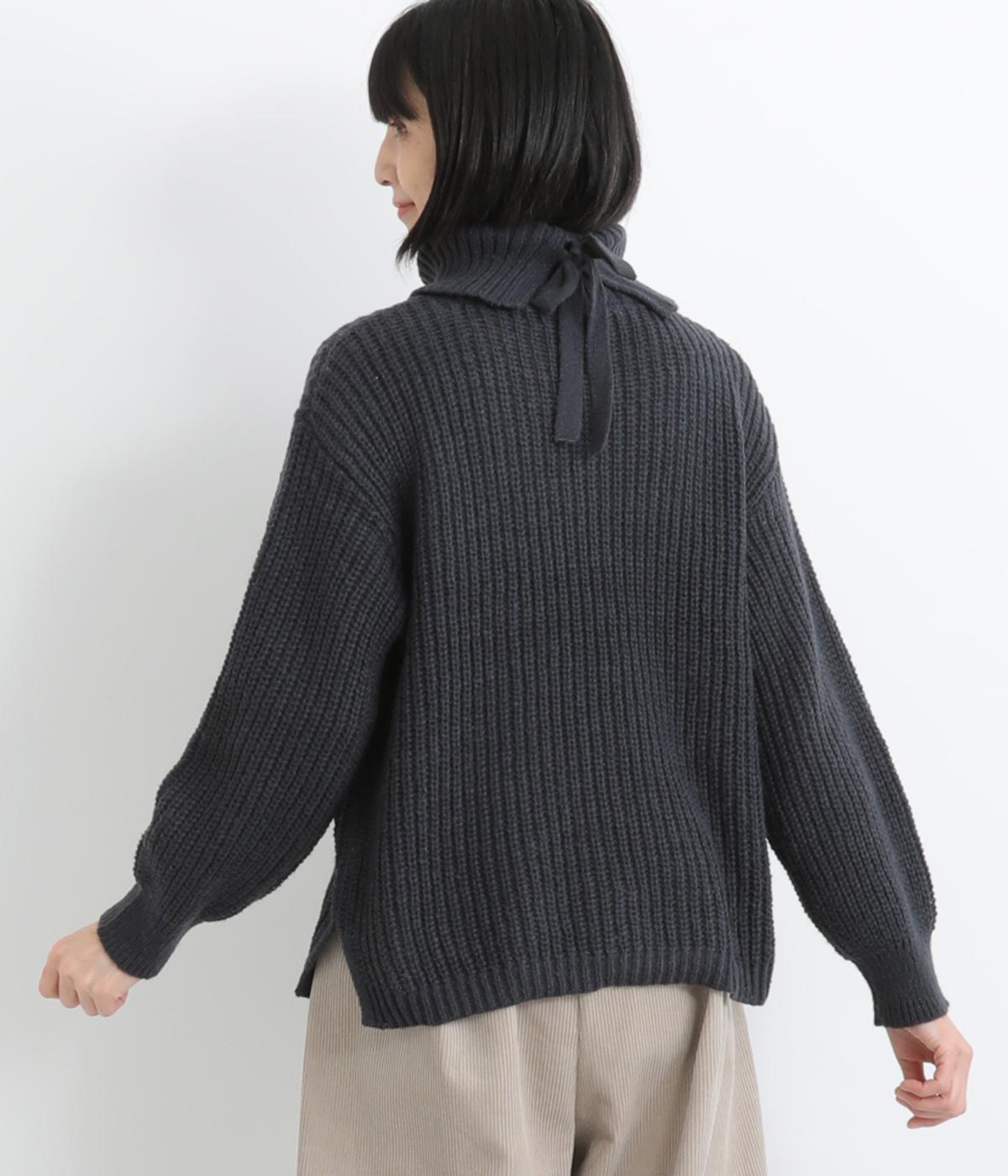 ベーシックなボックスシルエットに袖とタートルネックのボリューム感がアクセントになっています。後ろネックのリボンが大人かわいいディテールに。シンプルで着まわしやすく、サイドスリット入りでボトム合わせもすっきりきまります。