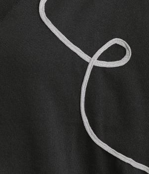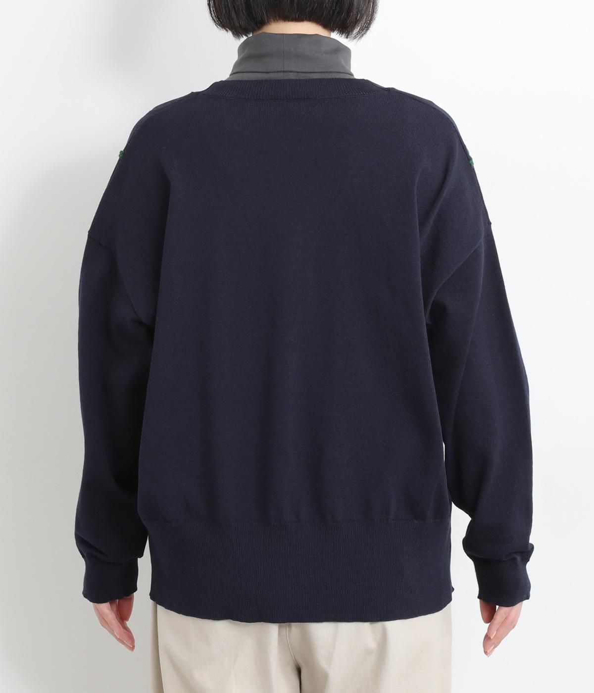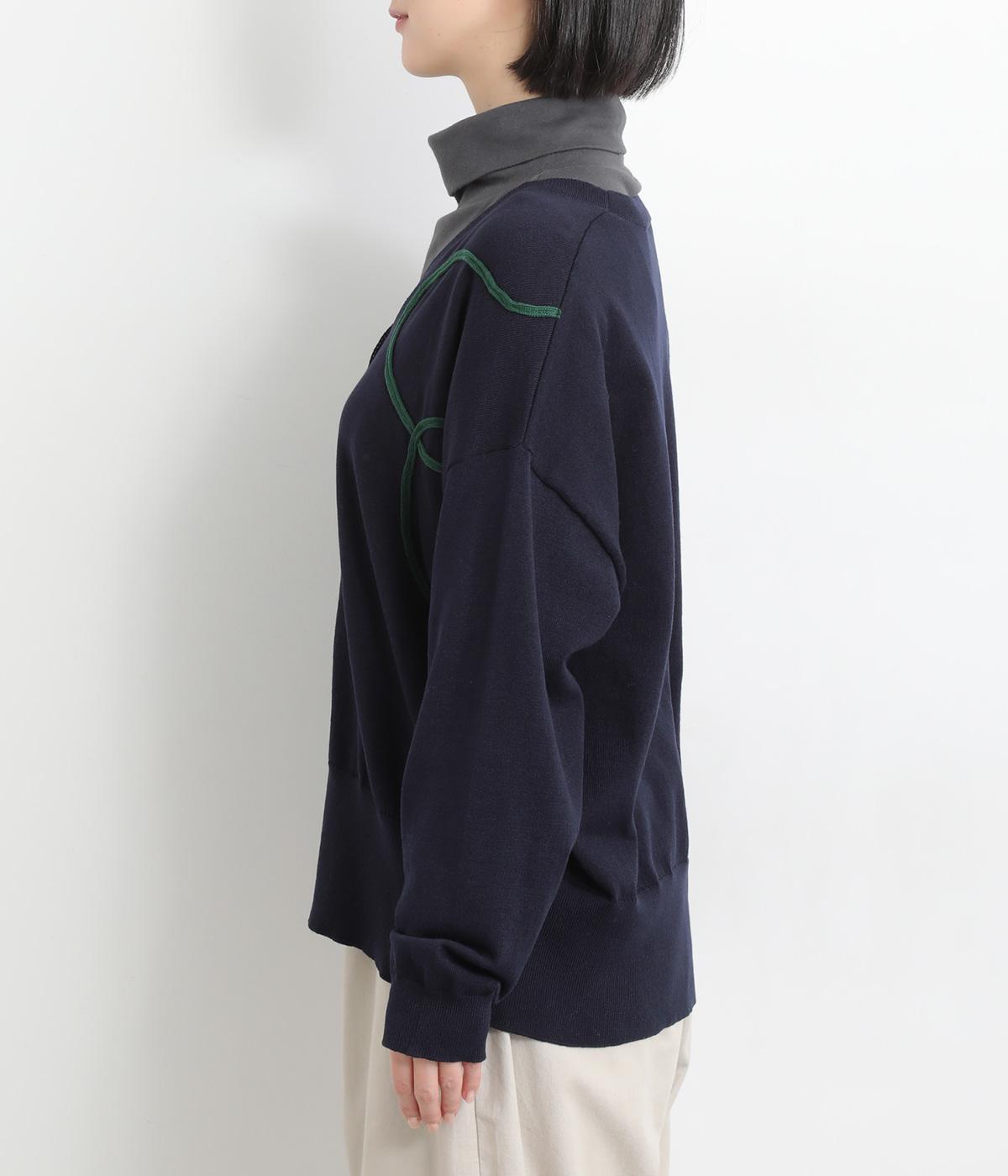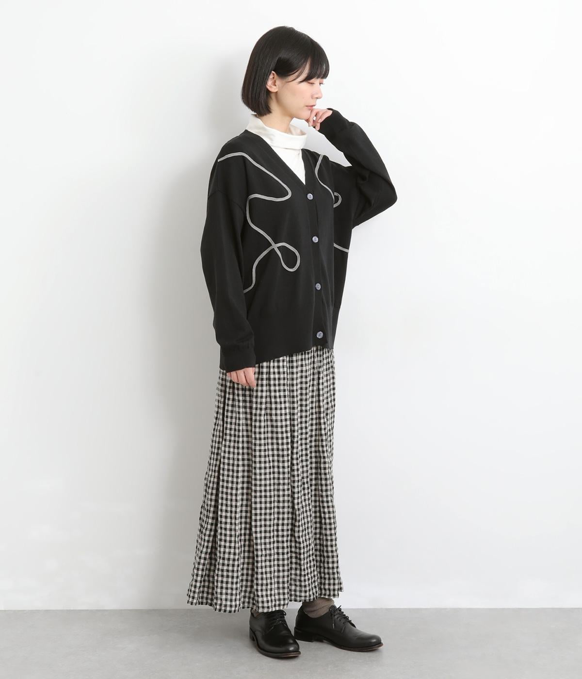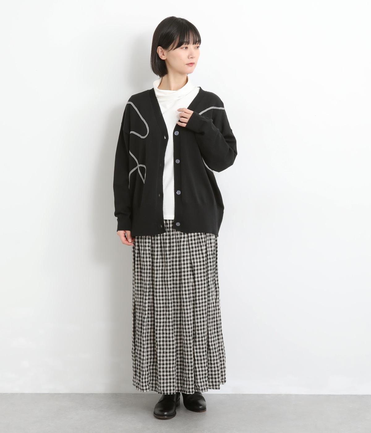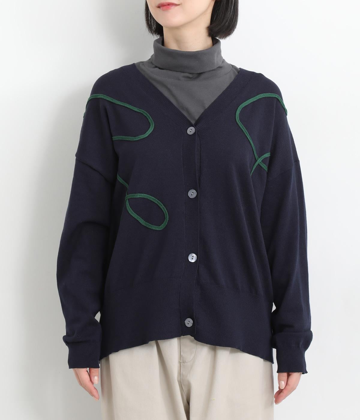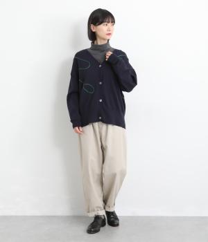 ゆったりとしたシルエットに、ラインアートの刺しゅうをあしらいました。糸で描いたような曲線モチーフが、さりげない個性を添えます。ドロップショルダーが自然な落ち感を生み、体のラインをやさしくカバー。Vネックが顔まわりをすっきりと見せ、羽織るだけでこなれた大人の着こなしが完成します。