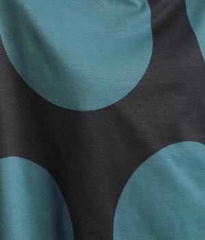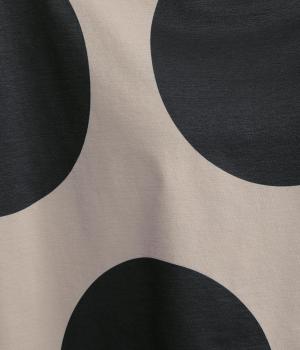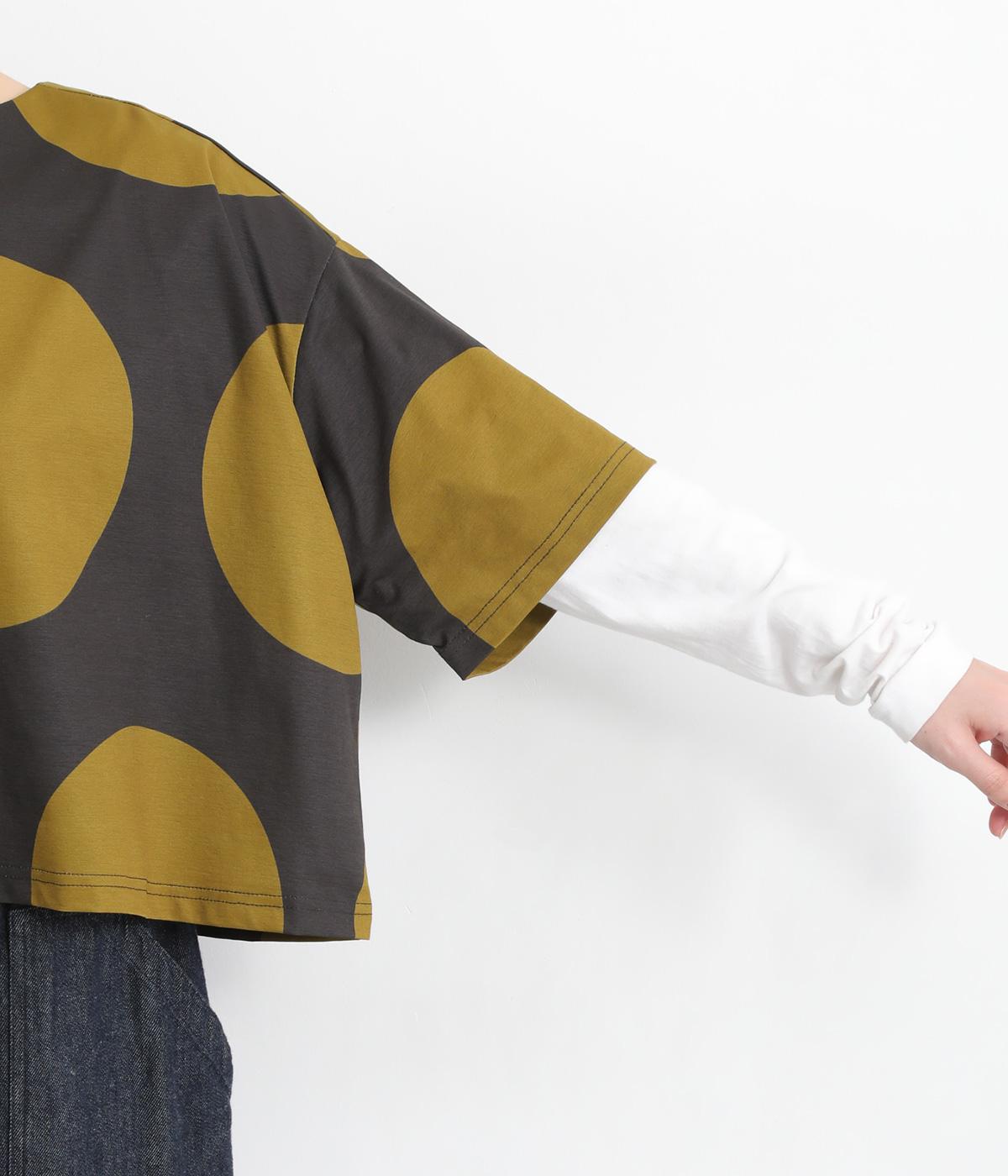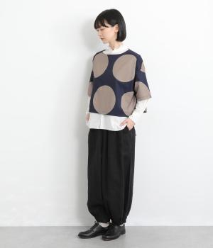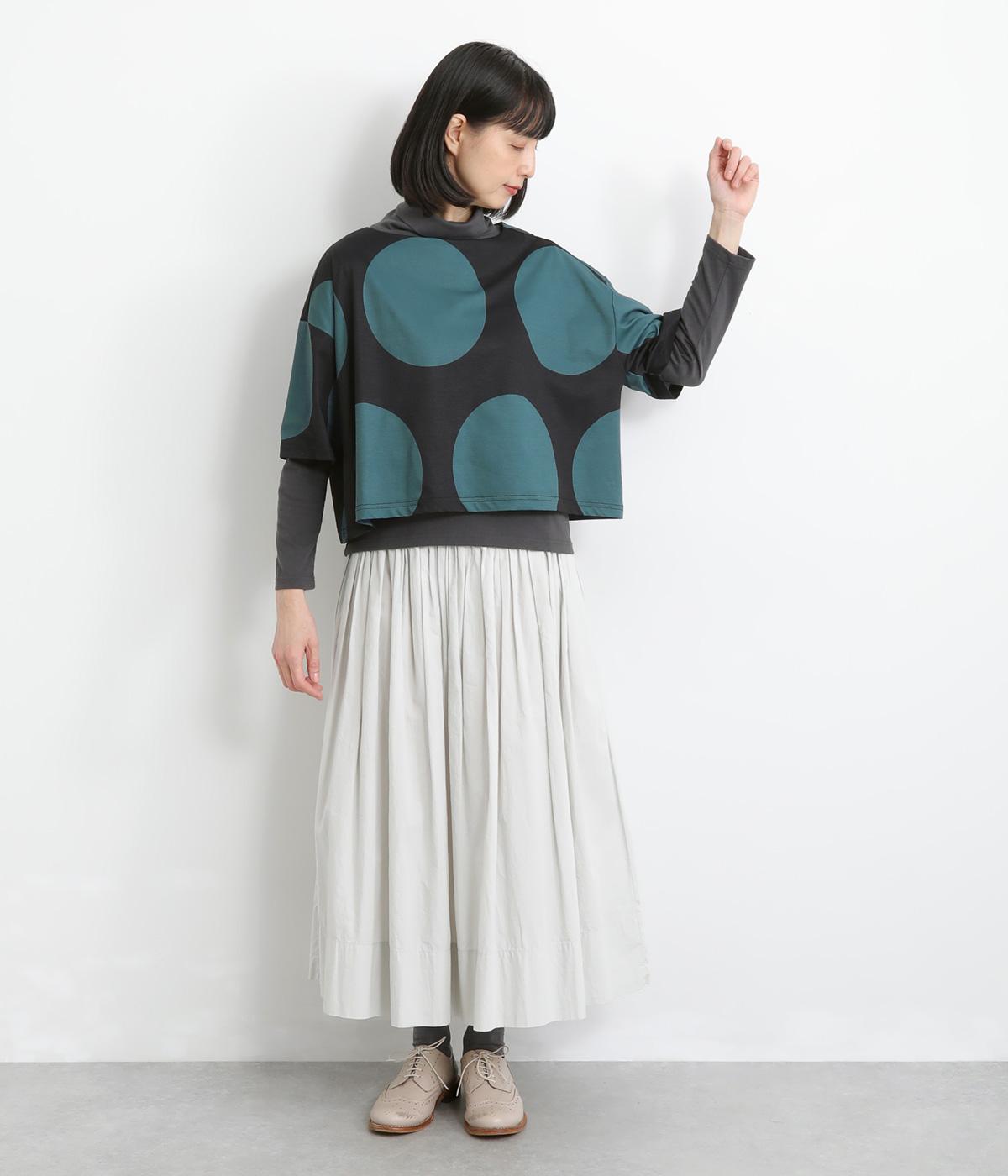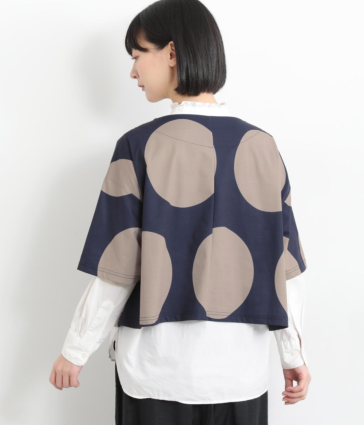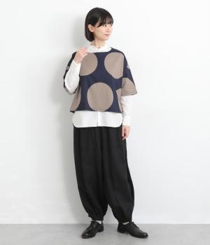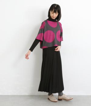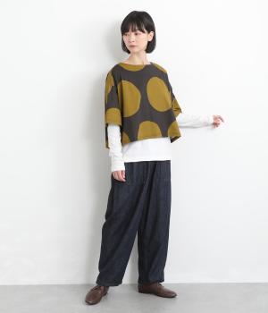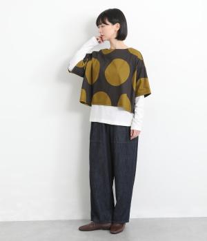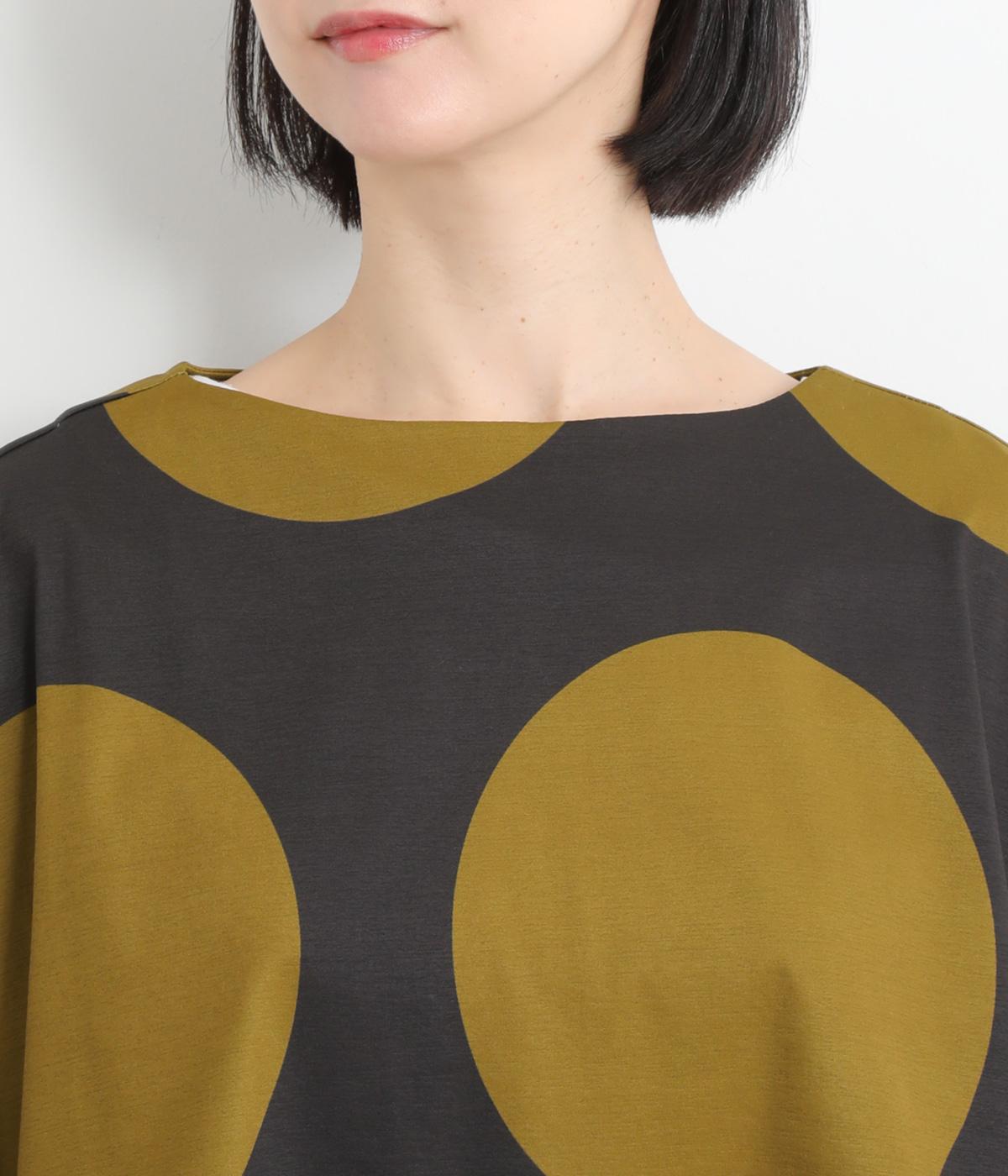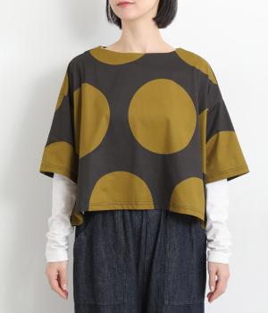 コントラストのきいた大きなドット柄が目を引く、遊び心のあるデザインです。ほどよくあいたボートネックがデコルテをきれいに見せ、抜け感をプラスします。ゆったりとしたシルエットながら、短めの丈感ですっきりとした印象に。インナーを重ねたコーディネートもたのしめ、着こなしの幅が広がります。