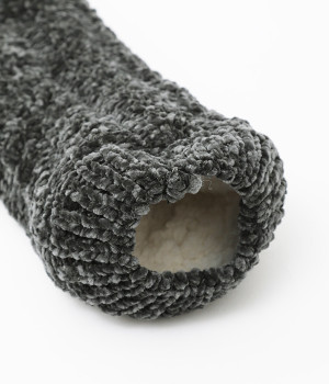 外側は光沢のあるポリエステルニットのケーブル編み