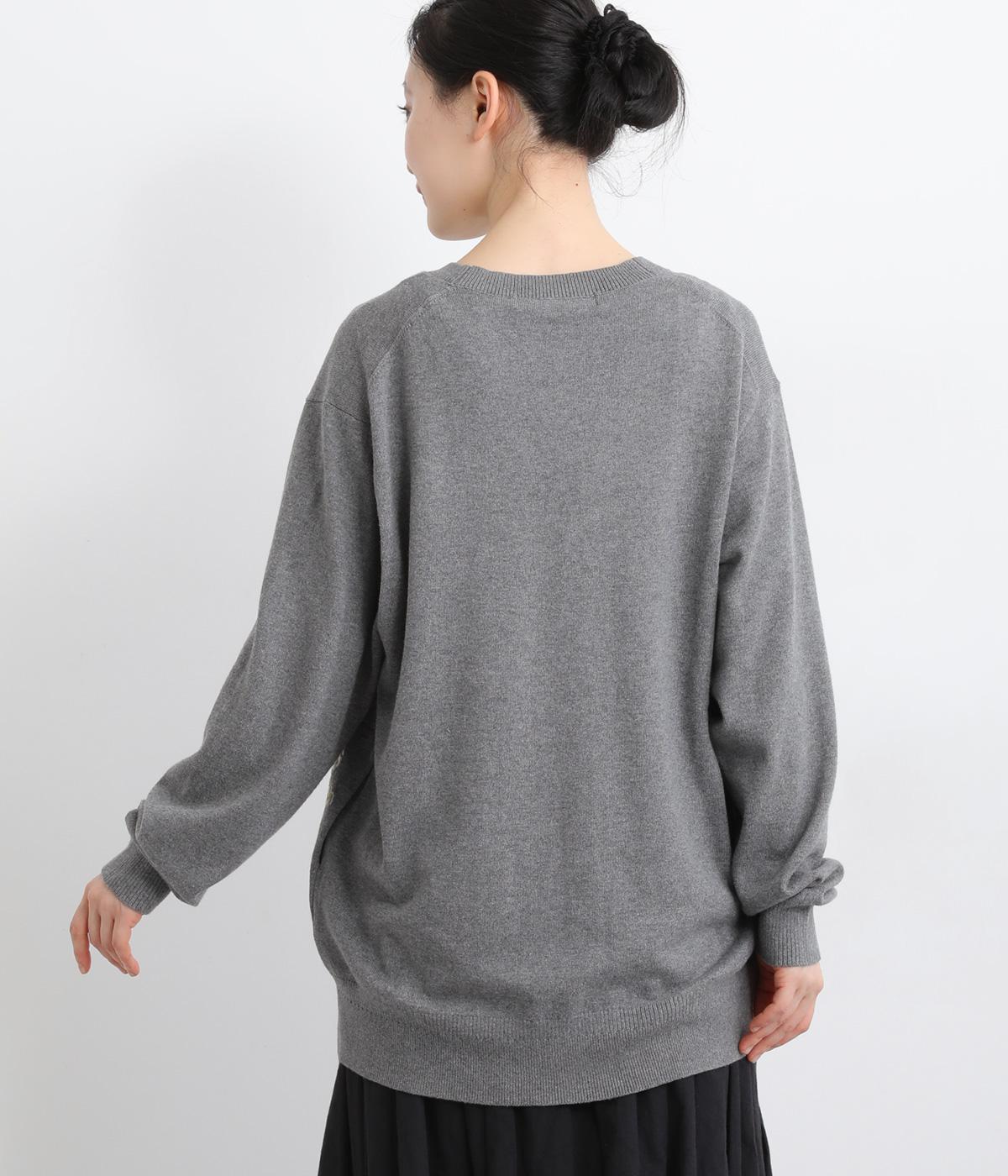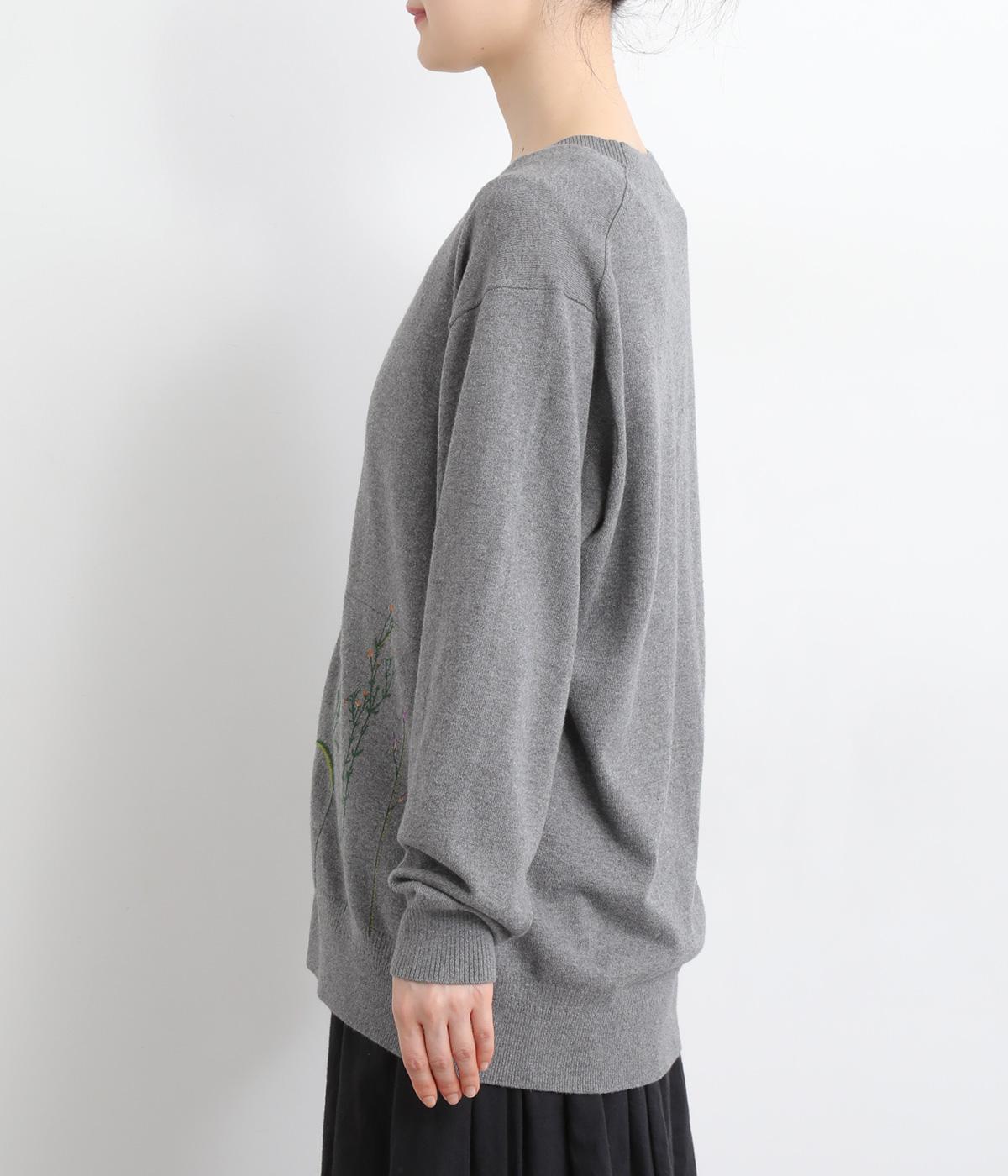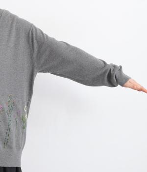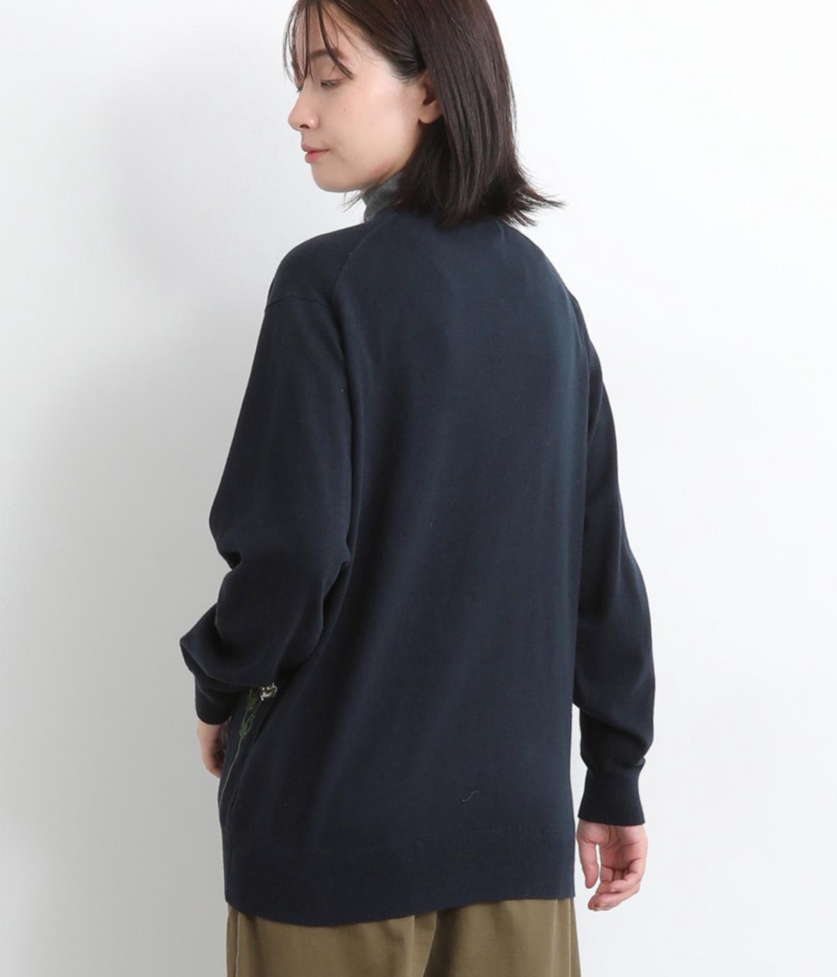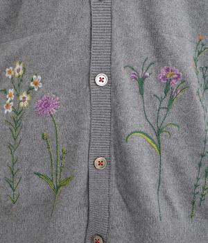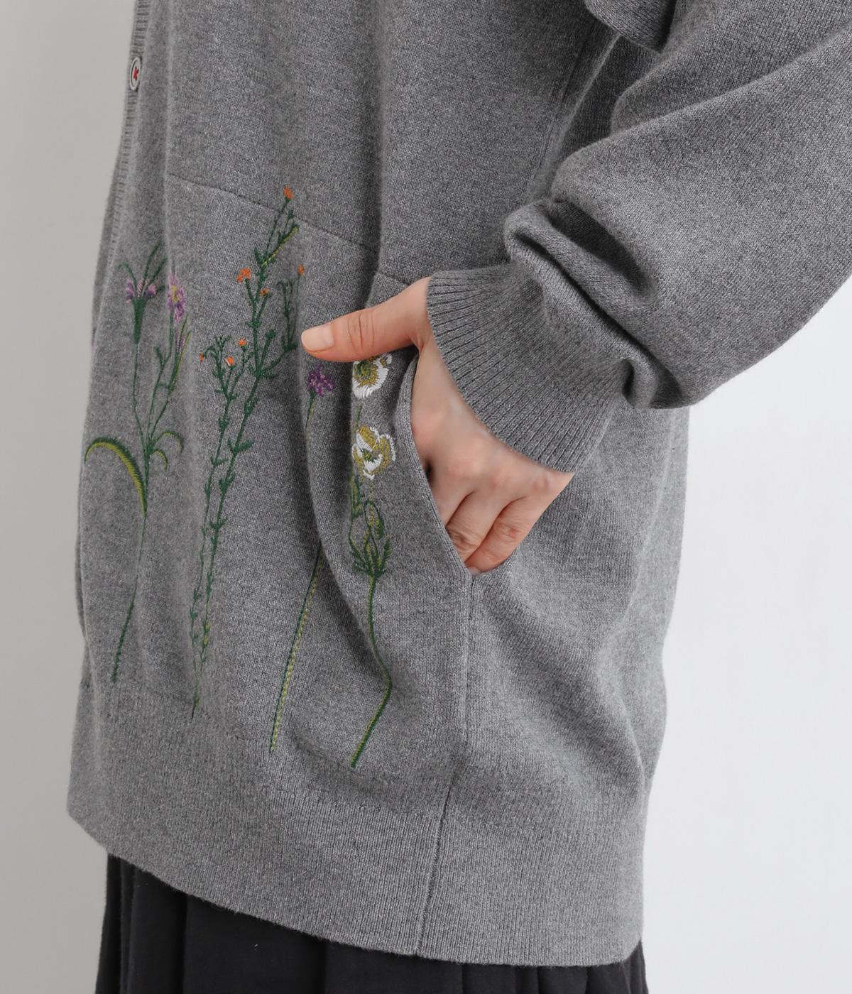 スッと伸びた茎が印象的な花柄刺しゅうのカーディガンです。Vネックですっきりさせ、レイヤードスタイルも楽しめます。ボタンの付け糸を赤くして、さりげないアクセントに。コーディネートにやさしい華やかさを添える一枚です。