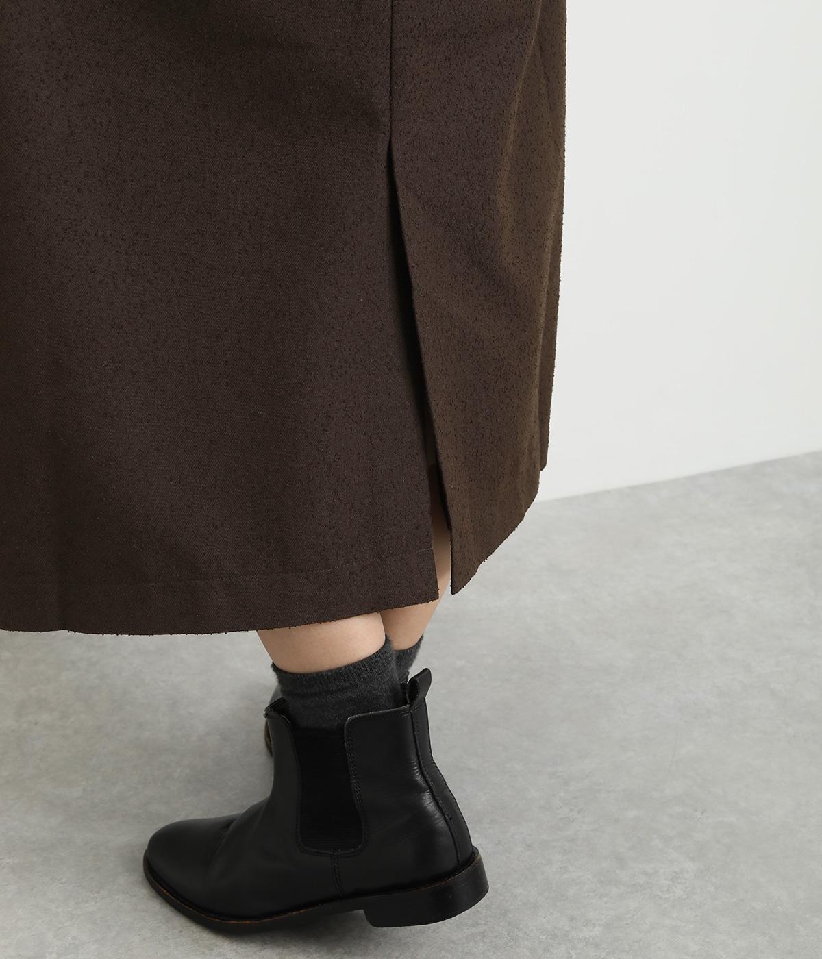 つぶ感のあるツイード調の生地で表情をもたせました。ポリエステルをベースとした軽やかな生地にレーヨンでなめらかさもプラス。アイテム合わせしやすい、すべりのいい裏地つきです。