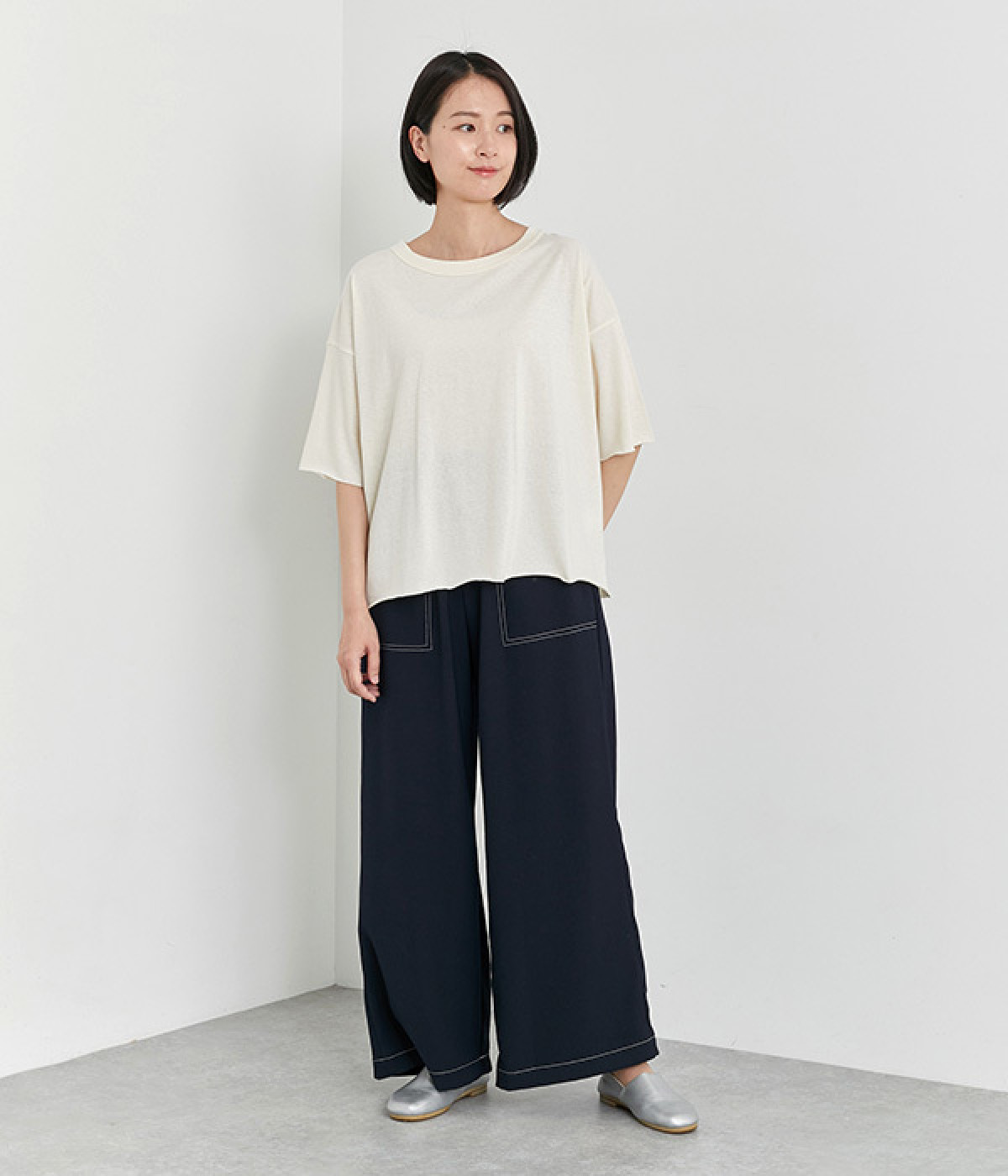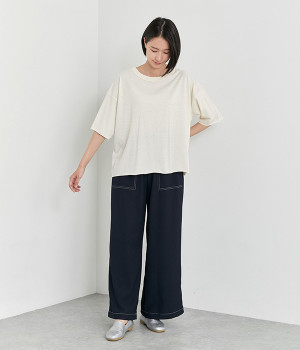 自然な風合いを活かしたUNDYEDのコットンを使用しています。薄手でやわらかくなめらかに落ちる質感で、ナチュラルな風合いと気負いのないこなれ感が魅力です。