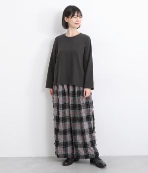 やわらかく伸縮性に優れた生地で仕立てました。とろみがありやさしく肌になじみます。味わいのあるナチュラルな表情が魅力の素材感です。