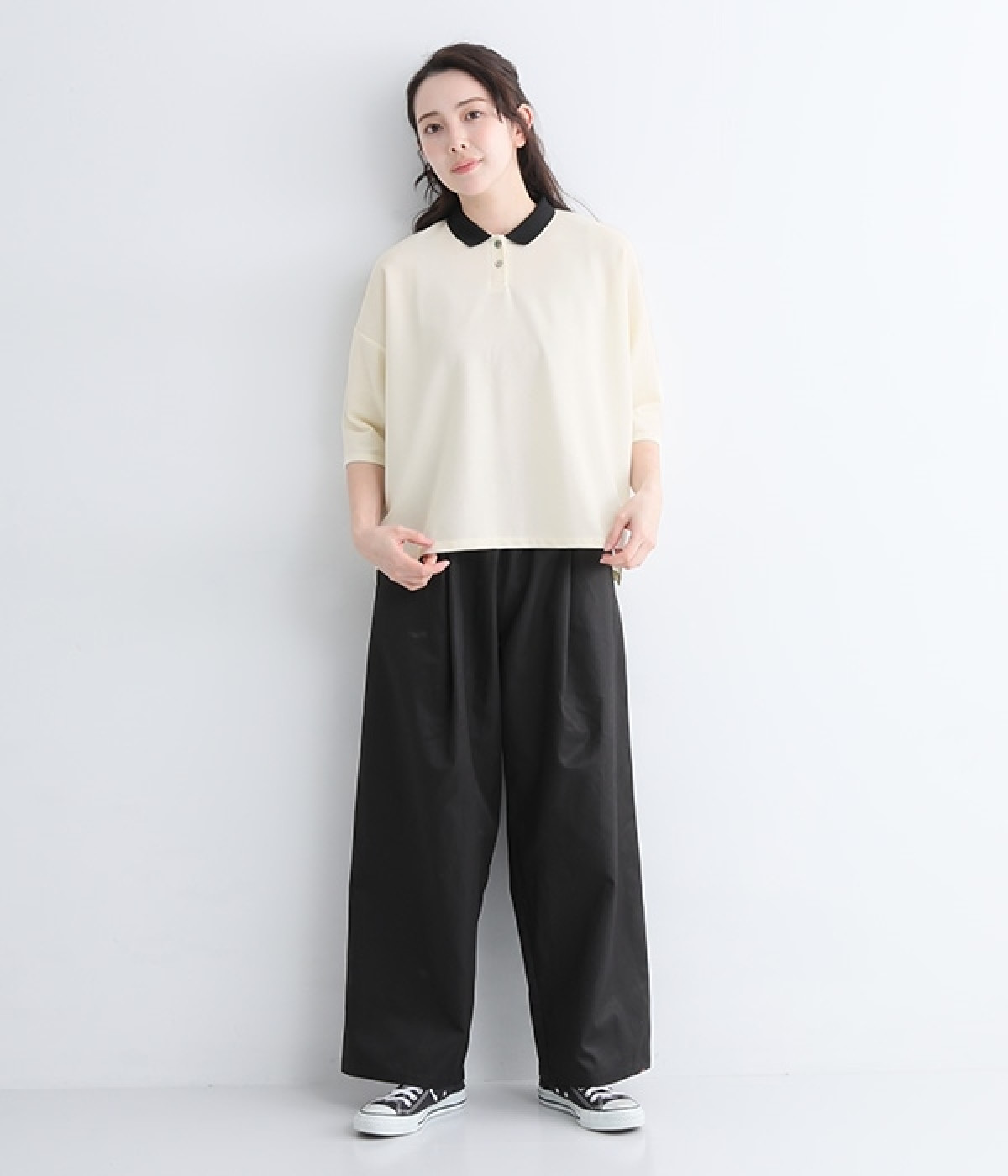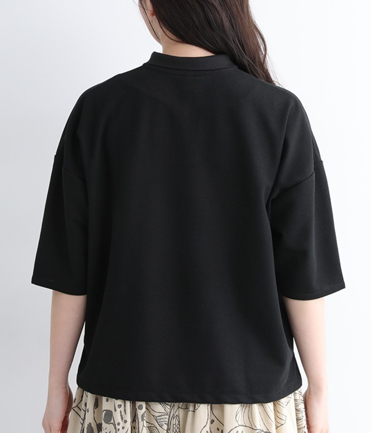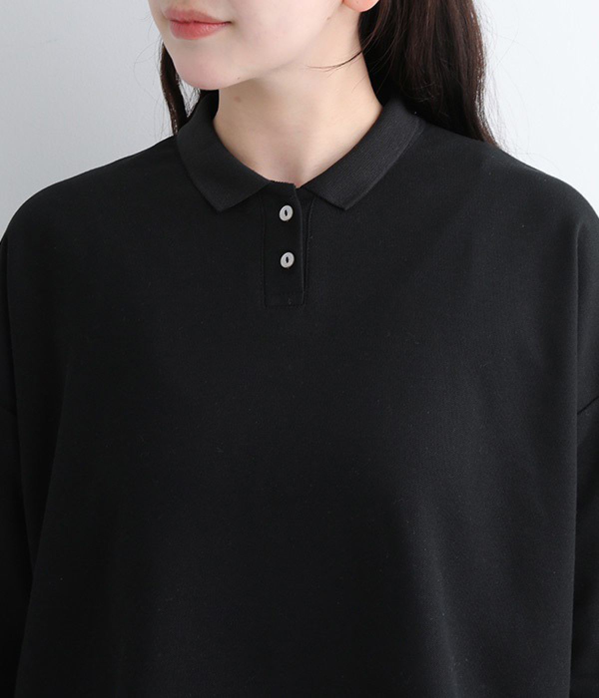 とてもなめらかなタッチのハニカム組織で編み立てたポロシャツ。ボタンの数を控えめにし、袖丈もやや長めにとってオリジナリティを高めました。ワイドな身幅&コンパクトな着丈のボクシーシルエットでゆったりと着られるのも魅力。襟の形が小ぶりなのでスポーティーな雰囲気になりにくく、普段のスタイリングにスッと溶け込みます。