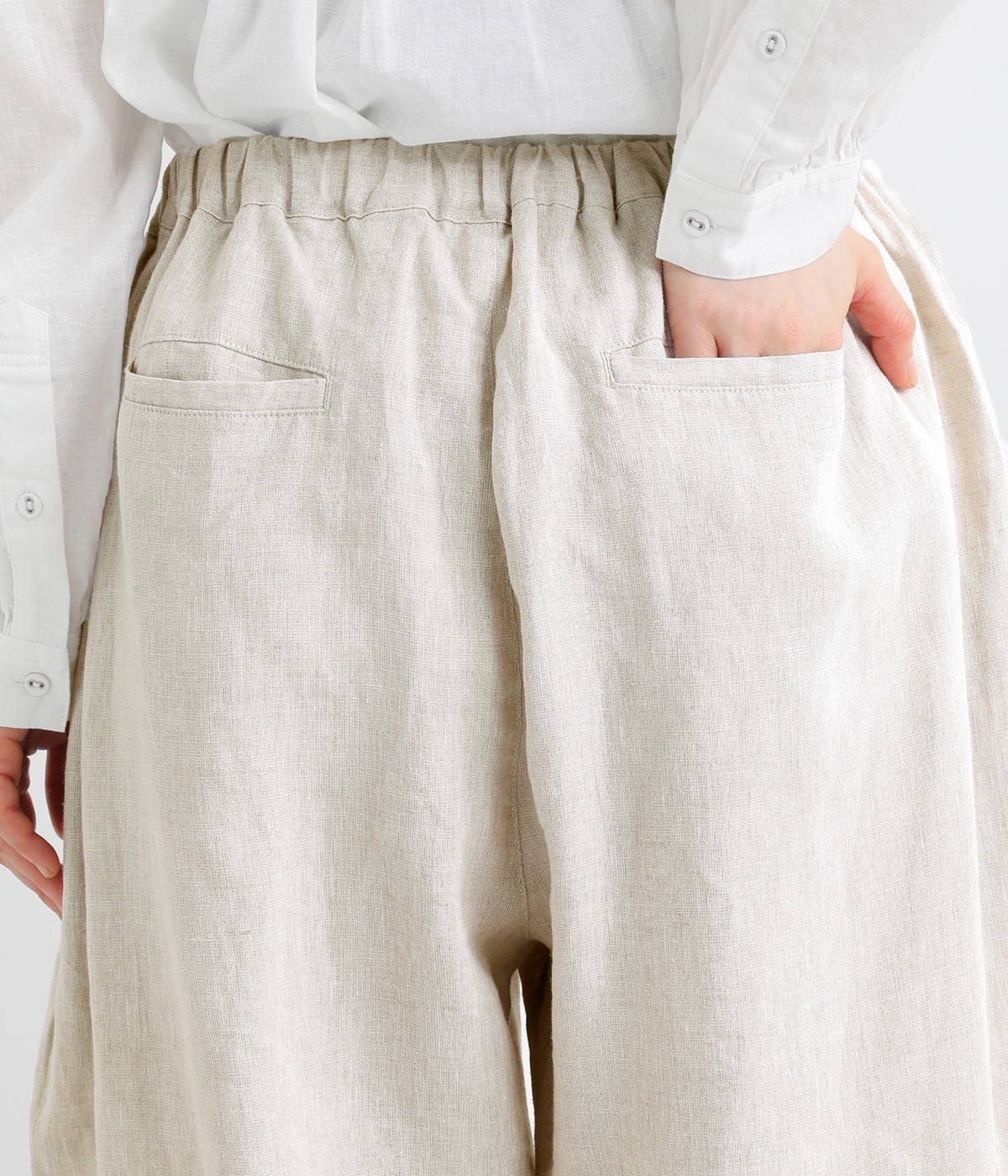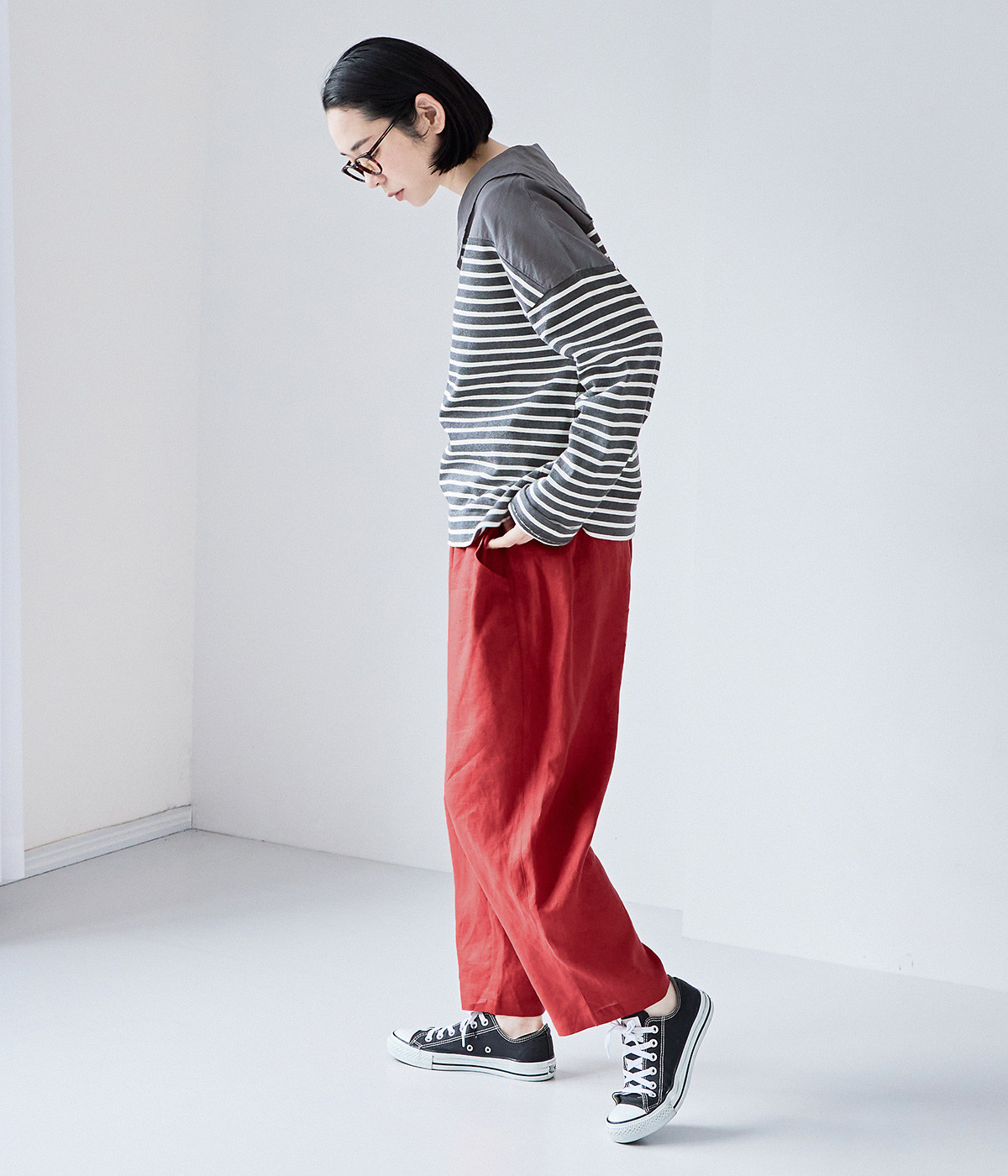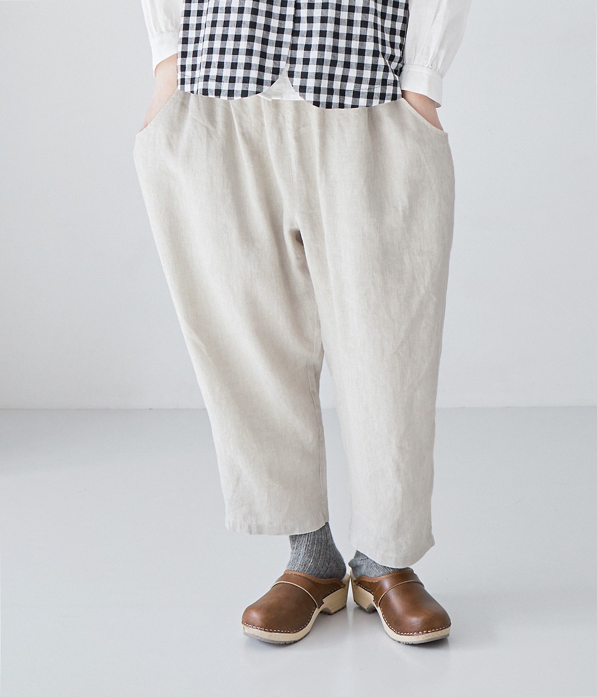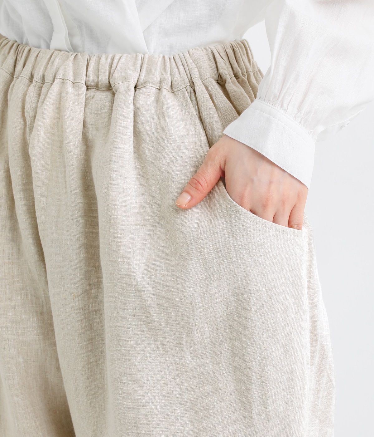 リネン特有のすとんとした落ち感で広がりすぎず、足さばきも快適。穿き心地が抜群で、つい毎日穿きたくなってしまいます。