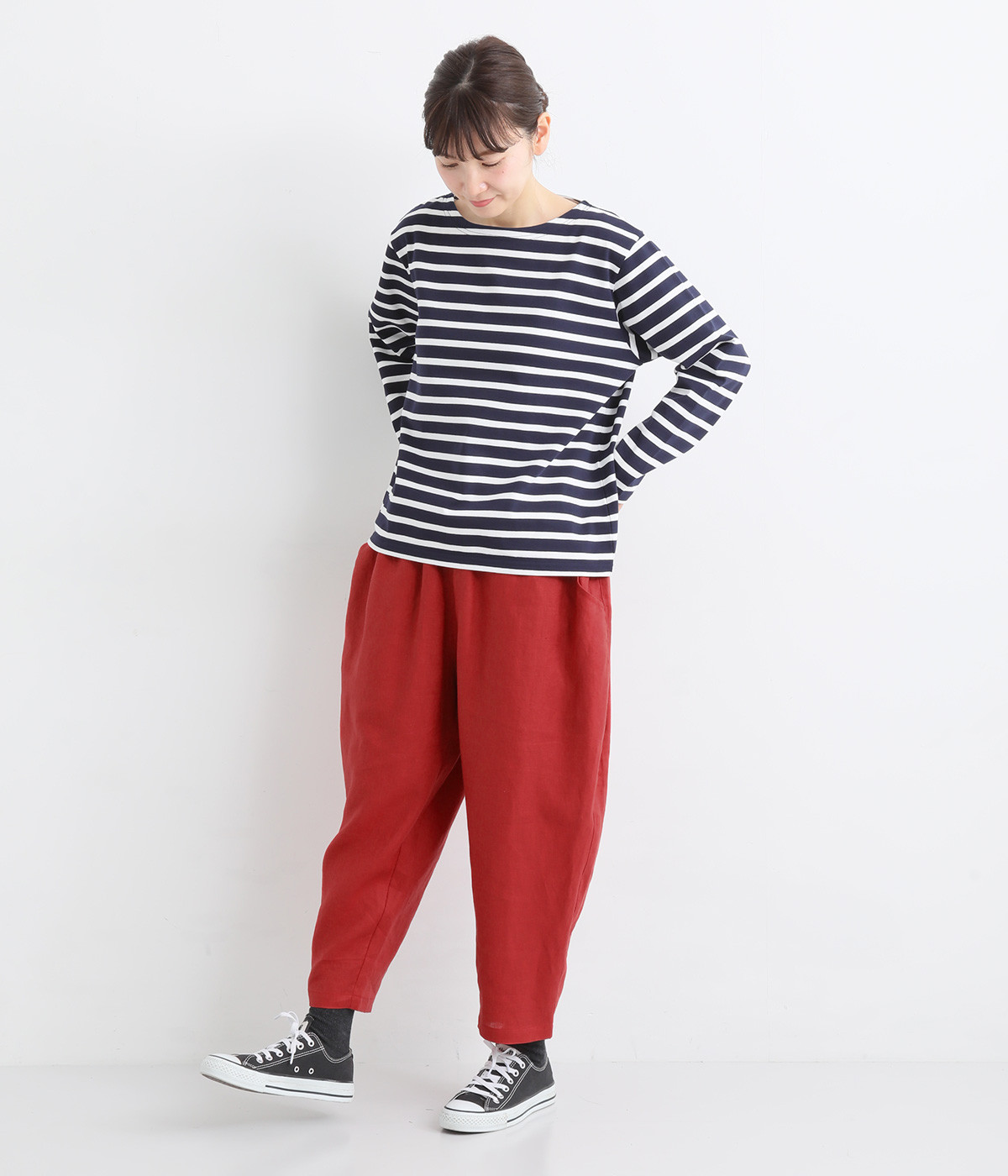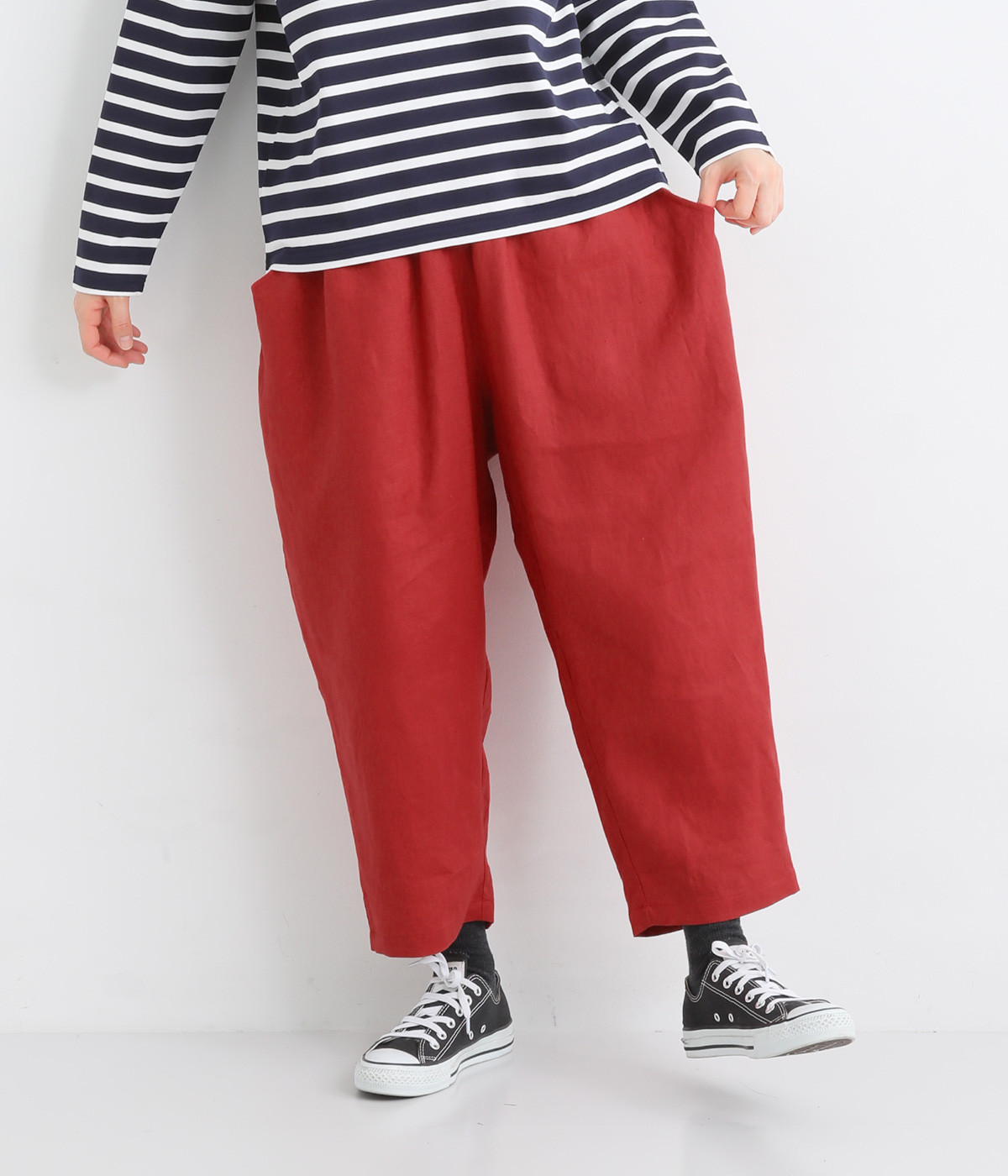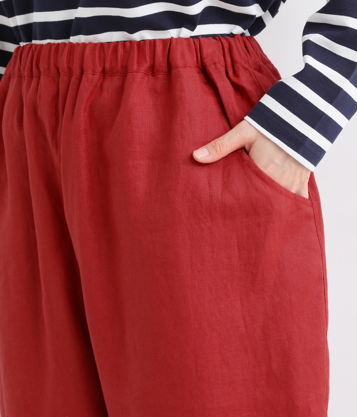 リネン特有のすとんとした落ち感で広がりすぎず、足さばきも快適。穿き心地が抜群で、つい毎日穿きたくなってしまいます。