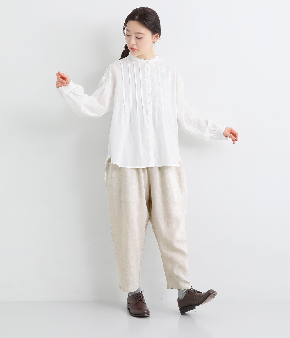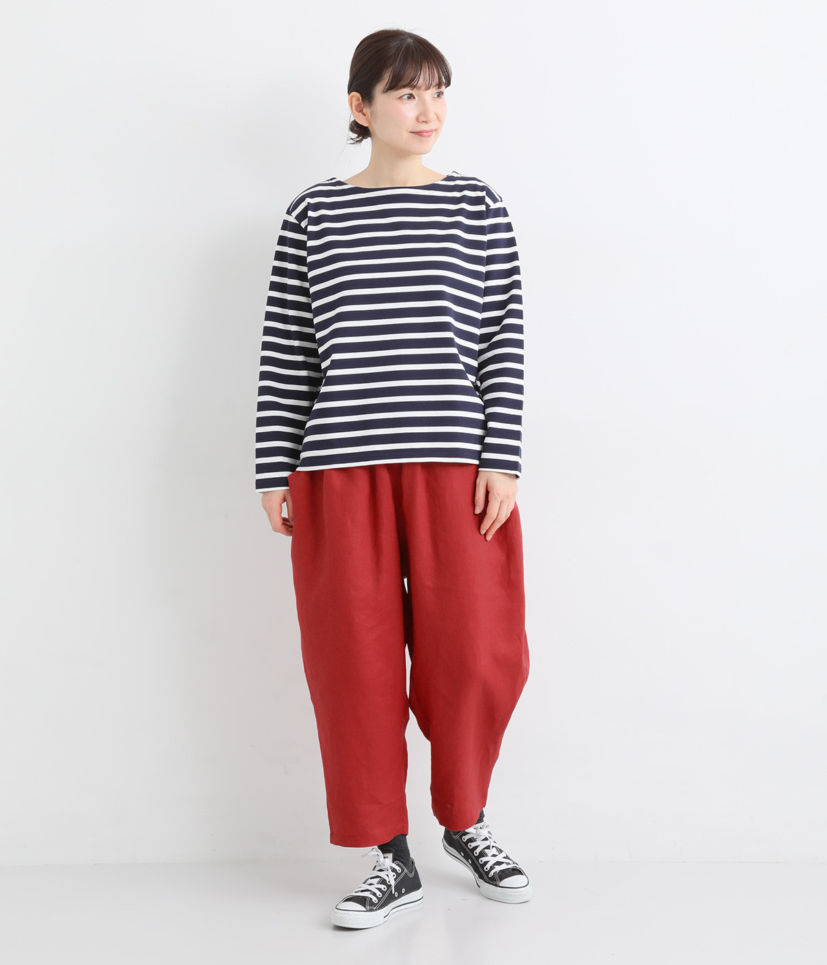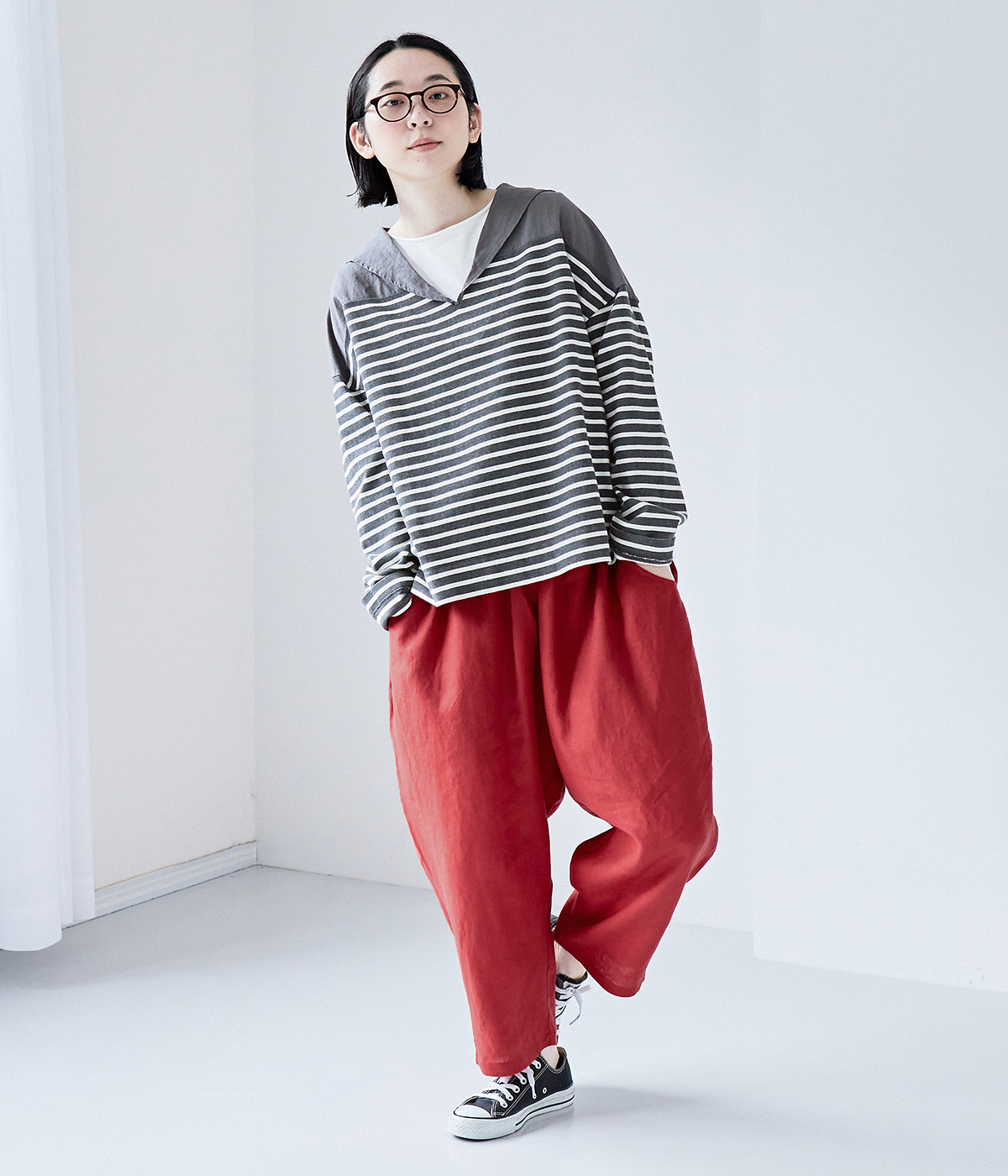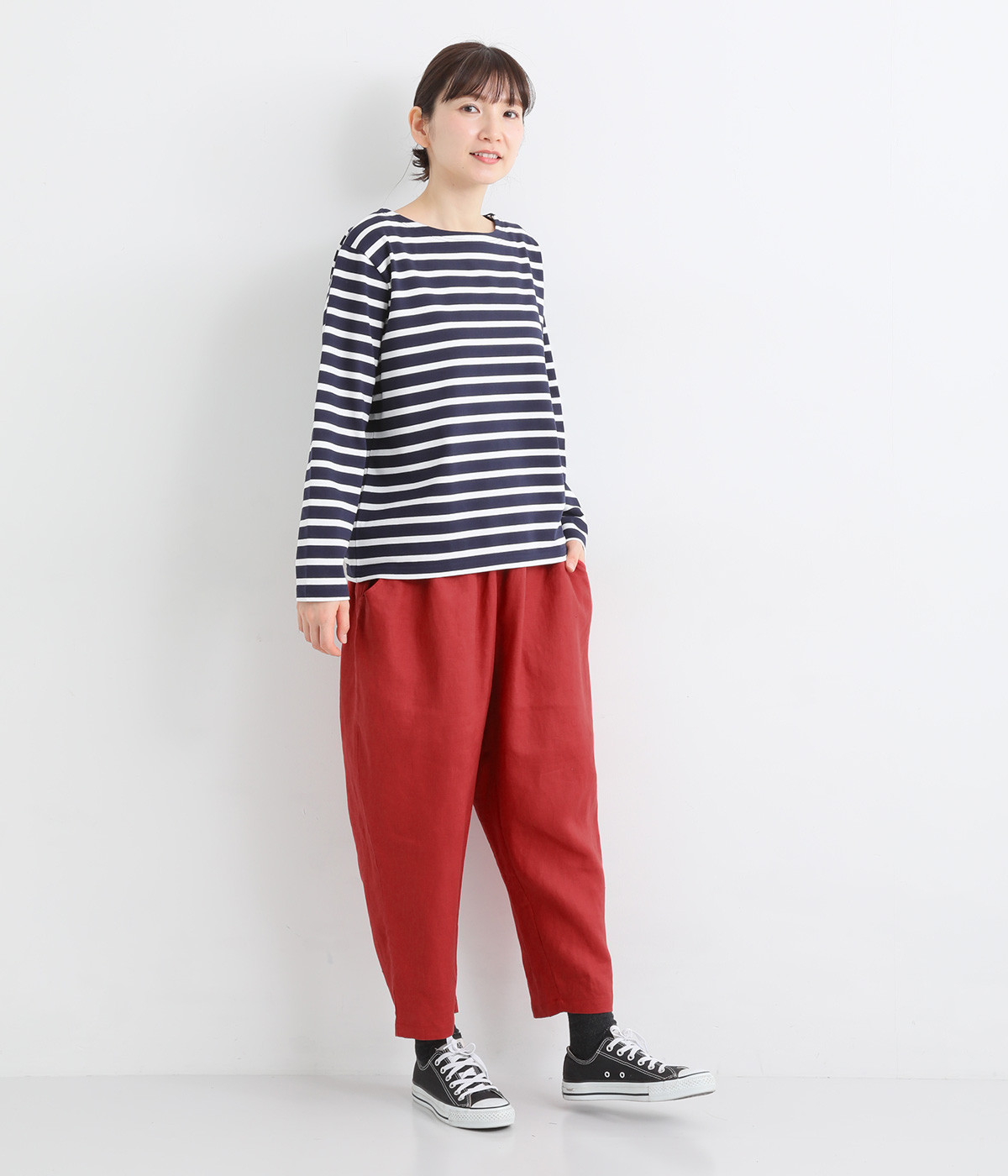 リネン特有のすとんとした落ち感で広がりすぎず、足さばきも快適。穿き心地が抜群で、つい毎日穿きたくなってしまいます。