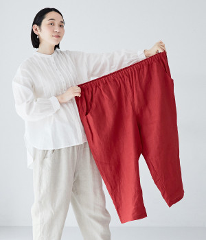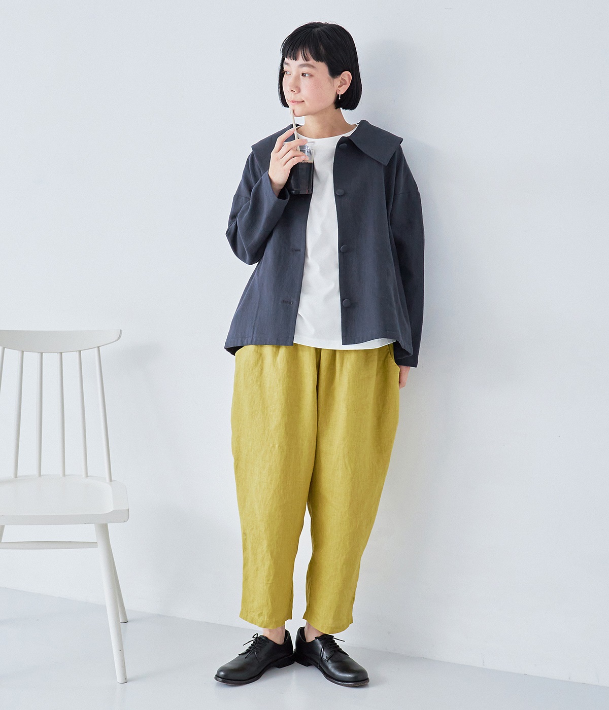 今シーズンは涼し気なダスティブルーが仲間入り。うだるような暑い夏を快適に過ごせる リネン100%のリラックスパンツを詳しくご紹介いたします。