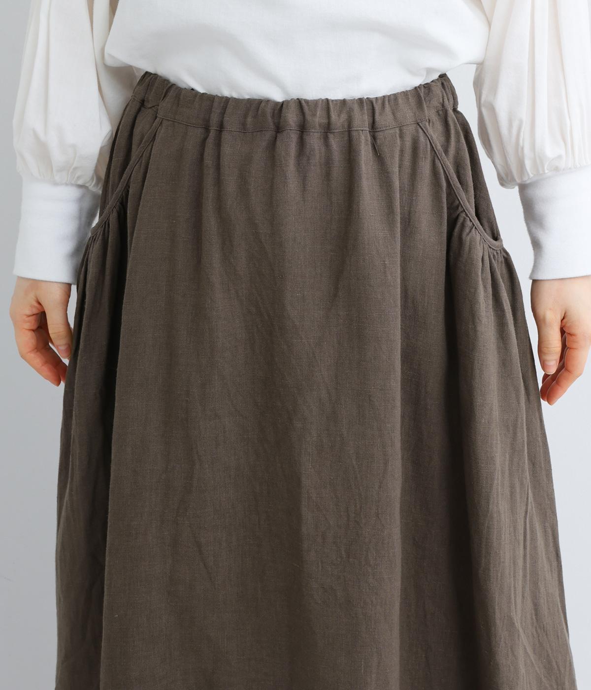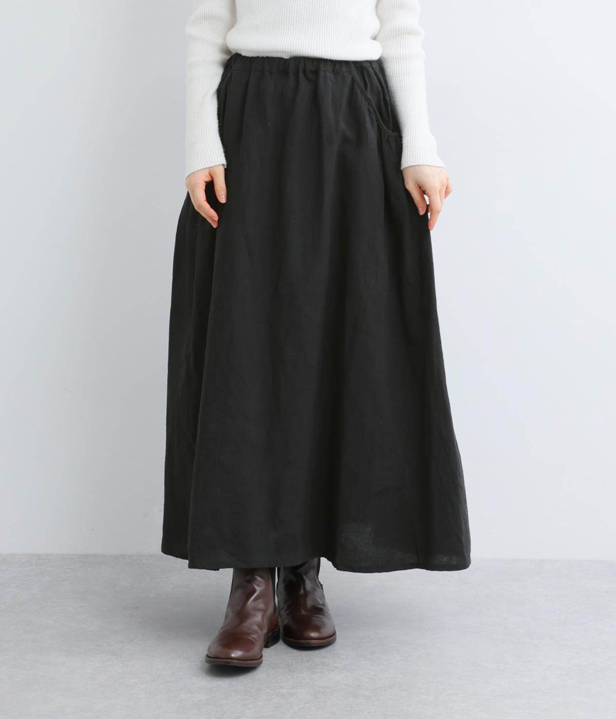 パイピングしたサイドポケットにギャザーをほどこしてニュアンスを持たせました。キレイめにもカジュアルにも着まわせる万能アイテムで、ロングシーズン楽しめます。ウエストは総ゴム使用で紐でサイズ調節が可能です。