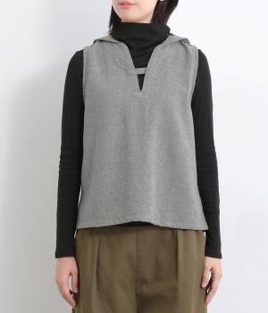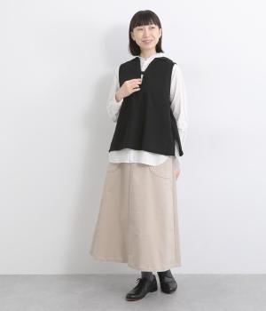セーラーカラーが特徴的なベストは、いつものスタイリングにプラスするだけで新鮮に見せてくれます。後ろタックで適度なゆとりを、前はキーネックで抜け感を設けました。サイドスリット入りでボトム合わせもすっきりと決まります。