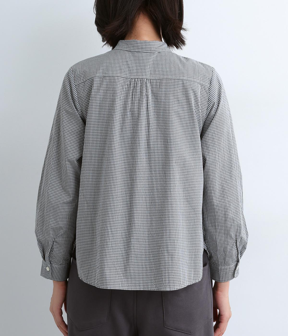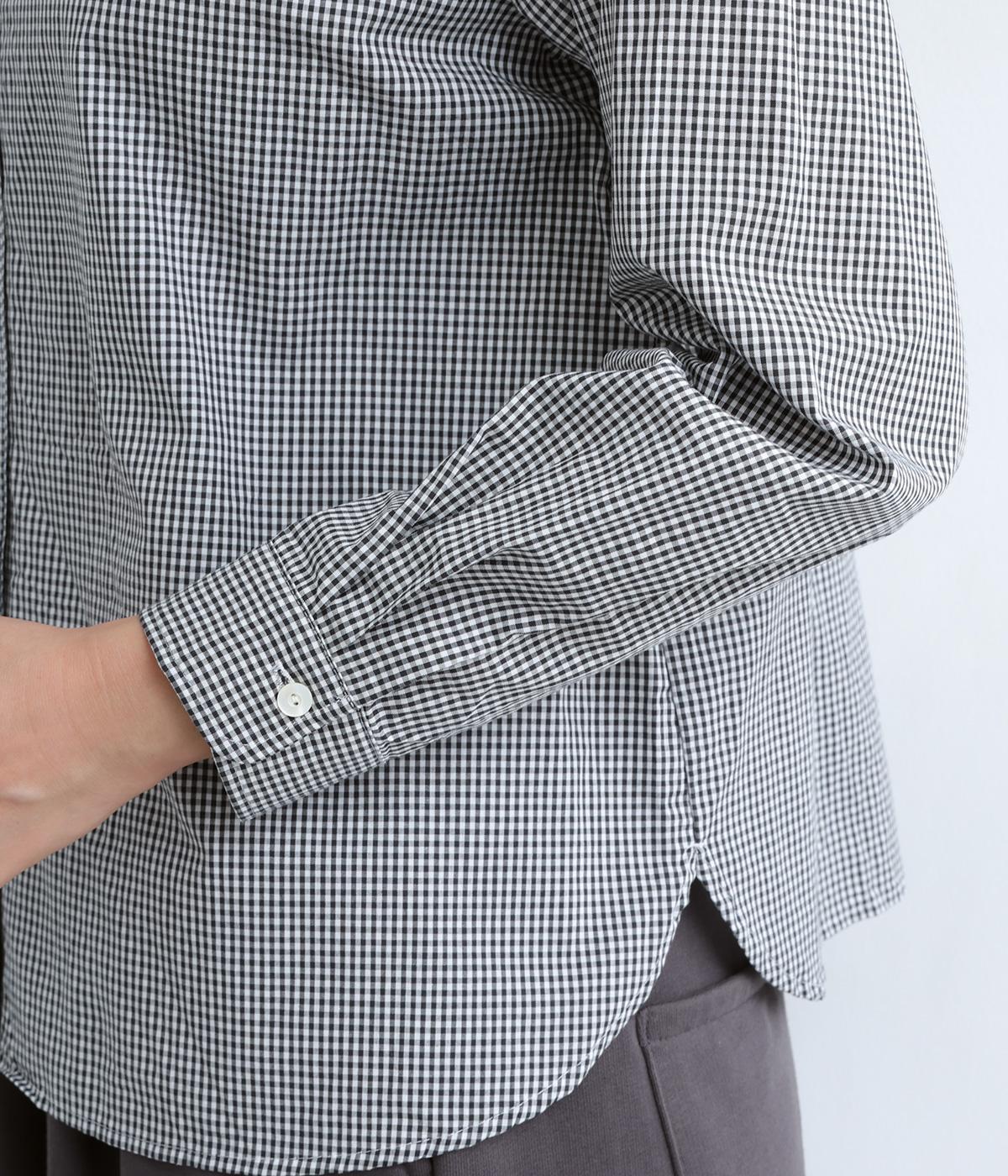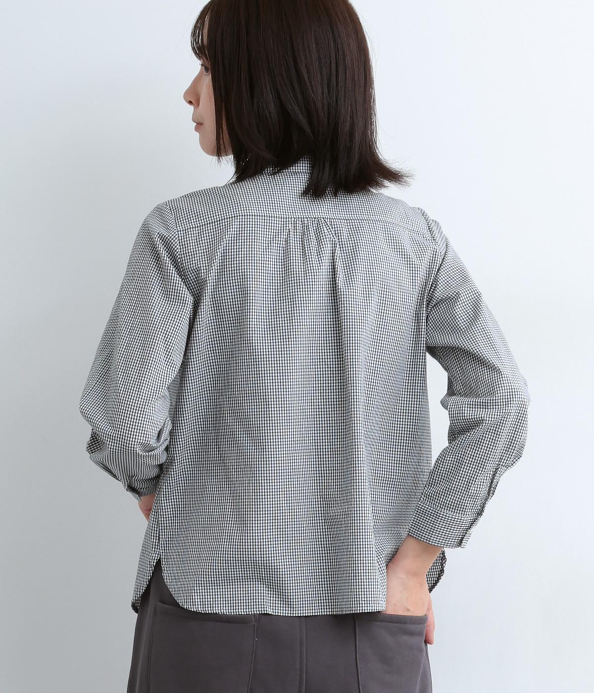 シンプルでタイムレスなデザインに小さい襟がかわいらしい印象を添えます。カジュアルながらもシックなギンガムチェックはデイリーに取り入れやすく、インナーにしてもアクセントになる一枚です。
