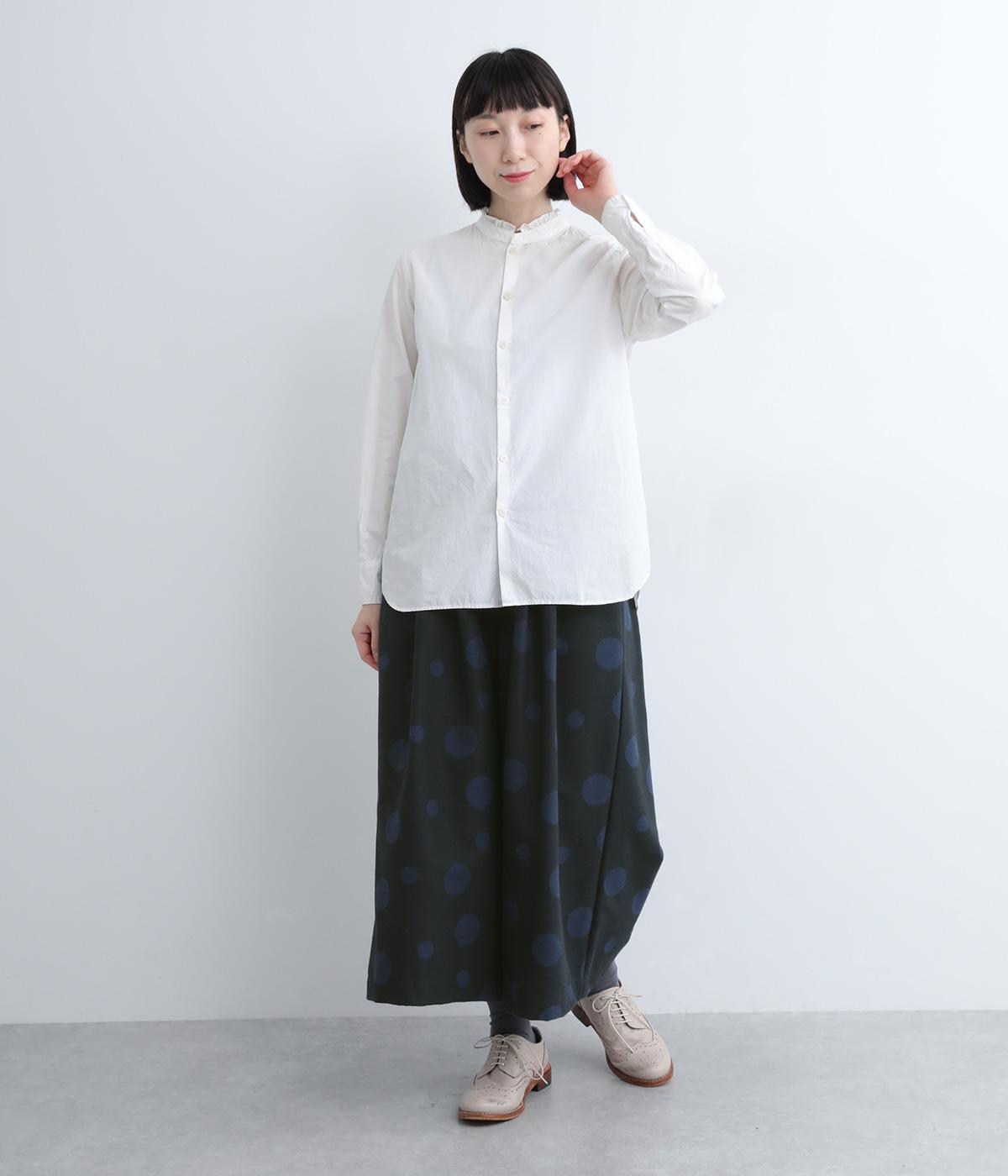 ランダムなドット柄を活かして、シンプルなワイドシルエットに仕立てたキュロットパンツ。足元をすっきり見せたバランスのいい丈感で着こなしやすくまとめました。ウエストは総ゴムのリラックス仕様。内紐でフィット感の微調整も可能です。