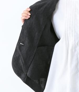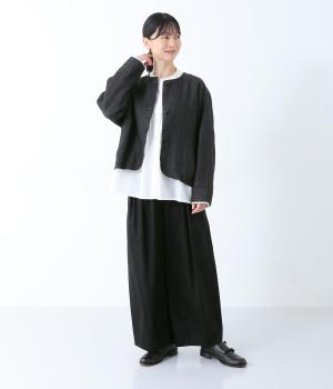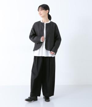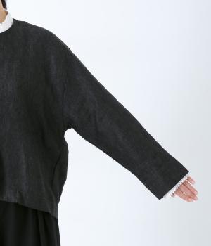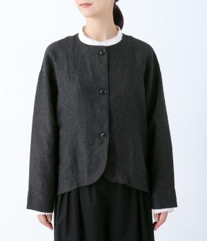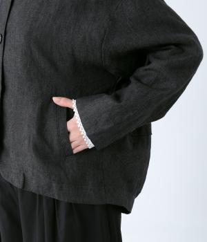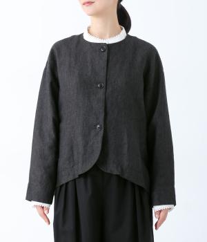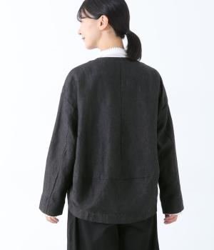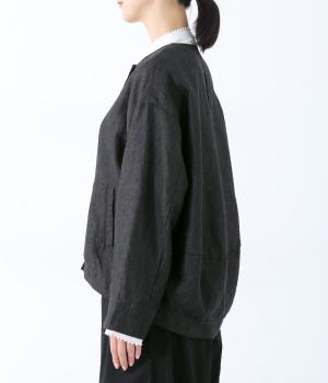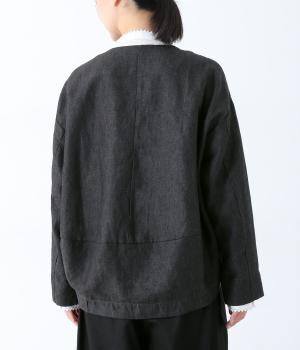 リネン太番手 切替コクーンジャケット(ダークグレー-F)