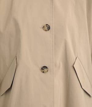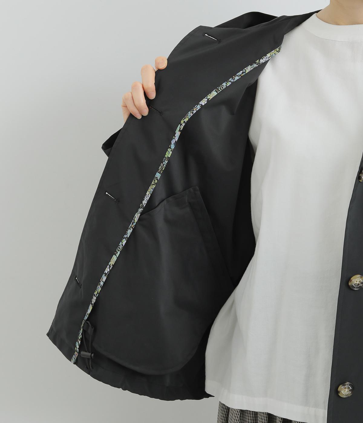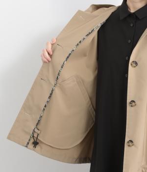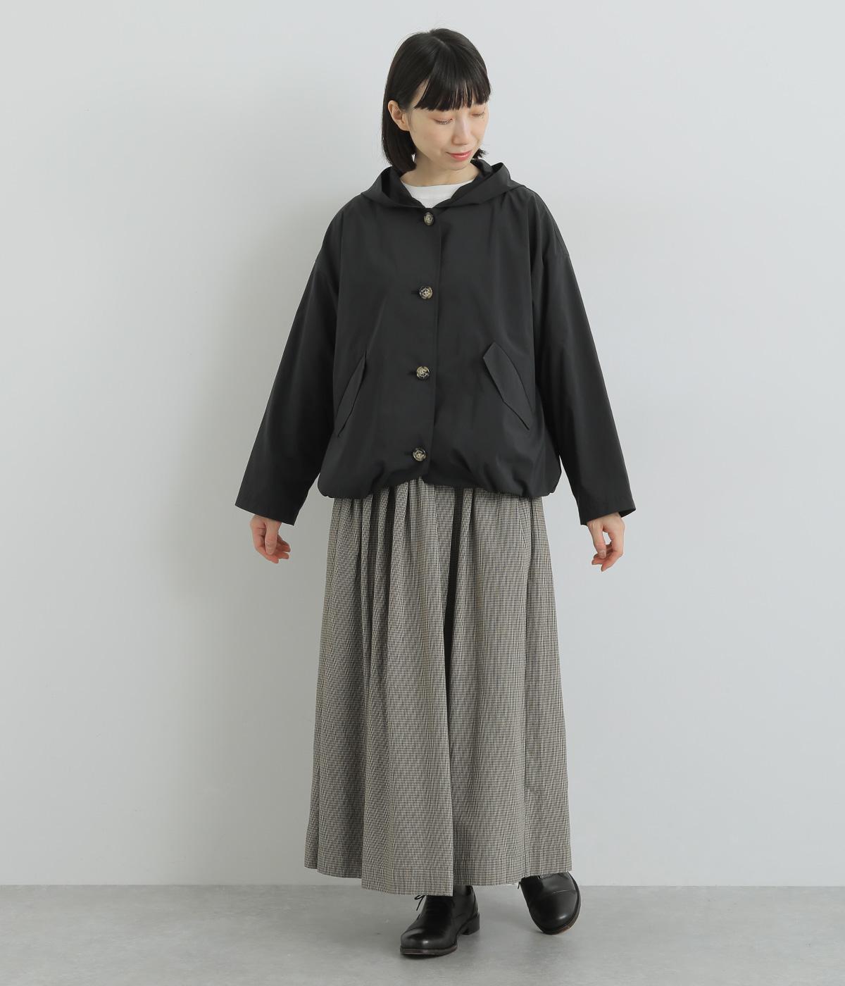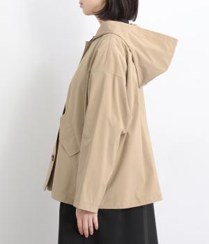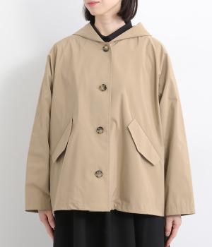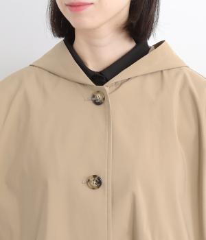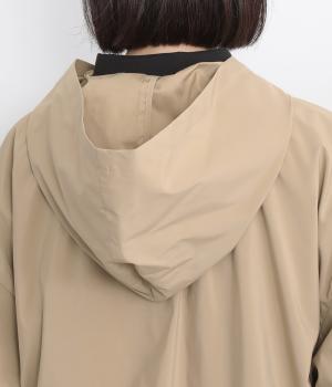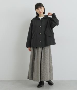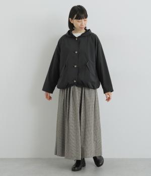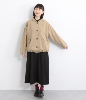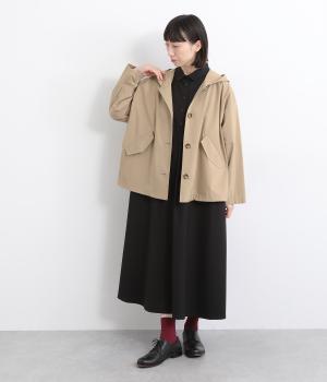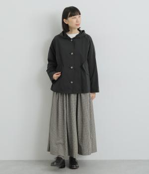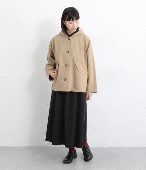 ミドル丈でラフに羽織りやすい、カジュアルテイストなフードつきコートです。ベーシックなボックスシルエットは、裾コードでアレンジもたのしめます。前中心や袖の折り返し部分にリバティ生地のトリミングを配し、ちらりとのぞいたときのポイントに。