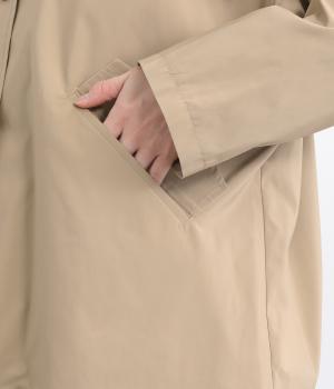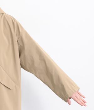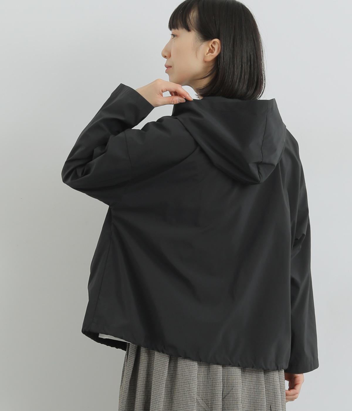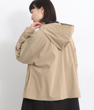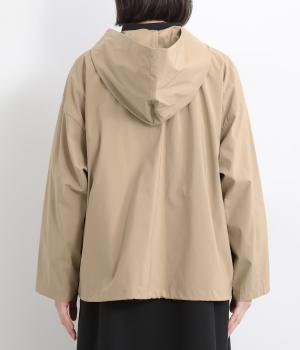 なめらかな表面感が特徴的なポリエステル×ナイロンのタフな混紡素材を使用しています。シャリ感のある薄手素材に撥水加工をほどこしているのでアクティブなシーンにも活躍。軽量もうれしいポイントです。