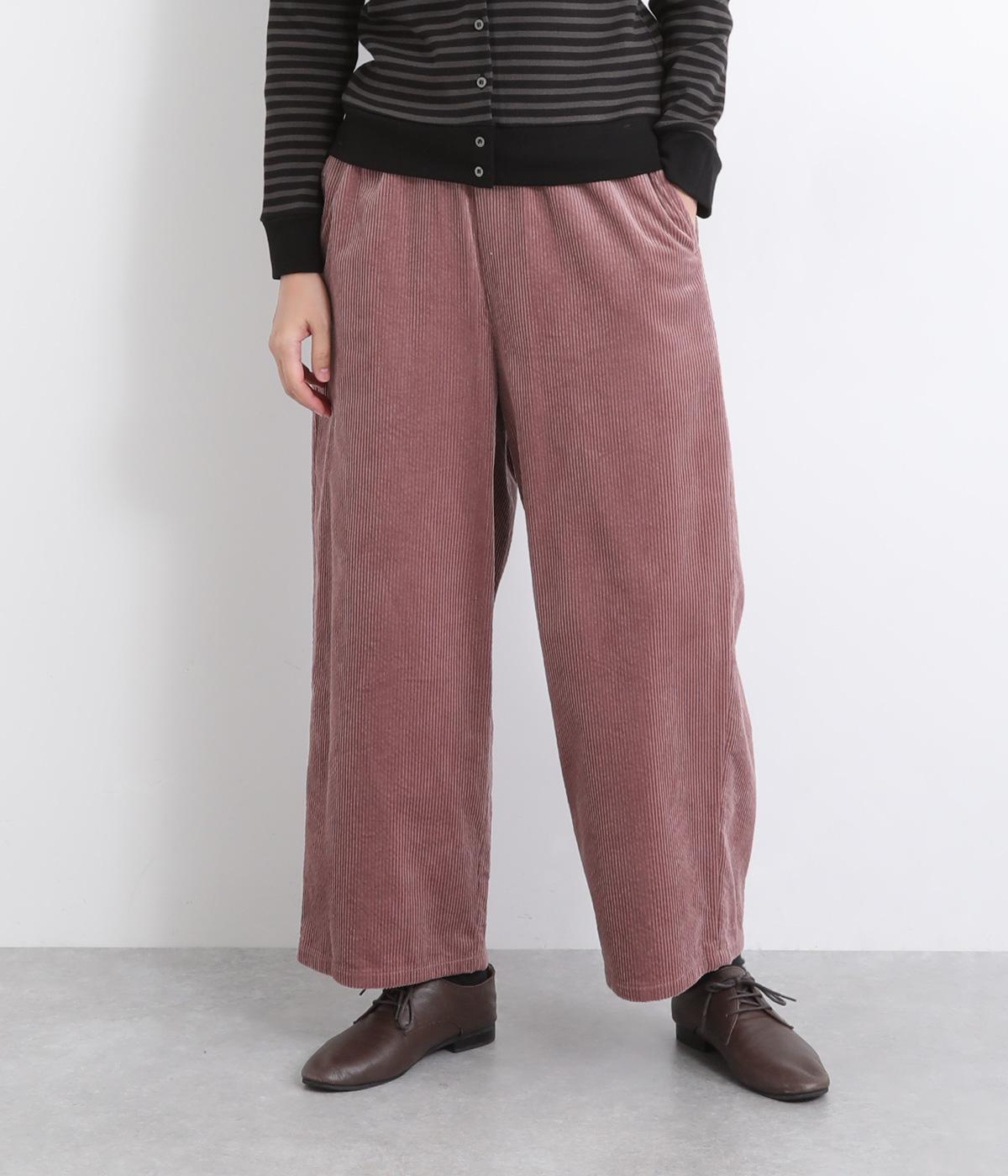 ウエスト総ゴムに内紐入りのイージーパンツは、雰囲気のいいコール天生地でお洒落アイテムにアップデート。適度なゆとりにすっきりとしたシルエットではきやすく、合わせるトップスに困りません。大きめのヒップポケットもカジュアルなワンポイント。