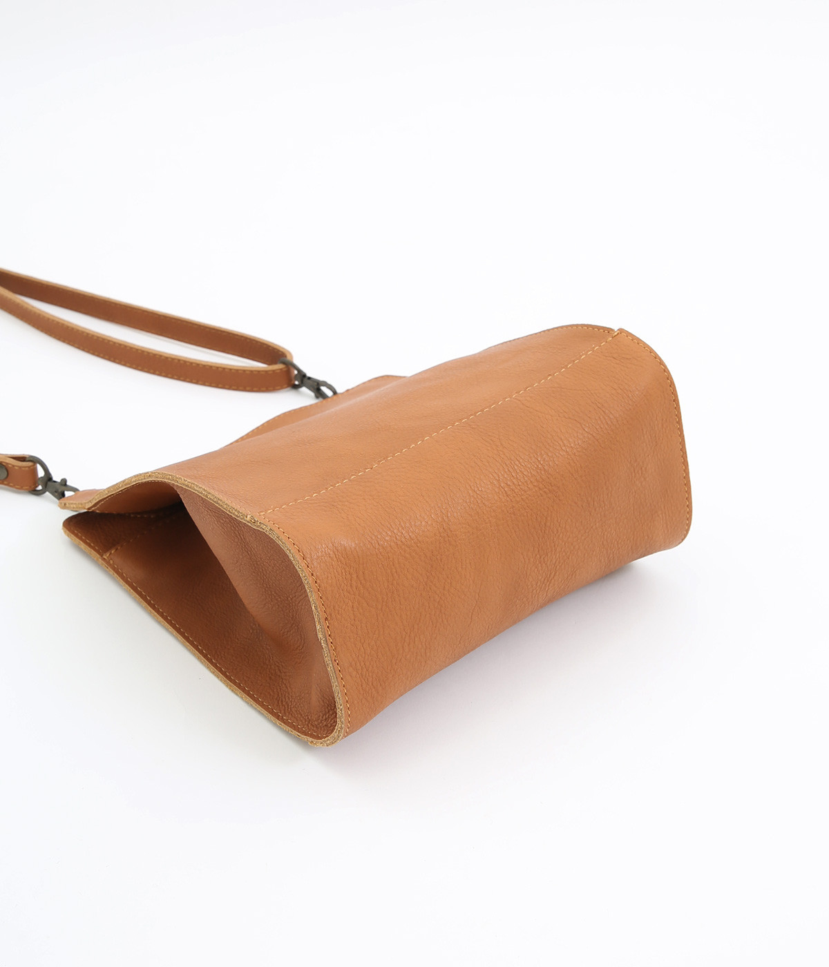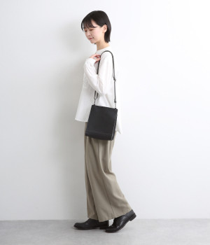 紙袋のような直線シルエットが美しいデザインのバッグ。開口部はマグネットで開閉できる仕様です。お財布やスマートフォン、ポーチなど普段使いに便利なサイズ感。適度なマチがあるので物が綺麗に納められます。内側には小物類の収納に便利なポケット付きです。