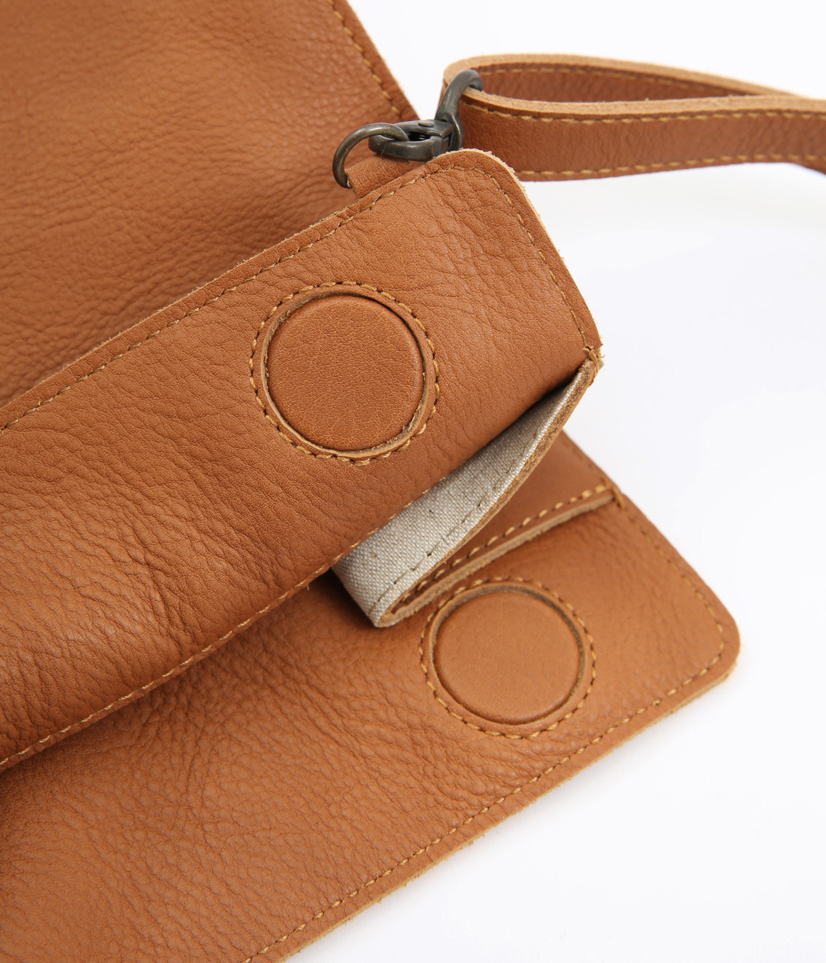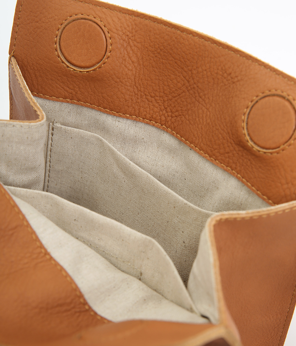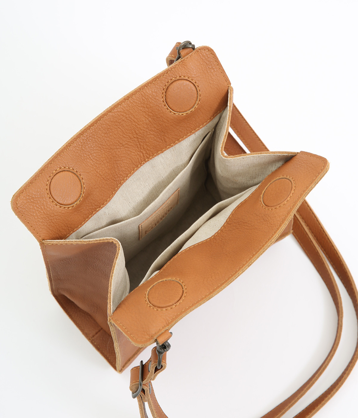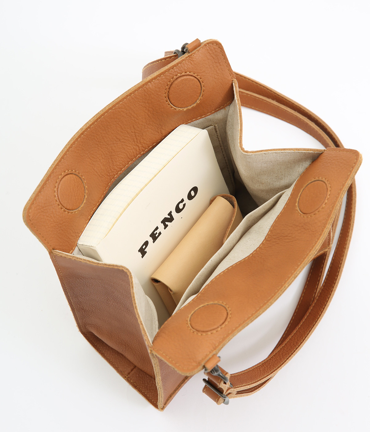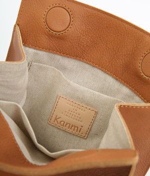 表地は牛革を使用しています。リアルレザーならではの風合いがあり、経年変化や使い込むほどに増していく味わいも魅力です。バッグ内部にはコットンリネンの裏地付きです。