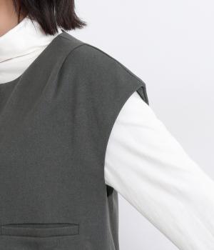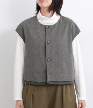 その日のコーディネートに合わせて無地もチェック柄もたのしめるリバーシブルベストです。肩はあえて落とすことできちんとした印象を和らげ、デイリー使いしやすく仕立てました。大きめボタンもレトロ&クラシカルな雰囲気です。