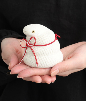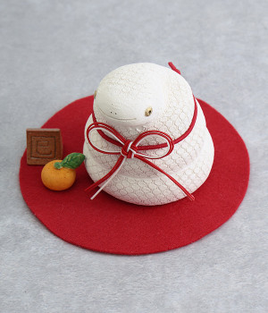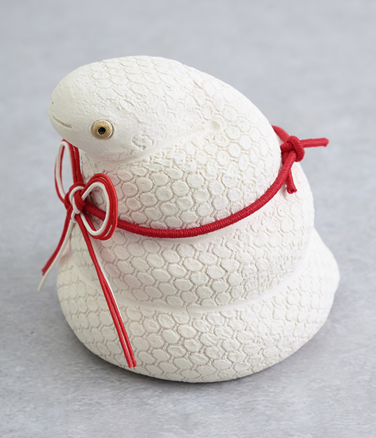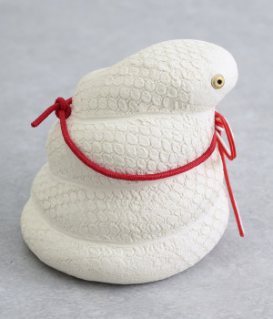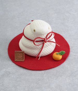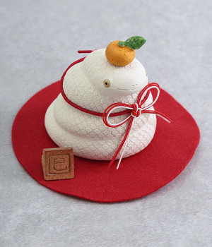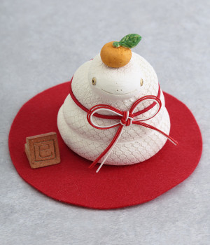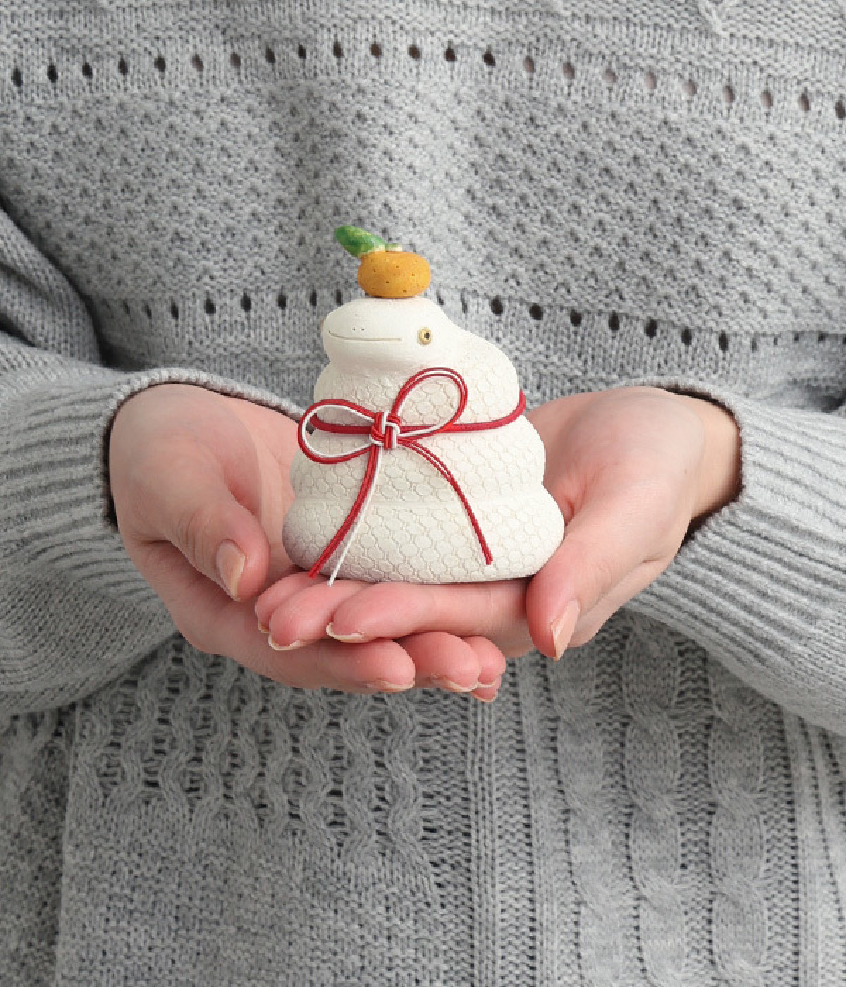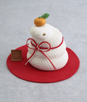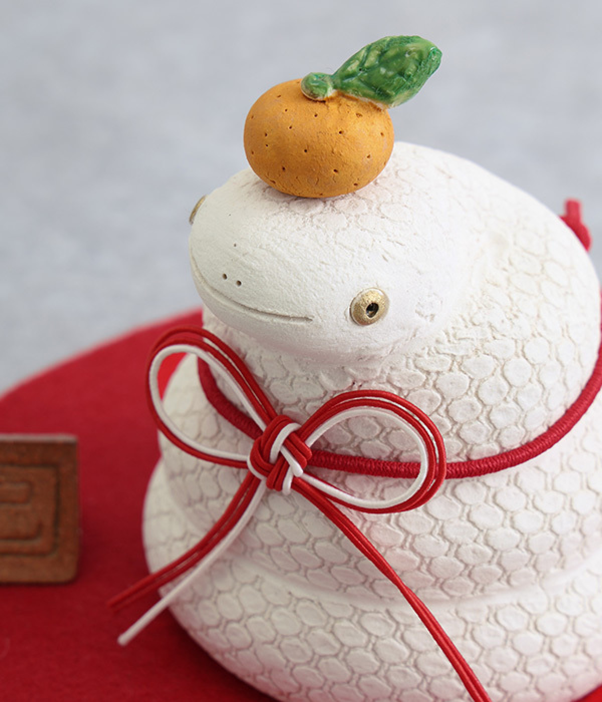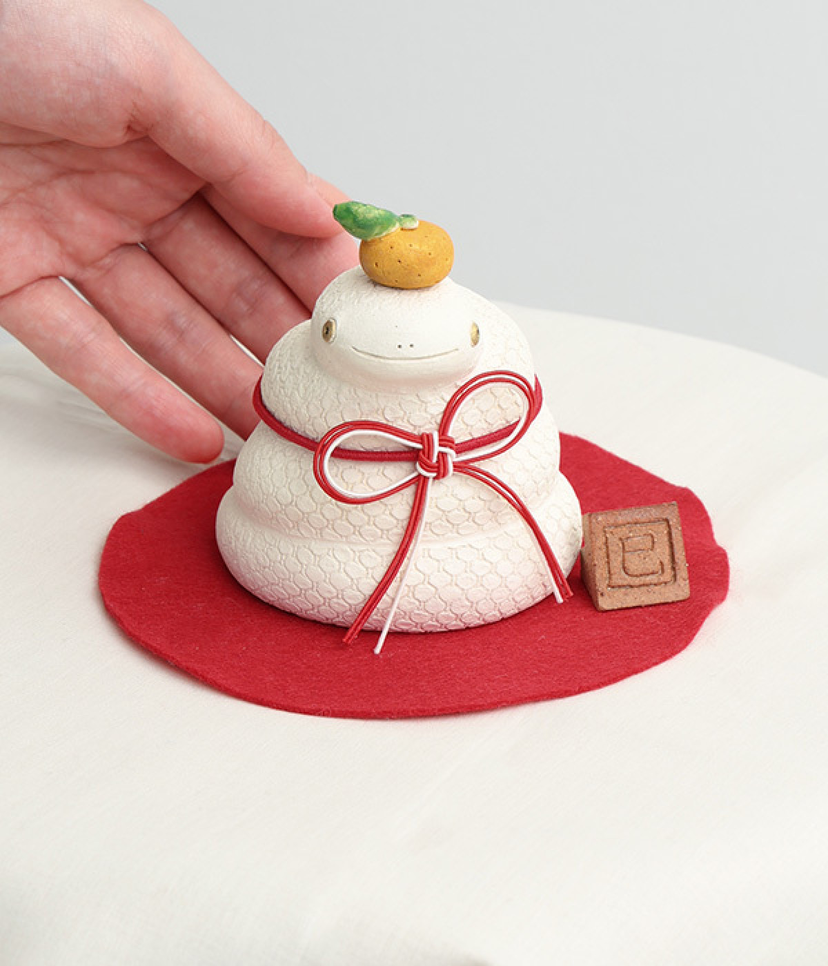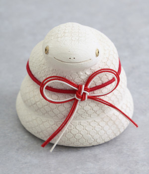 にっこり笑顔を浮かべる鏡餅のようなヘビが愛嬌たっぷり