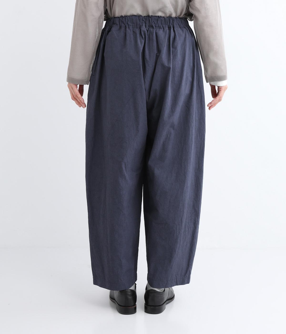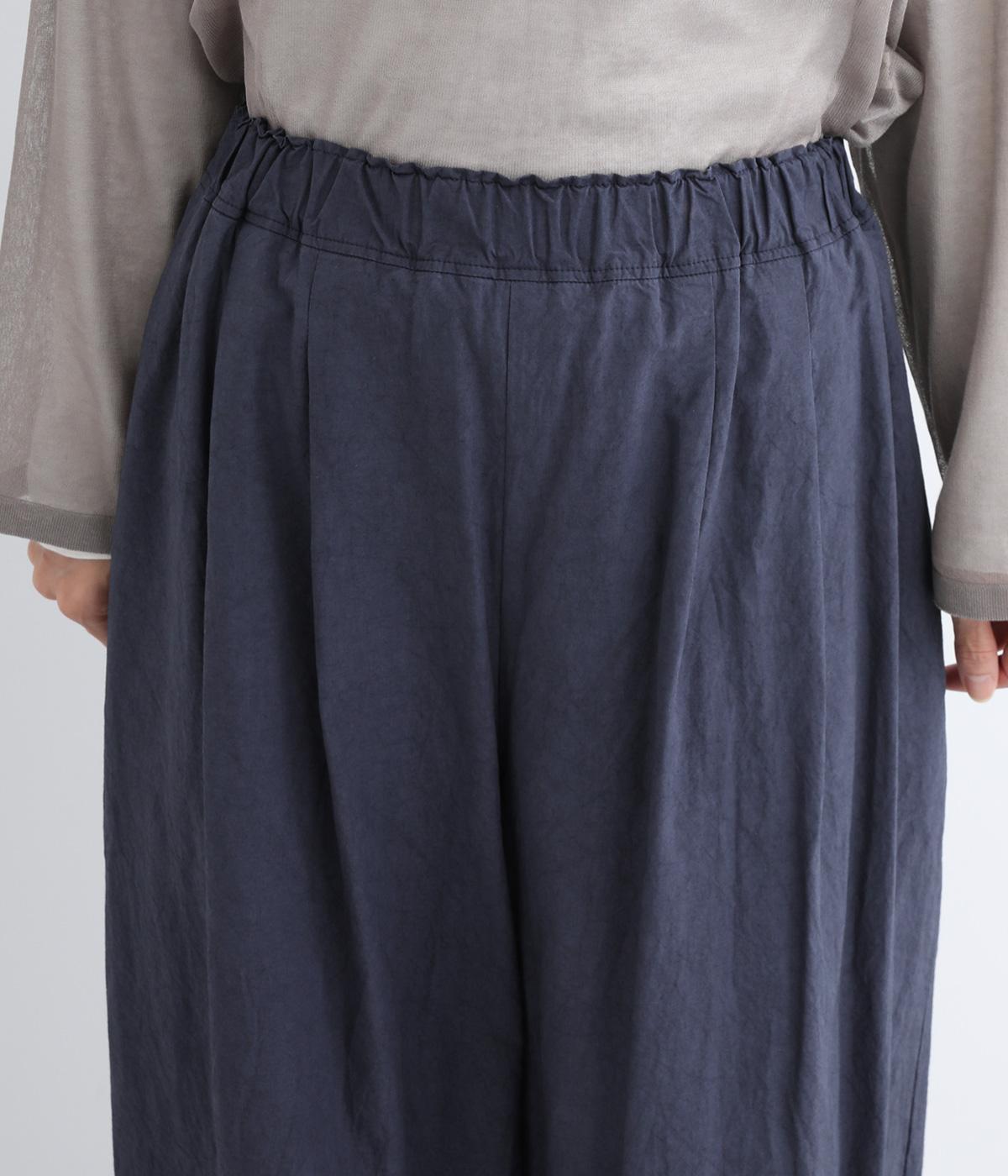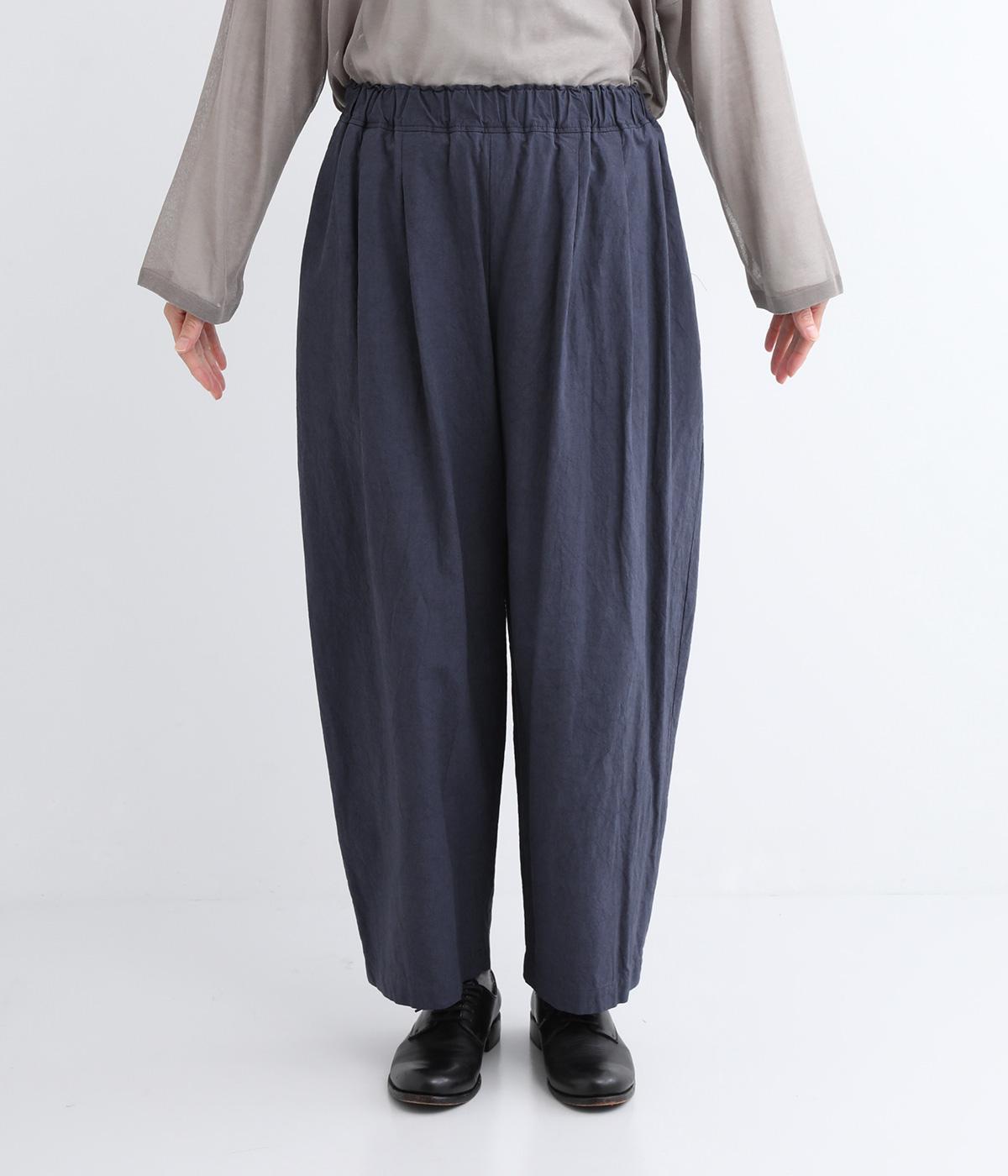 ウエストにタックをとり股上深めのゆったりとしたシルエットに仕上げたテーパードパンツ。裾に向かってきゅっと細くし、全体のバランスをすっきりと整えています。とても軽い生地感が足さばきのよさをアップ。ウエストはお腹まわりにやさしくフィットする総ゴム仕様です。
