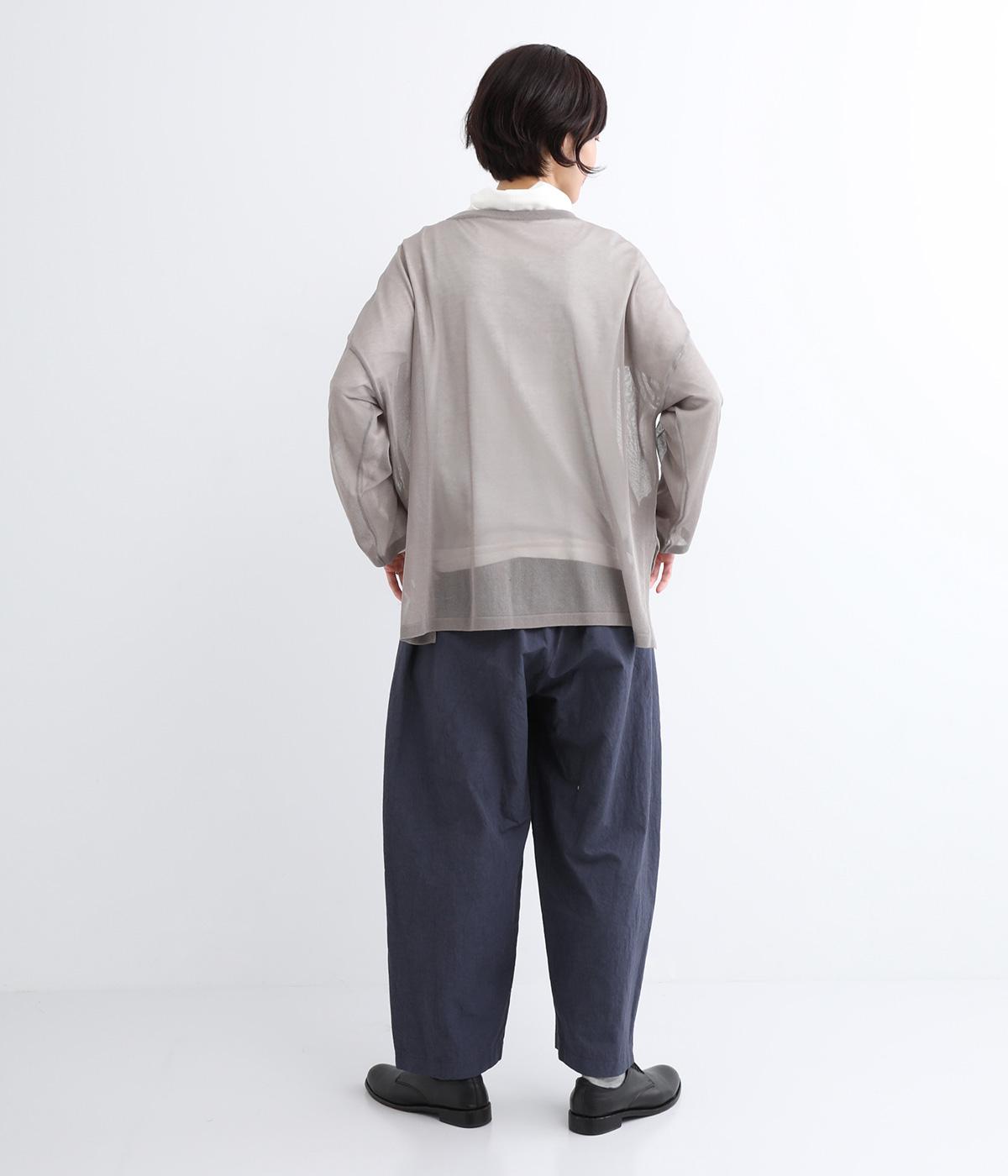適度なハリ感がありながらも柔らかな風合いを持つ目の詰まったコットンリネン生地。洗いざらしのようなシワのある風合いが着こなしにこなれ感を与えてくれます。