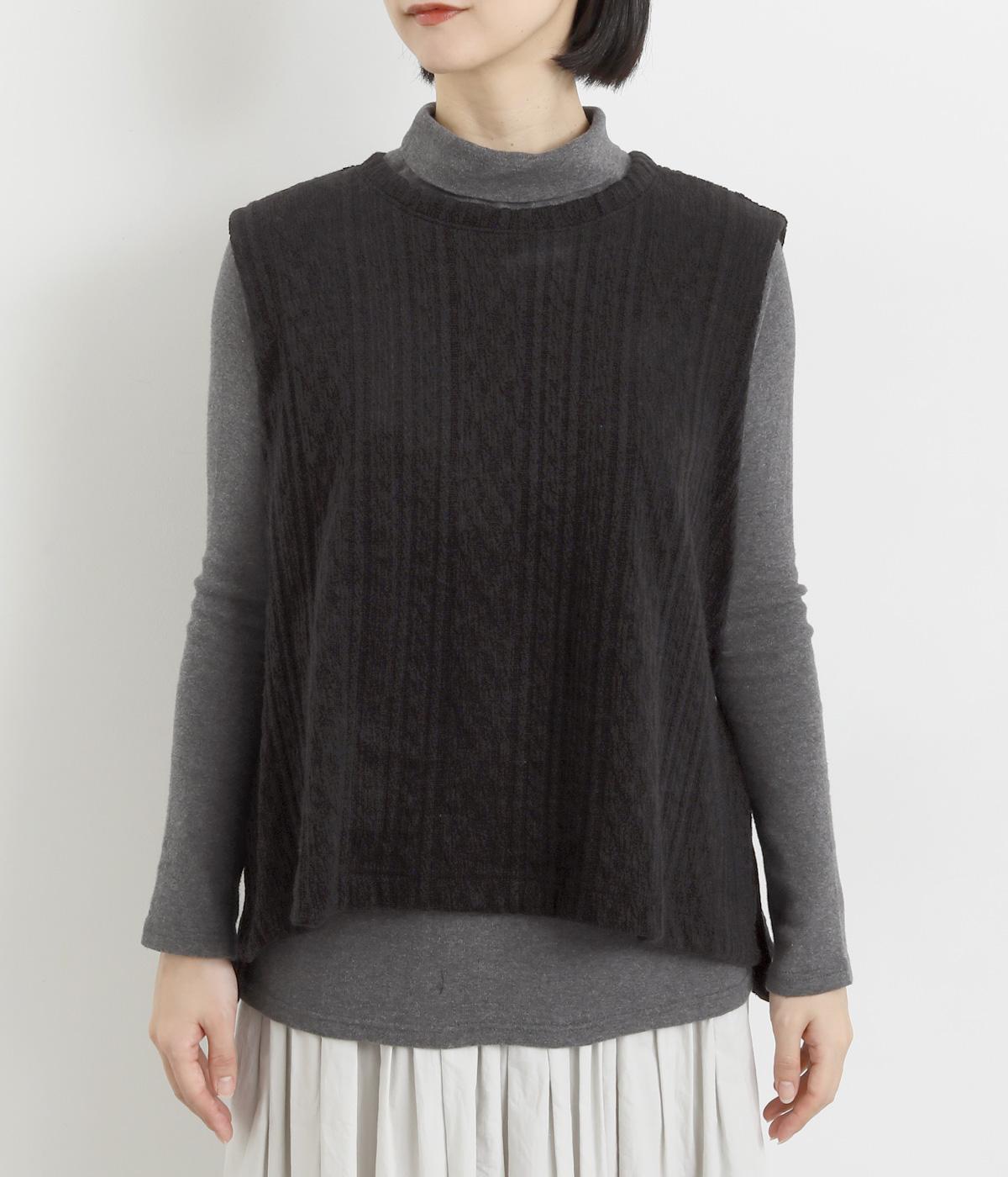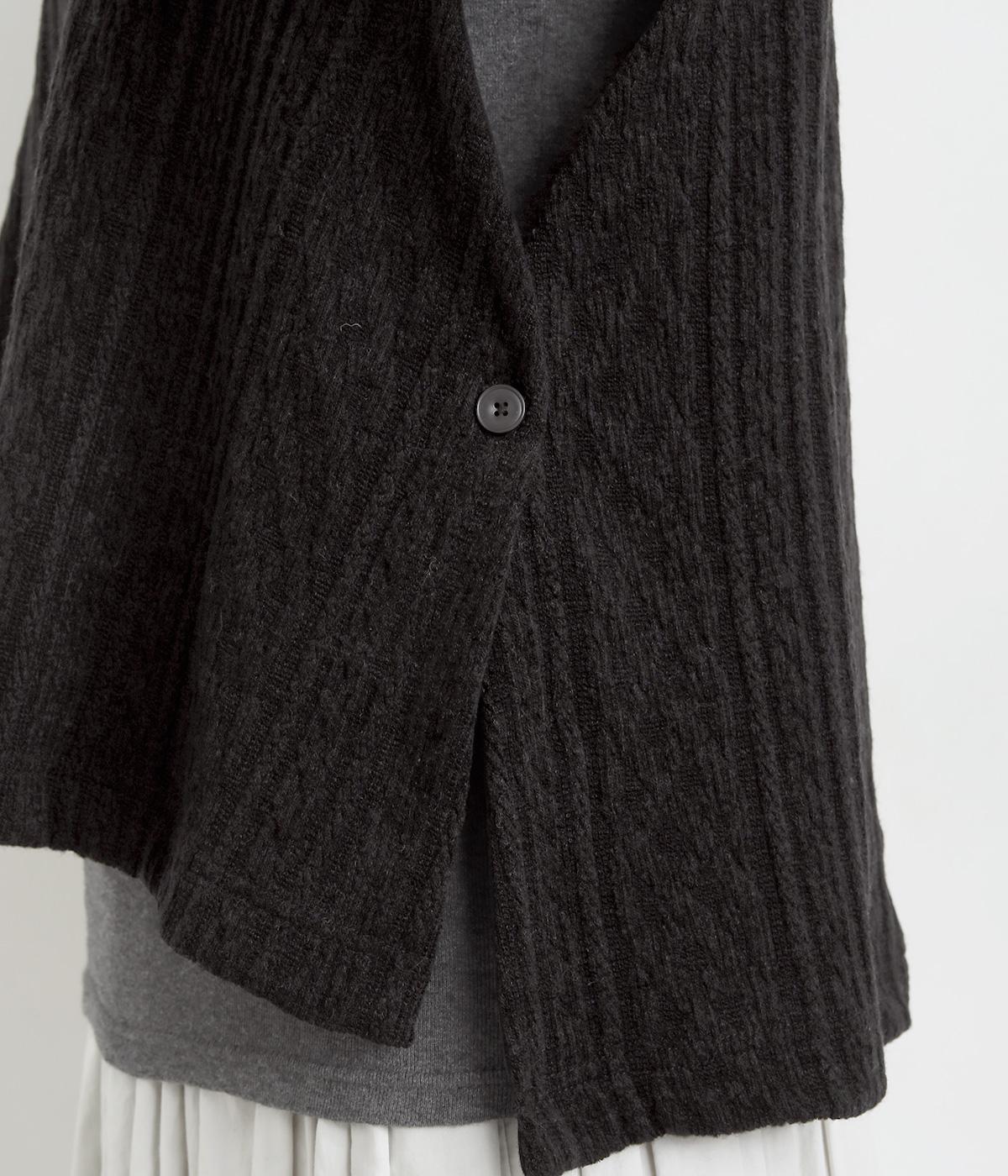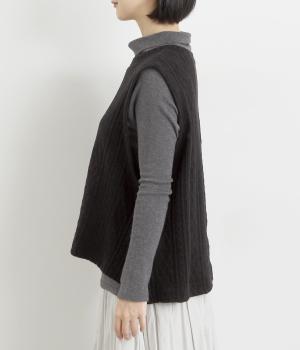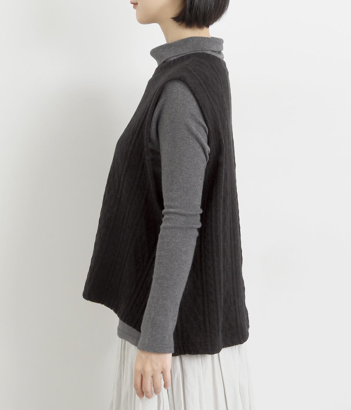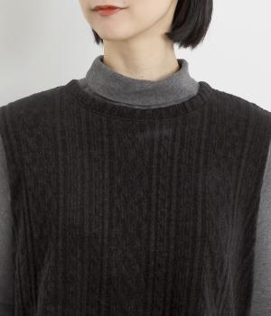 サイドにボタンをあしらい、スタイリングに合わせてあけ閉めできるベストです。ケーブル柄編みでさり気なく表情をつけつつ、アイテム合わせしやすいデザインに。アームホールも広く、ボリュームトップスとも好相性。