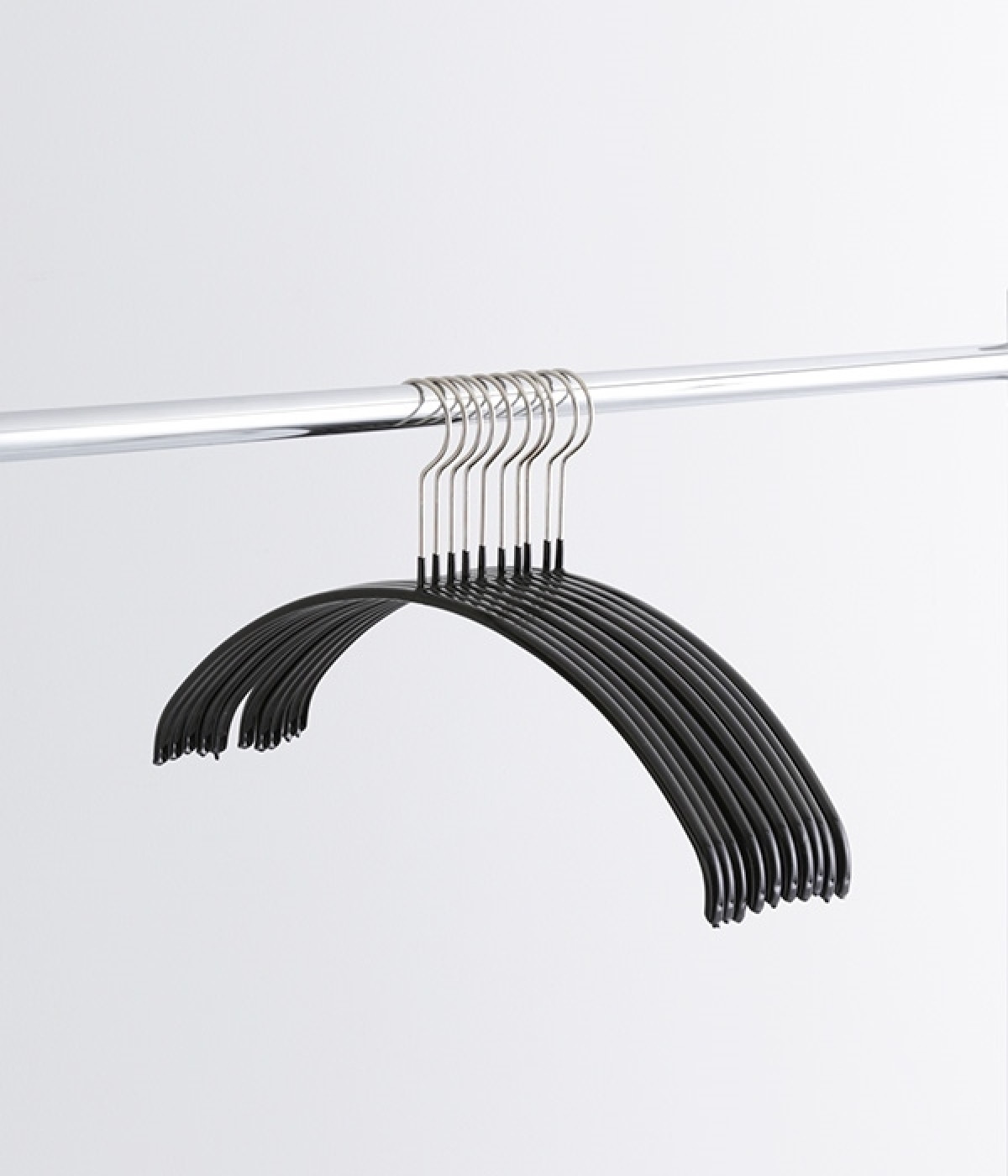 エコノミックは肩の出っ張りの無いデザインが特徴。肩先の緩やかなカーブは衣類を引っ張ることなく生地を傷めません。ノンスリップコーティングがハンガー全体で衣類をしっかりキャッチするので、カーディガンやニットも型崩れなく収納できます。掛けた衣類がすべり落ちることもありません。襟のない丸首のシャツやブラウス、前開きのカーディガンなどに適しています。40cmのこのサイズは、インナーからシャツ・ブラウス、ジャケットまで幅広く使える万能タイプ。厚さわずか1cmとスリムなデザインなので、クローゼットにたくさん掛けられます。