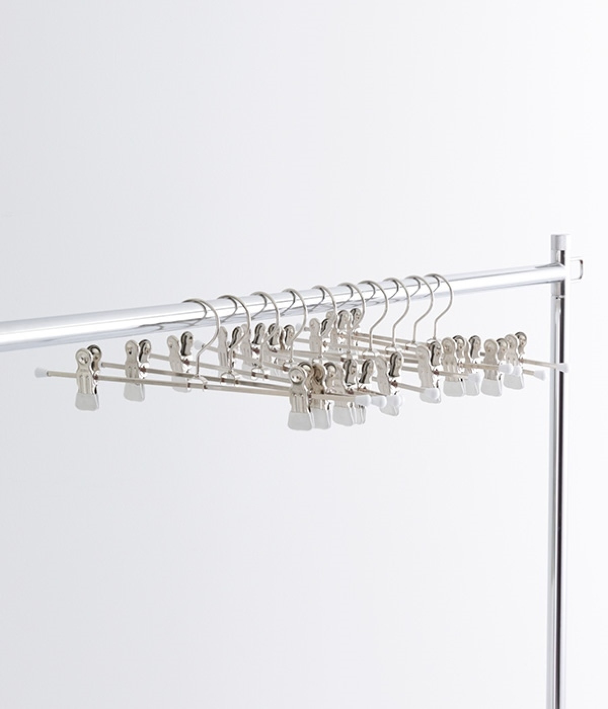 スカートやズボンをクリップするのはもちろん、マフラーやスカーフ、水着やインナー小物類にも適しています。タオルや布巾をクリップすればキッチン周りでも大活躍です。二つのクリップは左右に動くので、用途に合わせて適当な間隔にセットしてください。クリップの先端はもちろん、マワの特殊コーティングがされています。挟んだものが滑り落ちることはありませんし、挟み皺が付くこともありません。スリムで用途自在のクリップは、たくさん持ってればいるほどいろんな場面で役に立ってくれます。