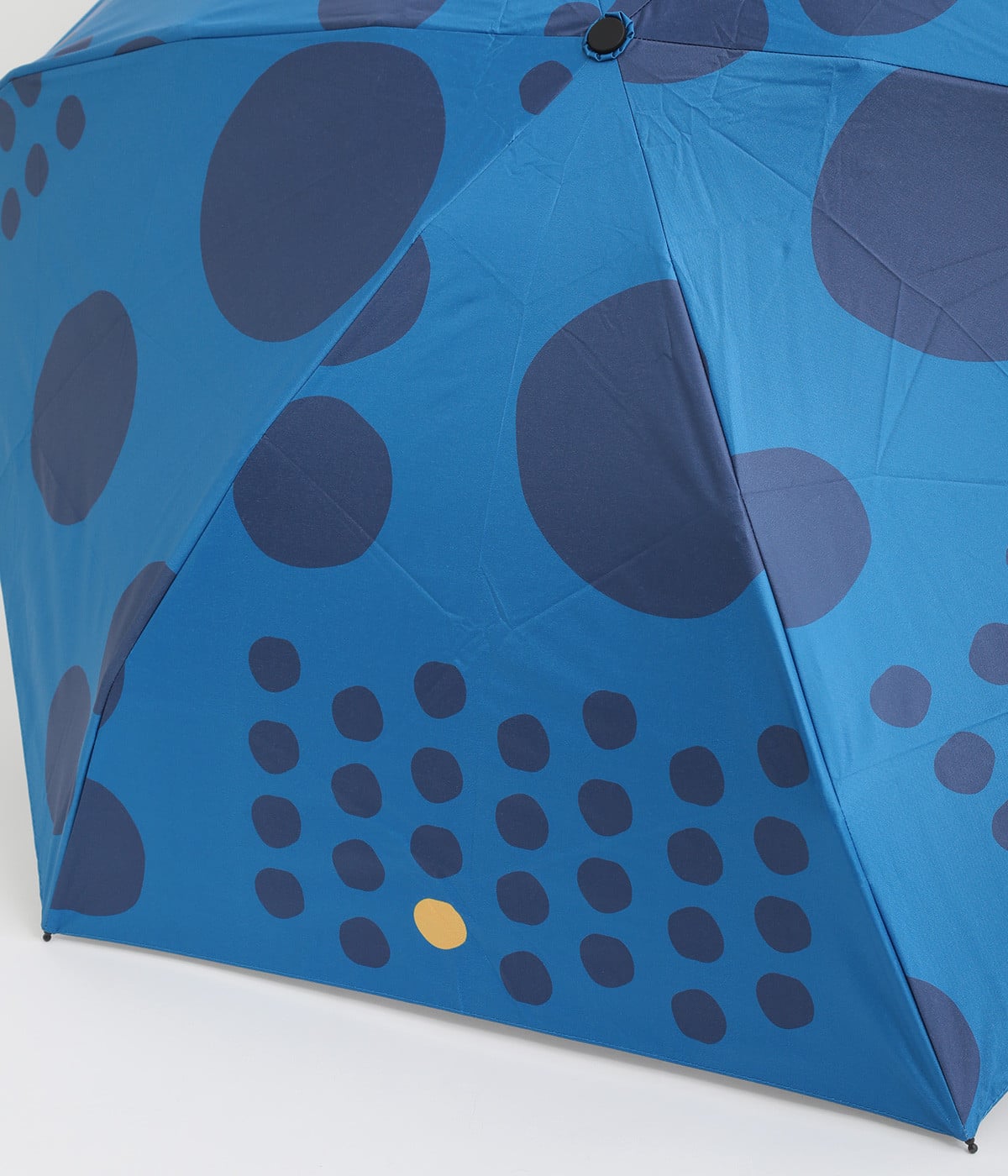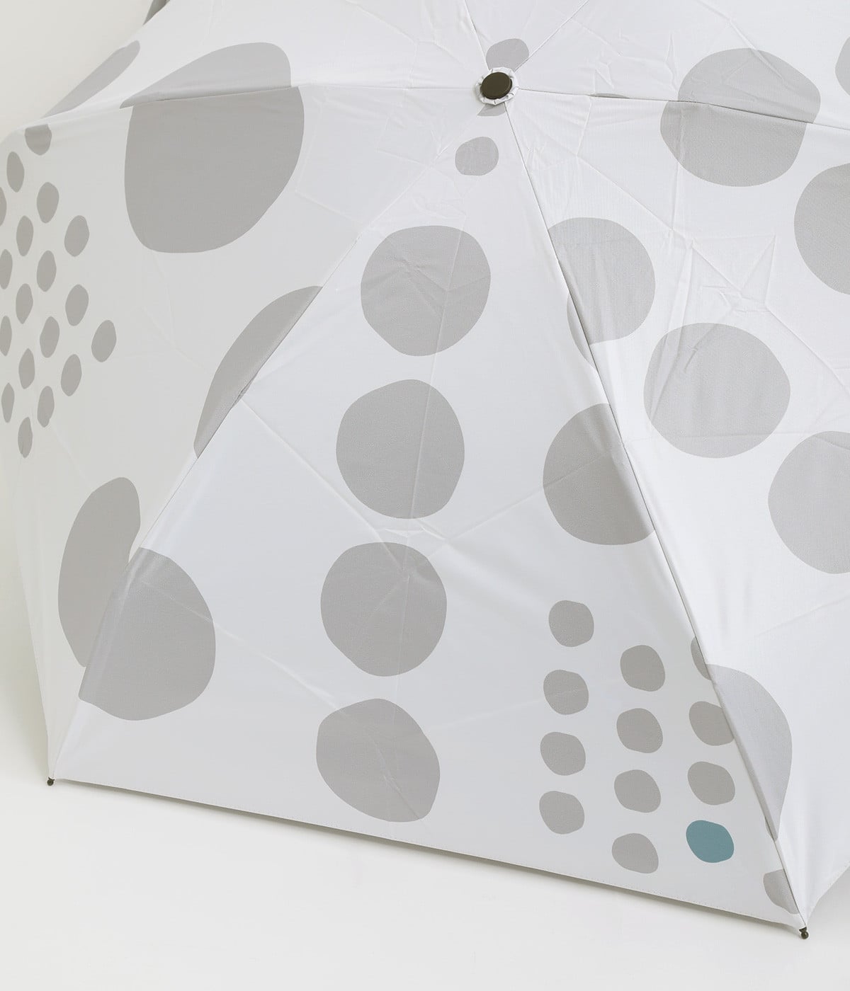 アクセントカラーを用いたドットのテキスタイルがこだわりの晴雨兼用折りたたみ傘。コンパクトに折り畳めて、収納しやすい袋つきで持ち運びにも最適です。コロンとした持ち手が可愛らしく、軽量仕上げで持ちやすくなっています。