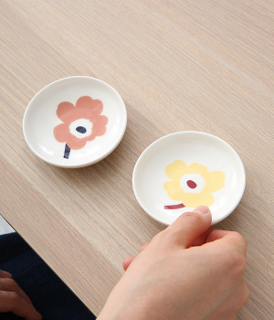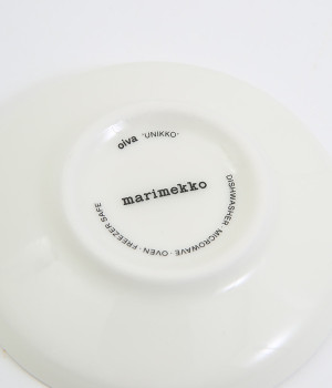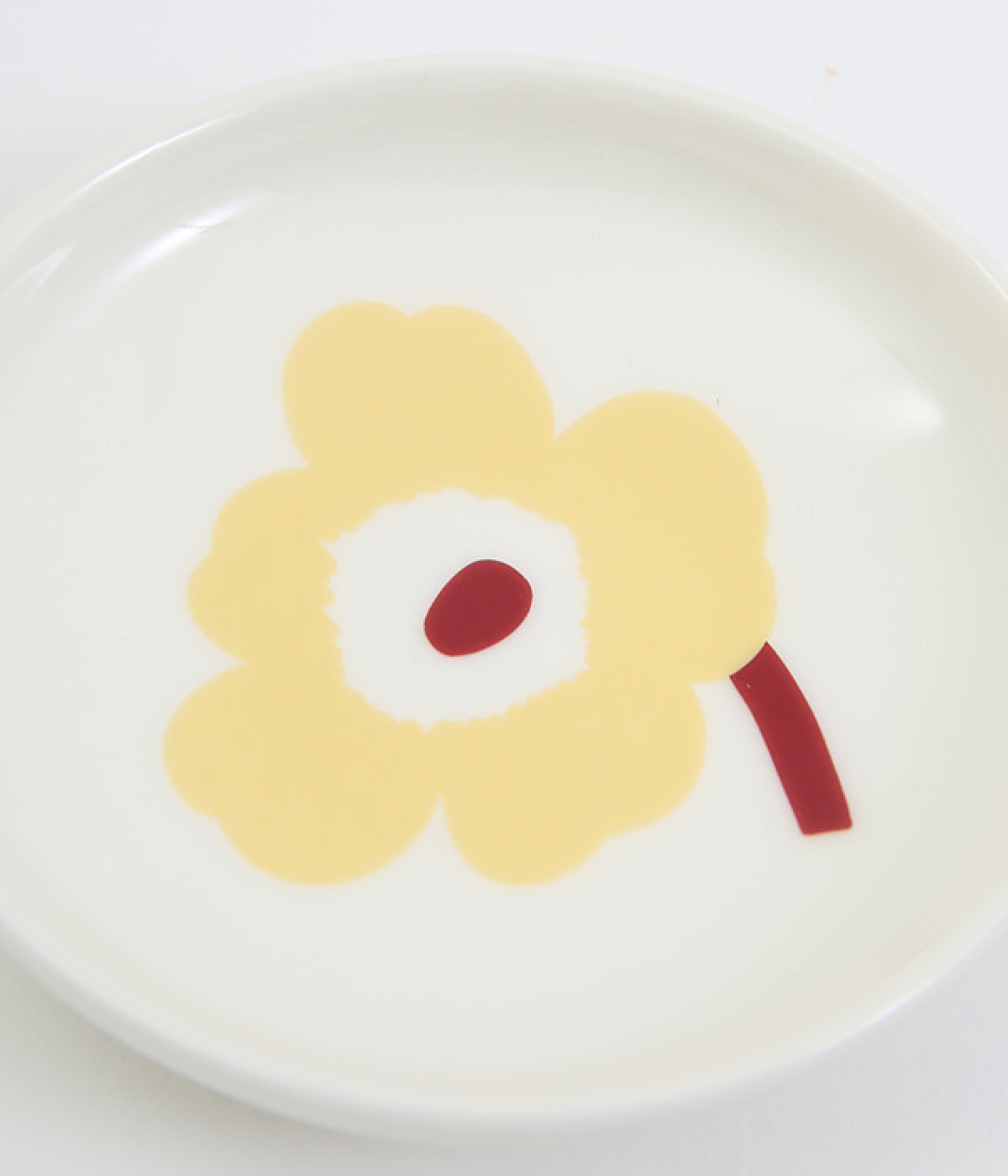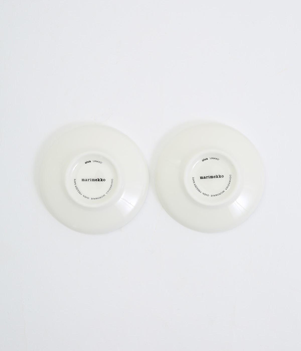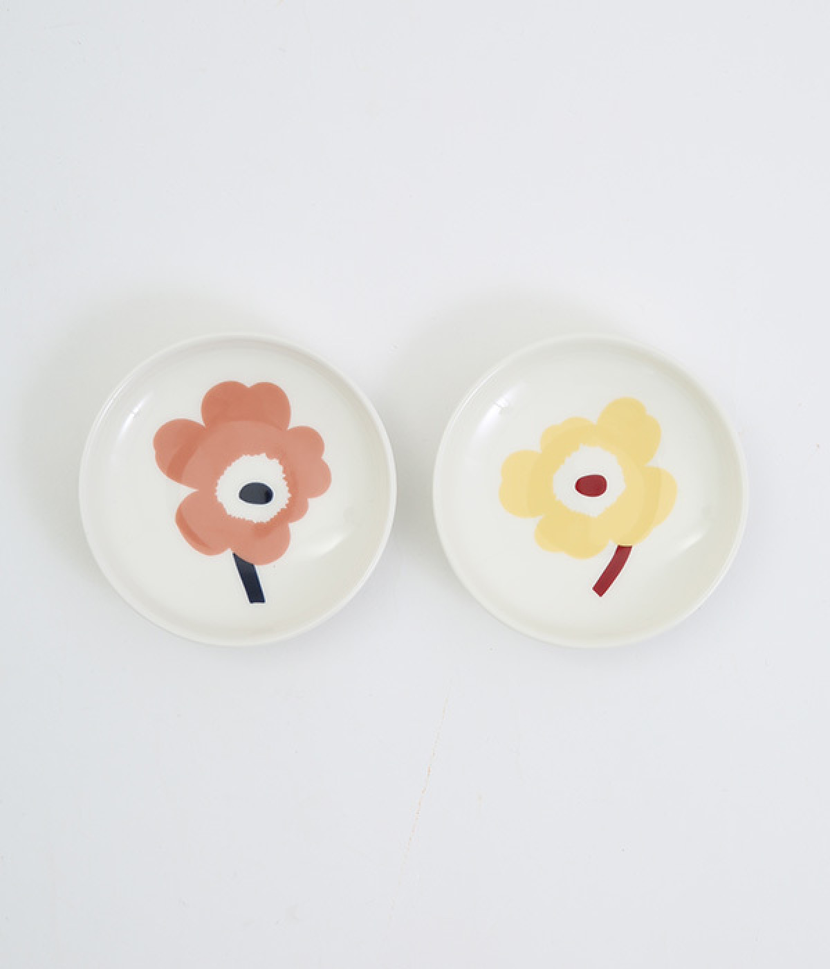 マリメッコを代表するウニッコ柄のプレート2点セット。北欧ブランドらしいやわらかな色合いに心も和みます。お茶タイムに添えるちょっとしたお菓子やデザート用に、またはおかずをちょこんと乗せる豆皿としても重宝するコンパクトなサイズ感。少し立ち上がった縁のおかげで、食べ物をしっかり受け止めてくれる使い勝手のよさも魅力です。愛らしい柄を活かし、インテリアとして飾ったり小物置きにしたりと、さまざまな使い方が楽しめます。