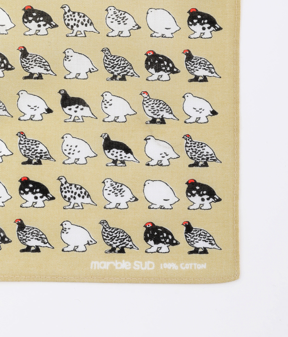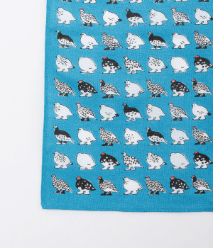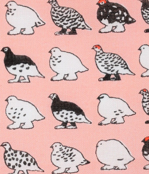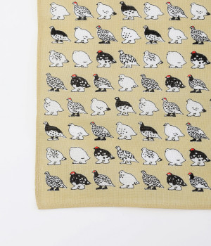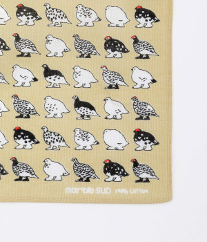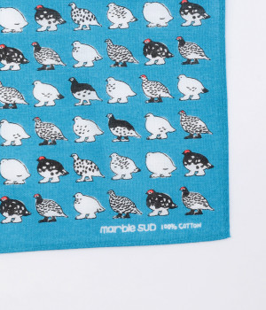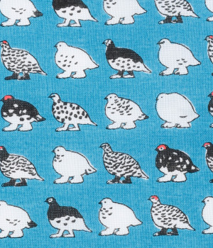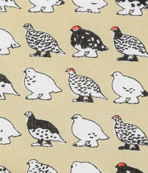 夏は褐色、冬は純白と、季節によって羽毛の色が変化するライチョウがモチーフ