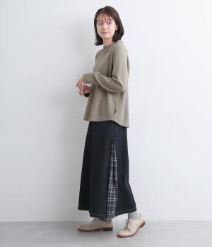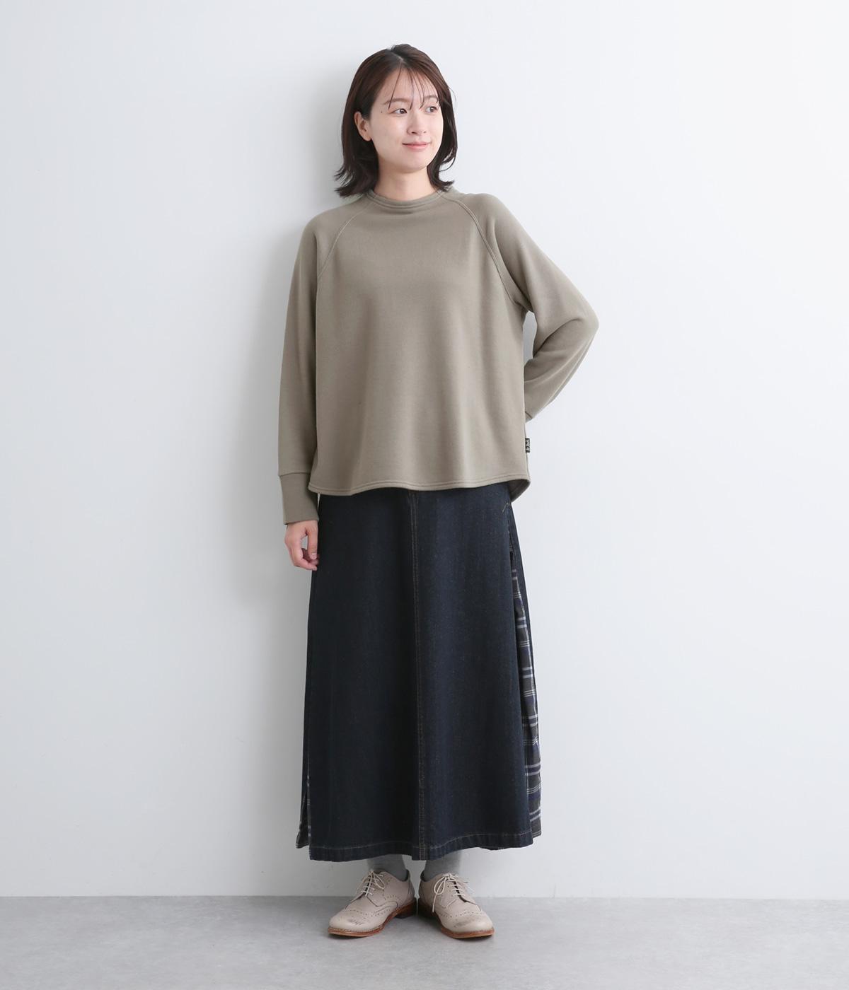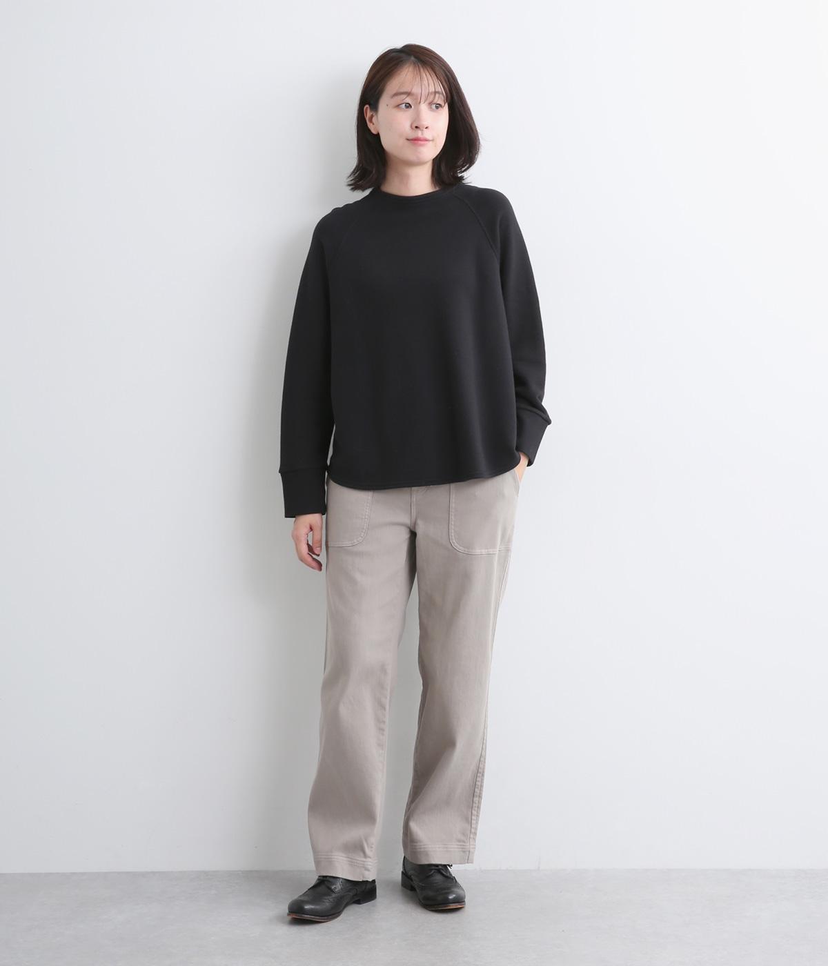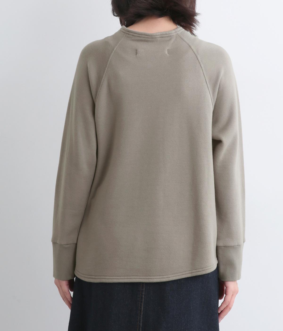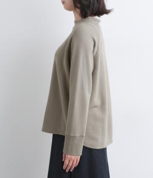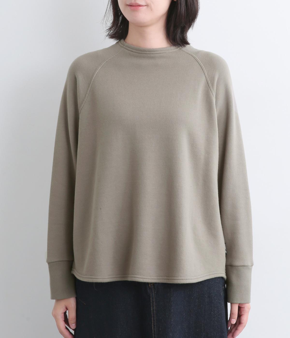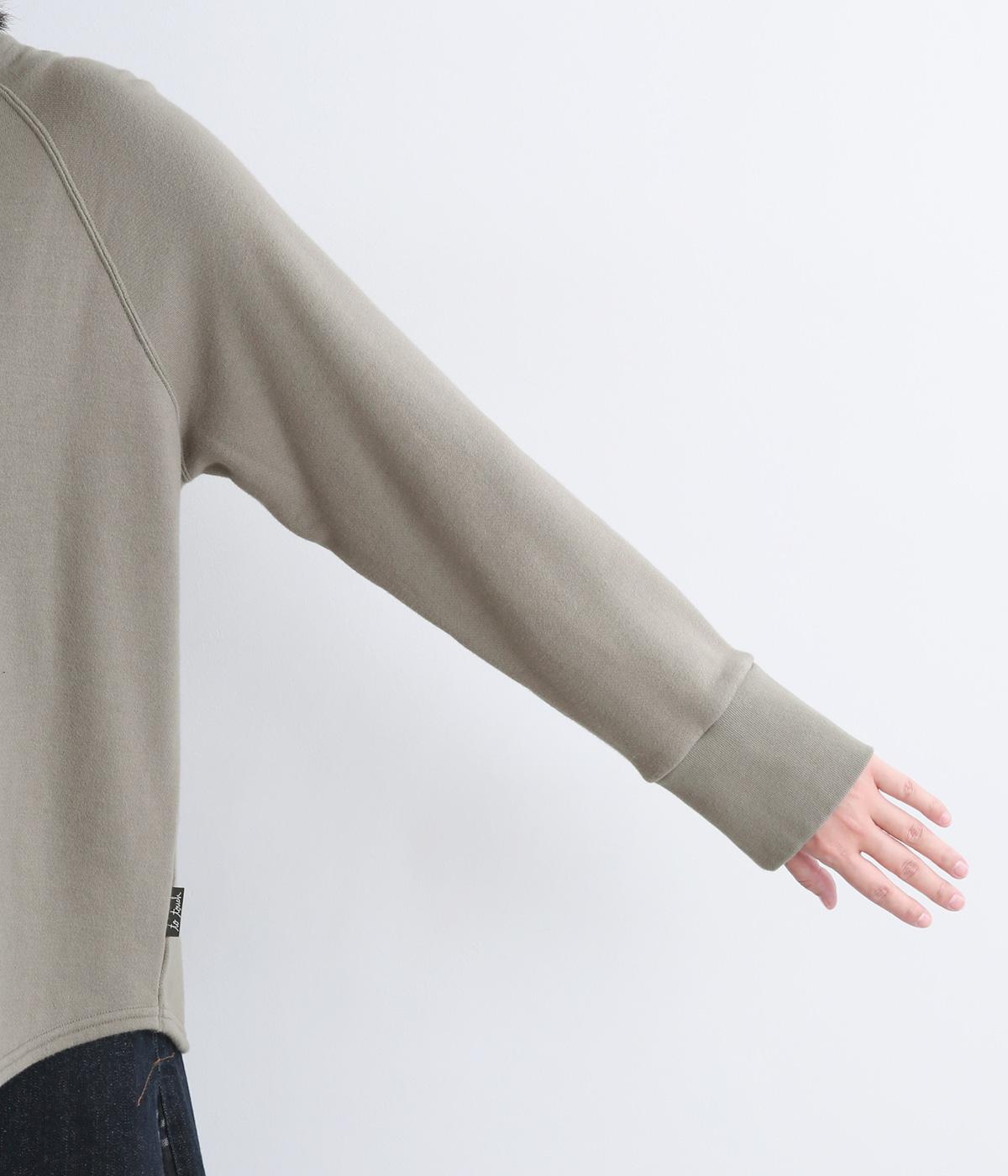 なめらかで心地よい肌ざわりのコットンを使用。内側を起毛させたあたたかみのある生地です。首元までしっかり生地が覆うので、肌の露出を気にすることなくアクティブに過ごすことができるのも◎。